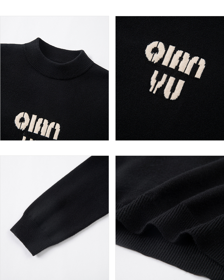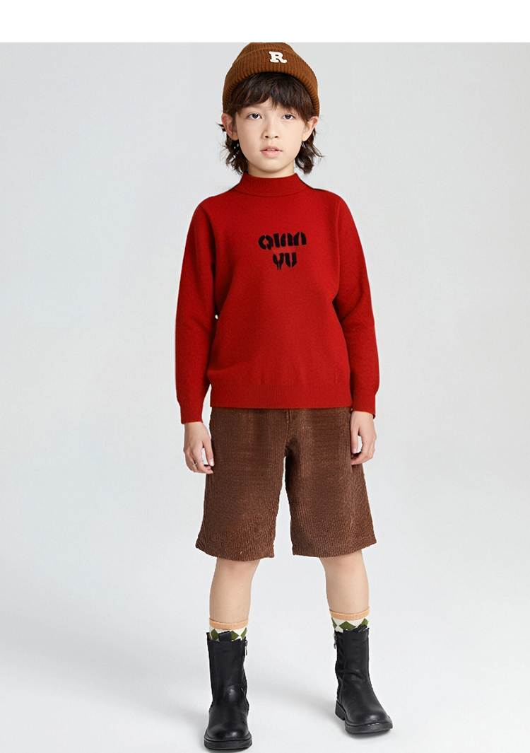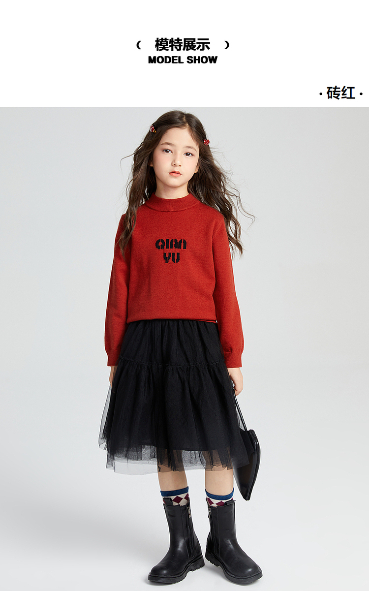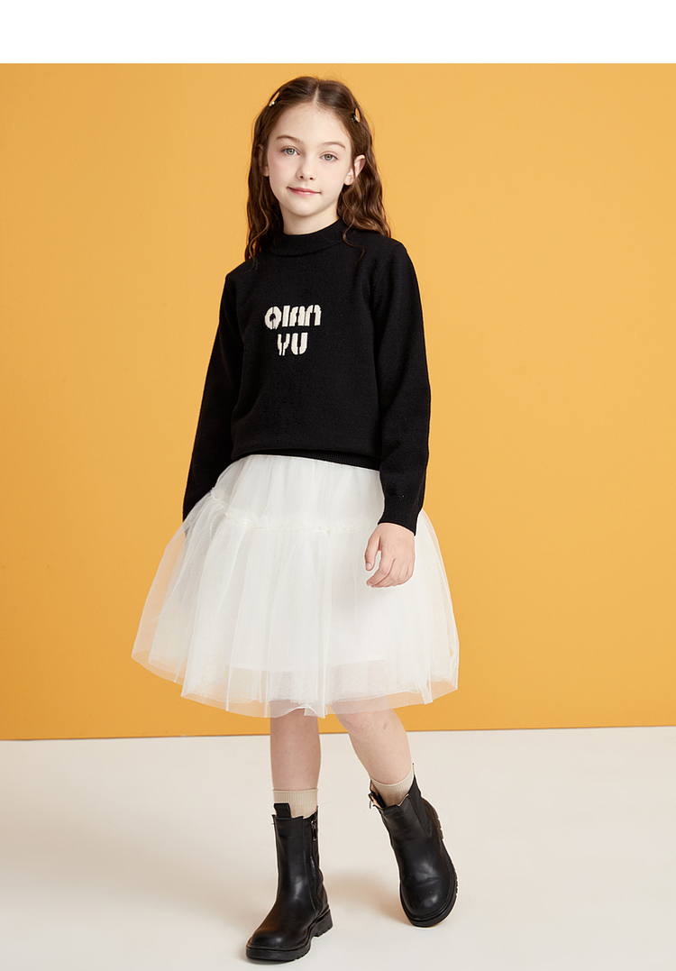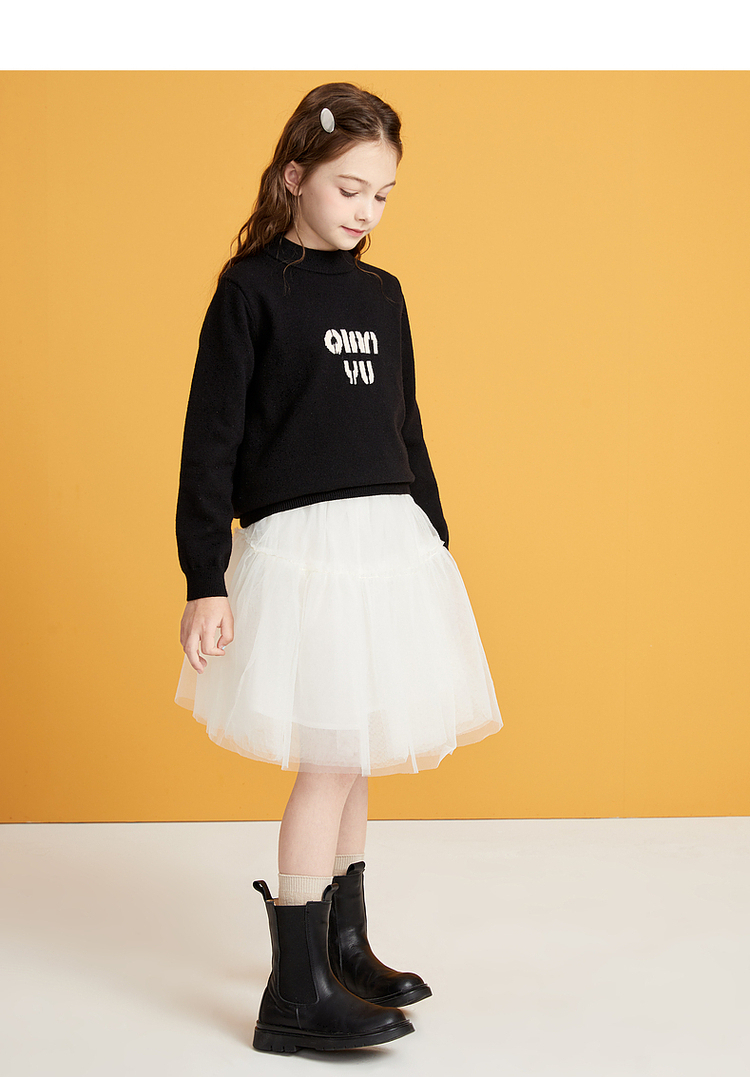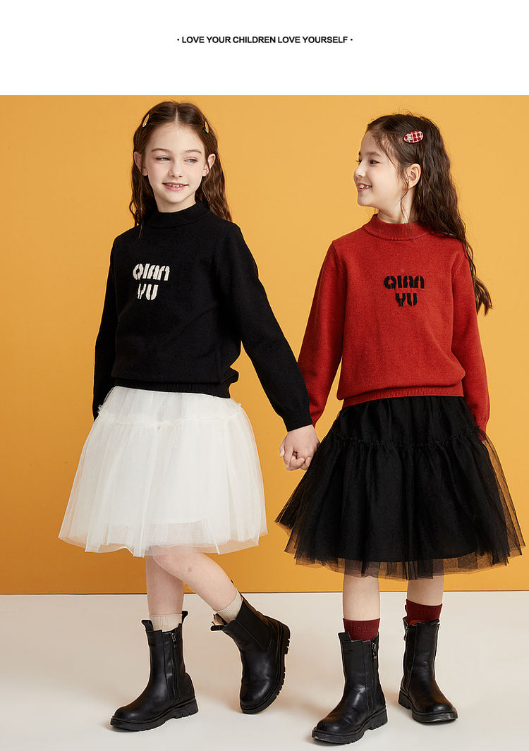 笛莎千与2024冬季新款男女童同款时尚字母提花针织衫