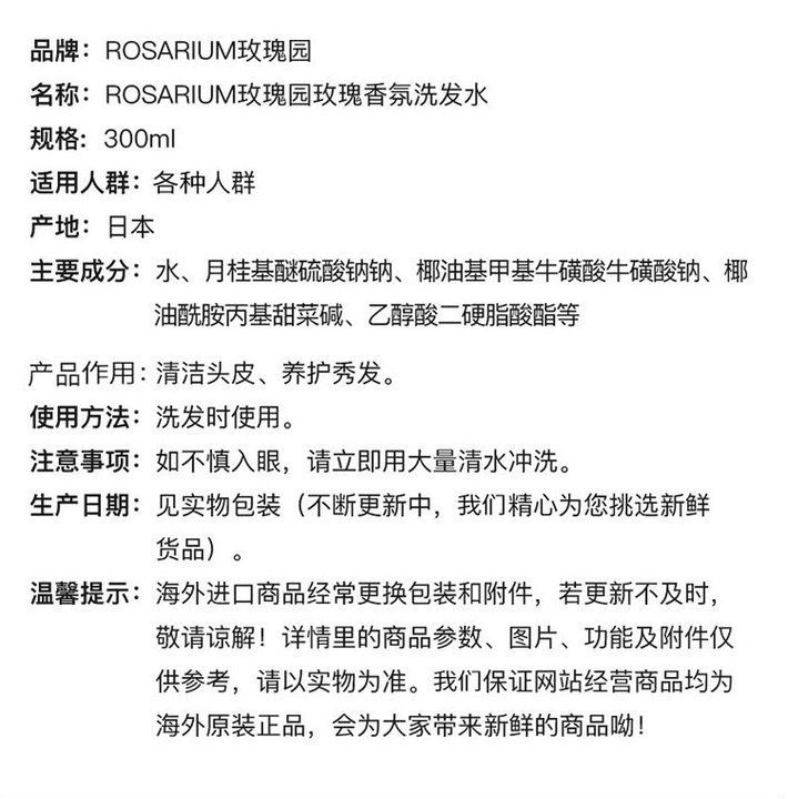 日本Rosarium/玫瑰园洗发水300ml 版本随机发