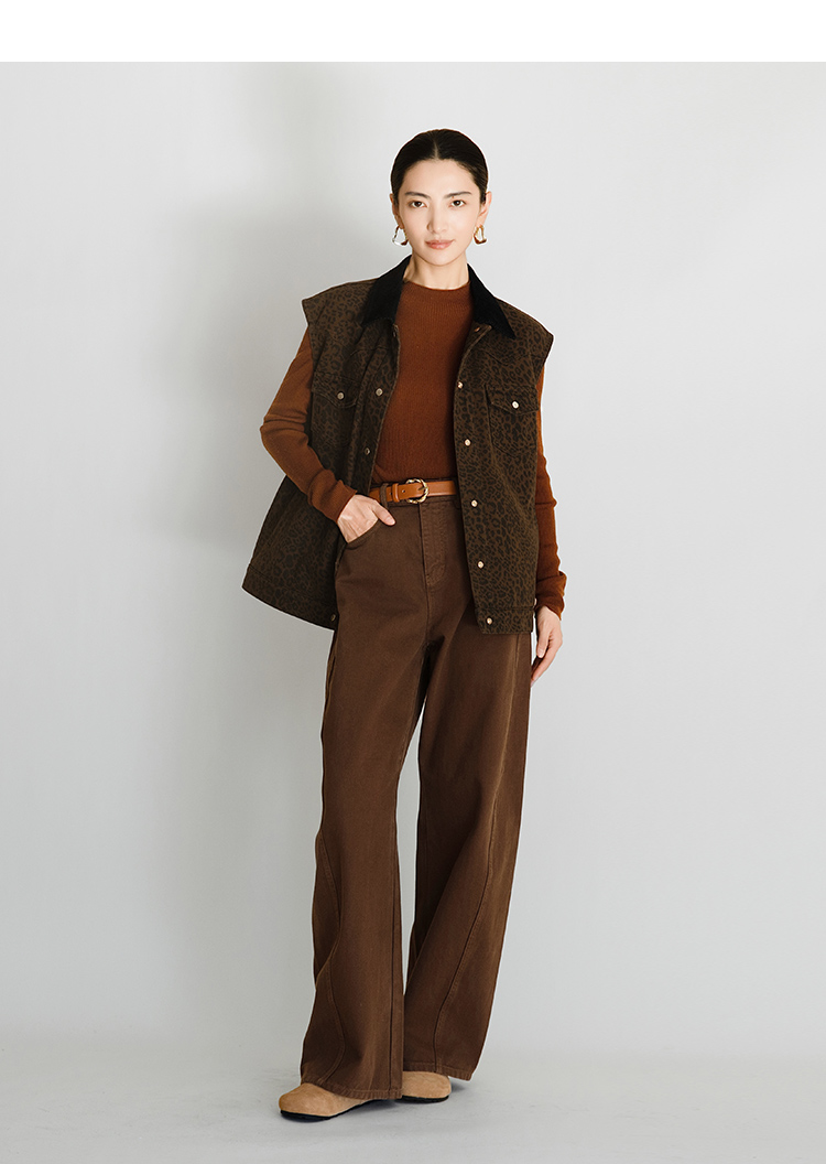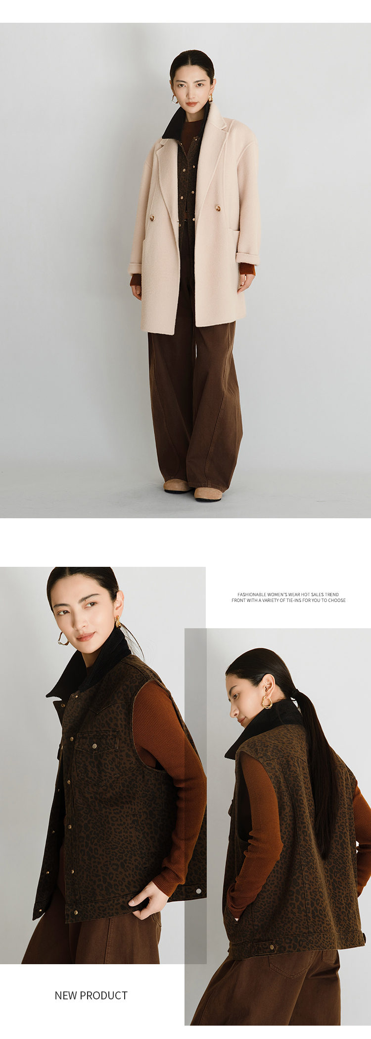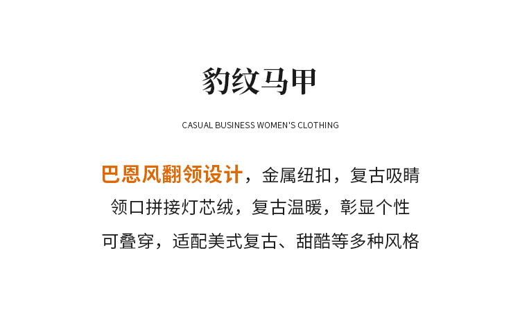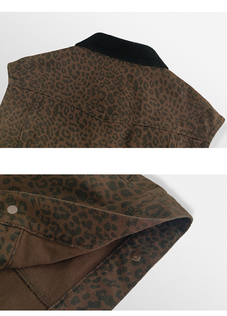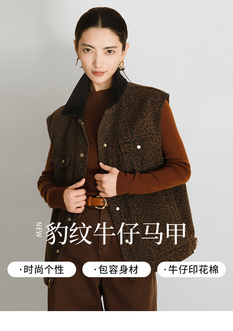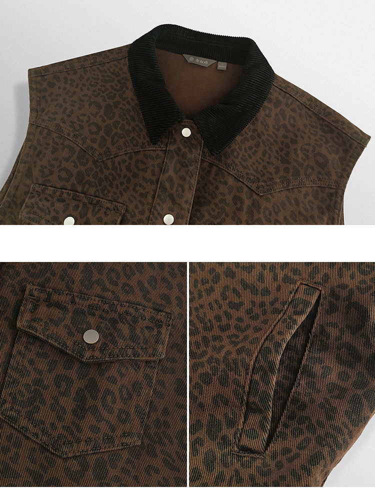 【商场同款】CNI5A87 “ 豹纹马甲 ” 巴恩风复古翻领马甲 酷感十足