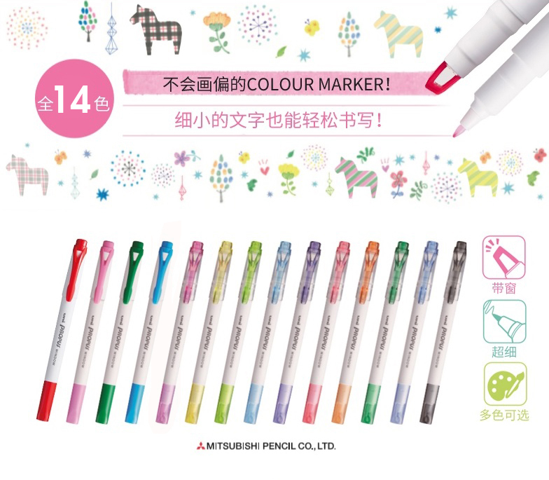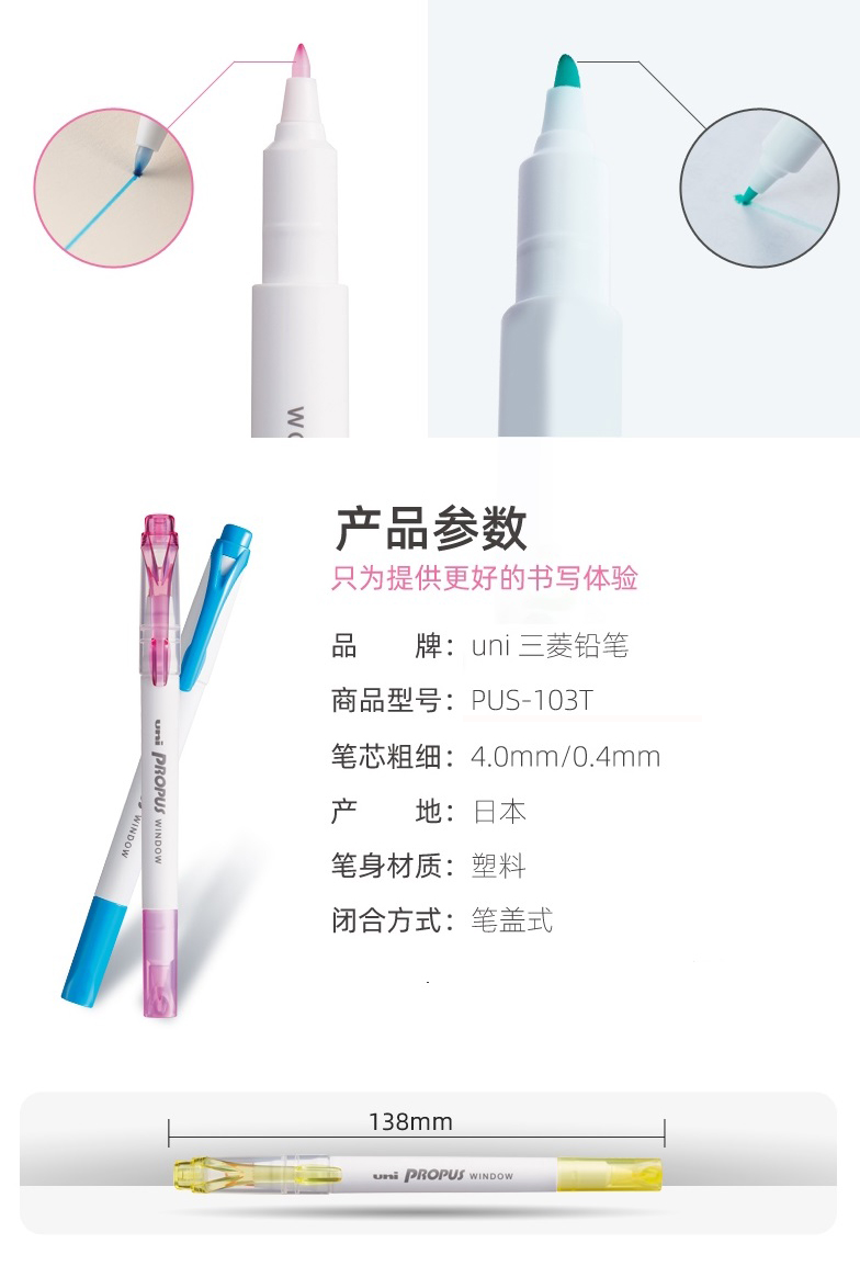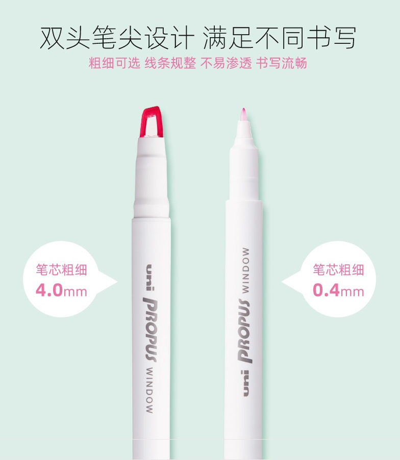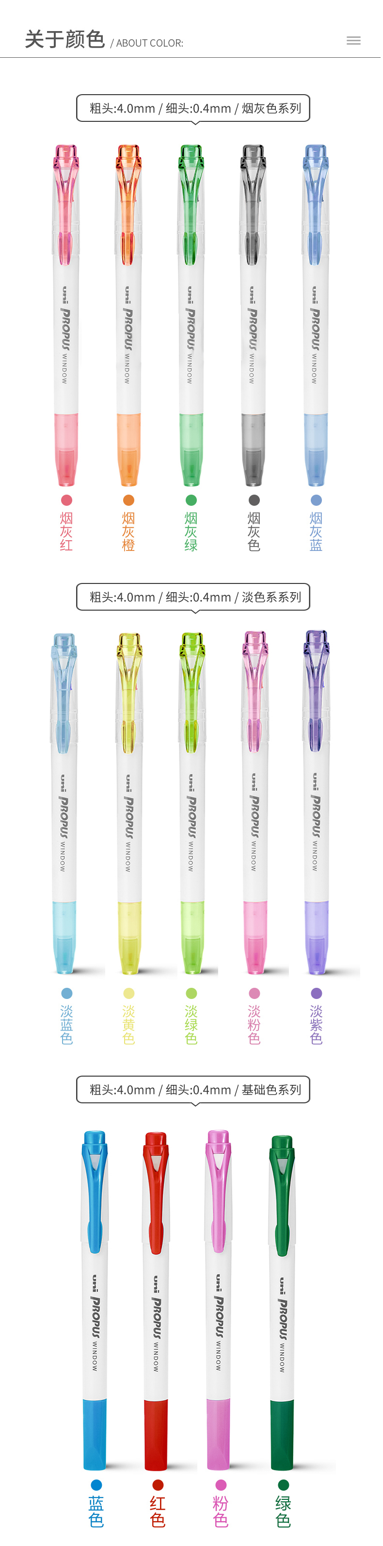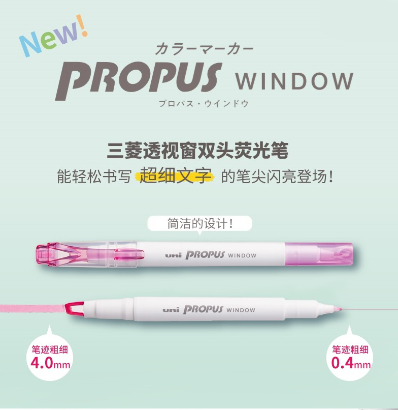 三菱淡色系可视窗双头荧光笔彩色手帐笔学生划重点用标记笔记号笔