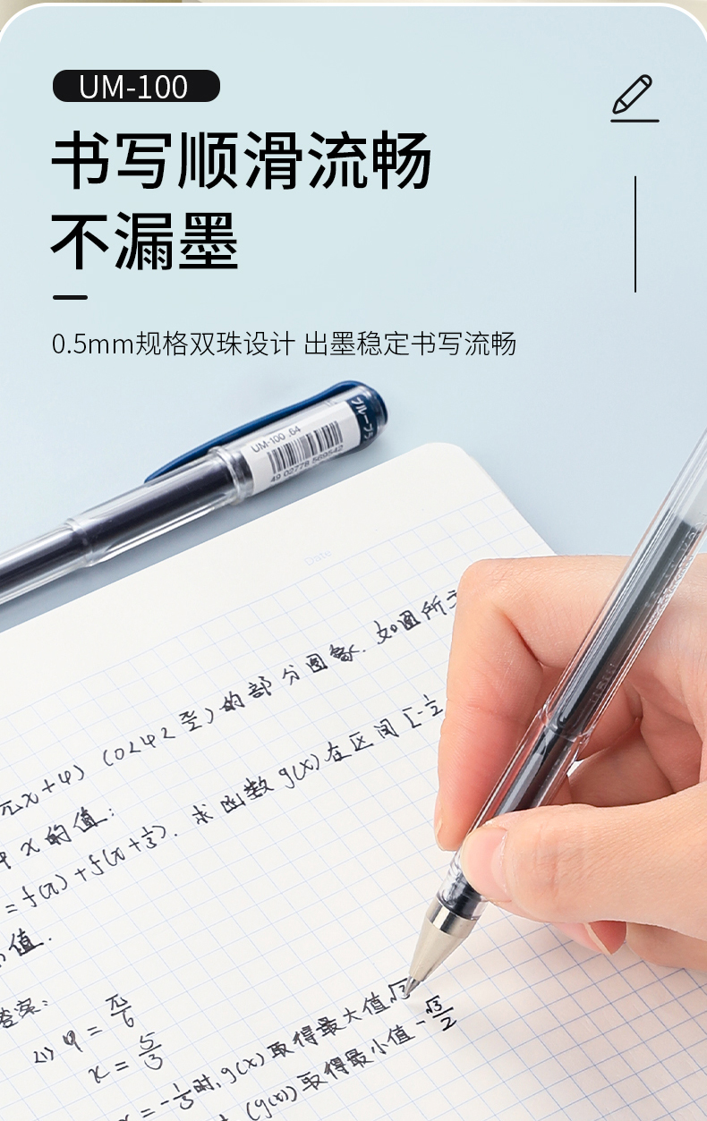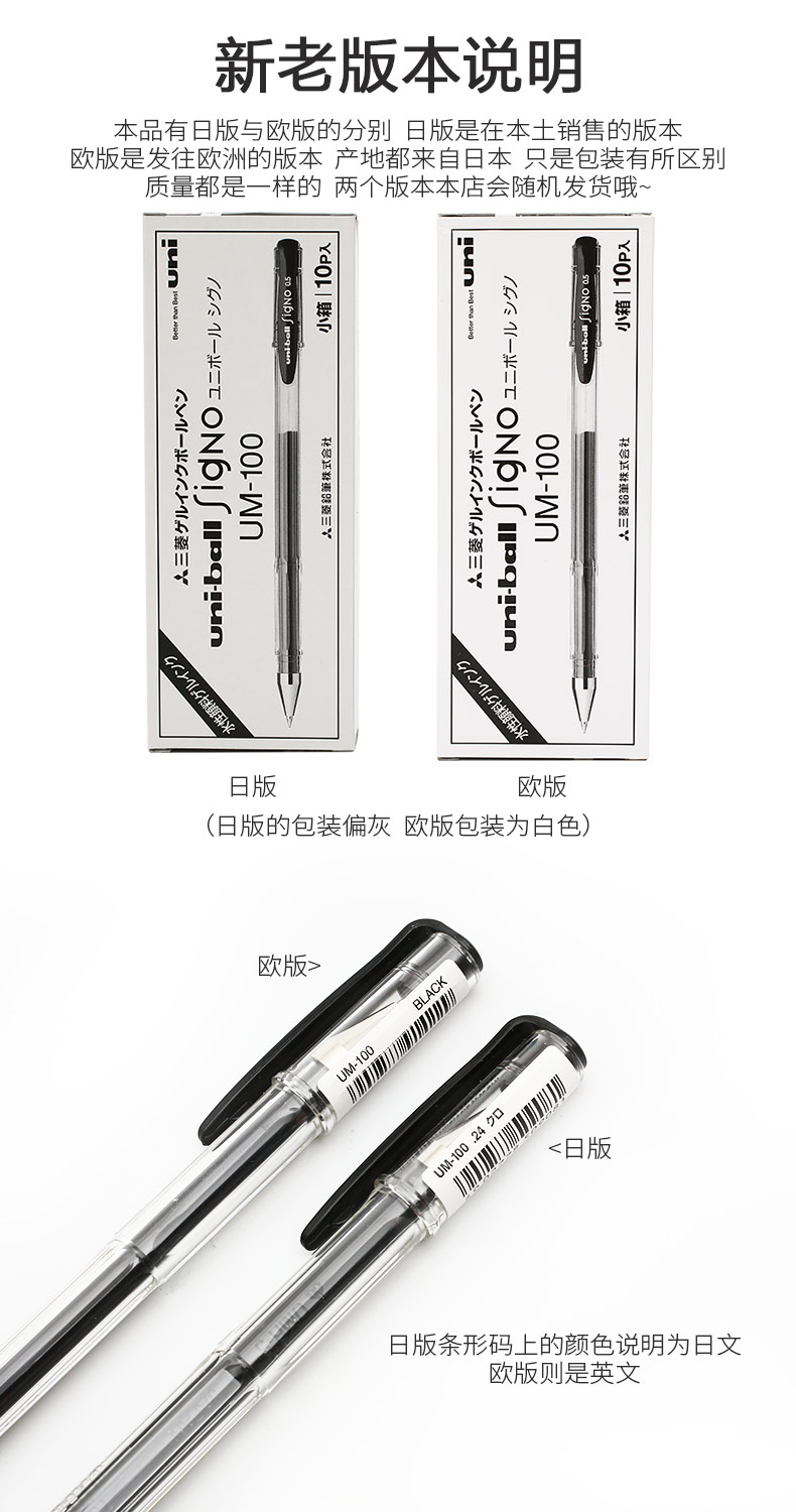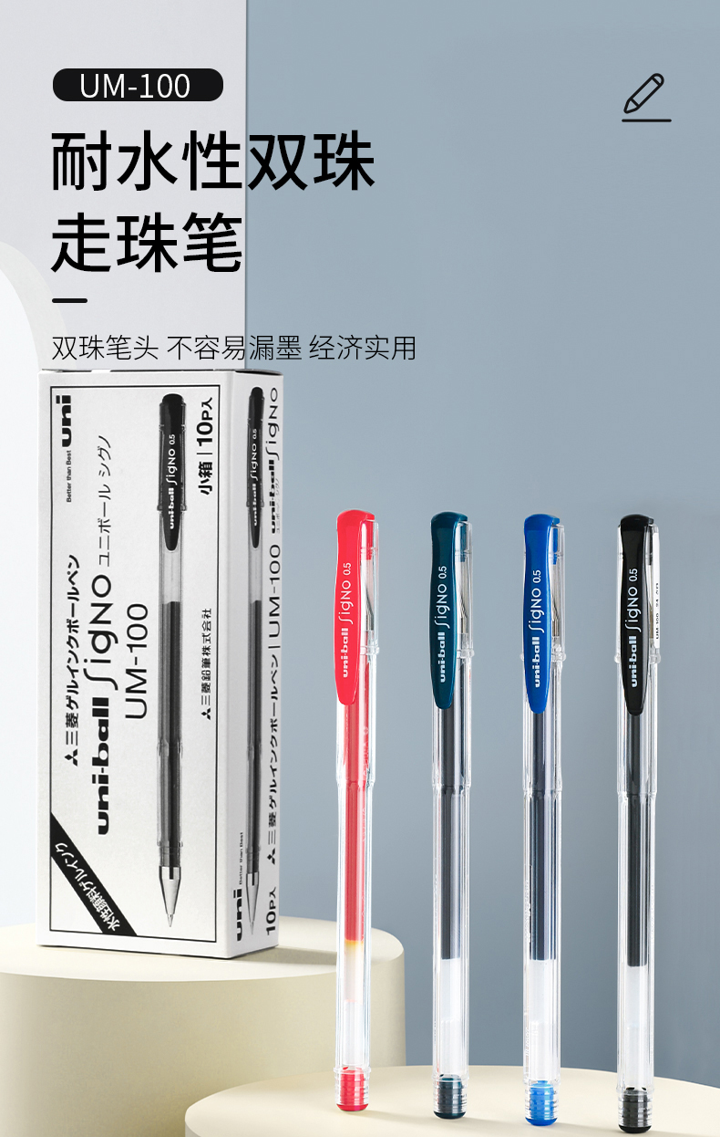 日本进口uni三菱中性笔um100黑色刷题笔红蓝子弹头简约办公学生用文具考试签字笔