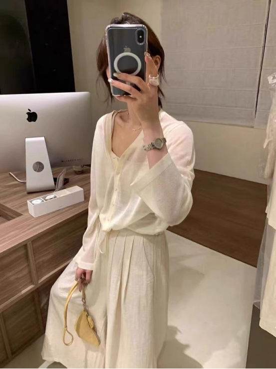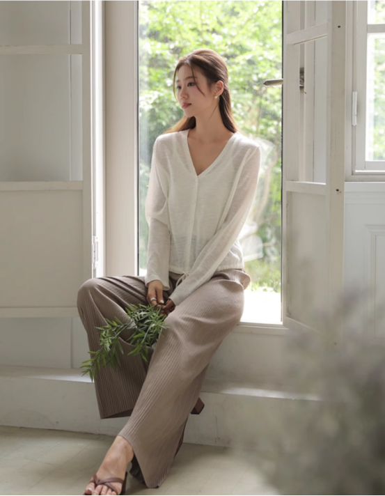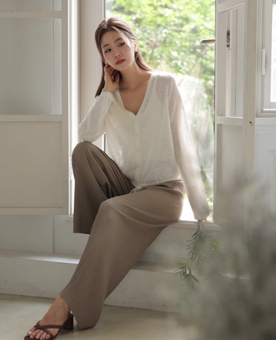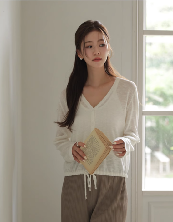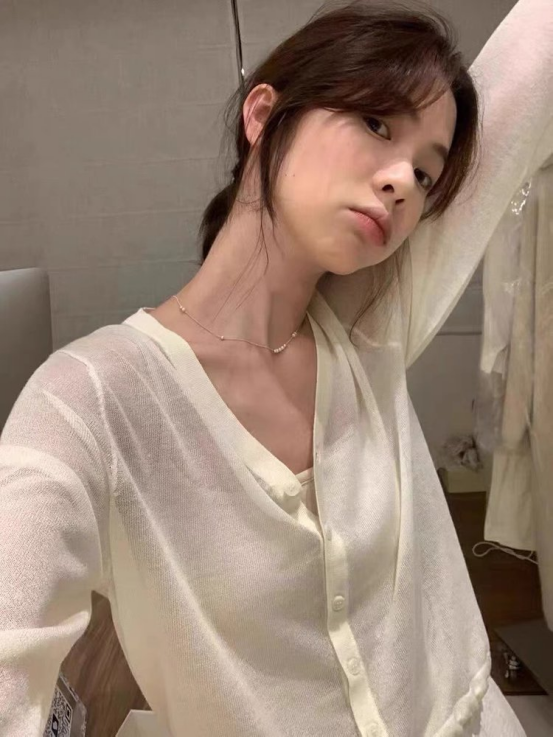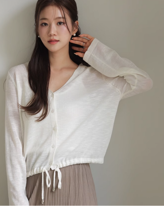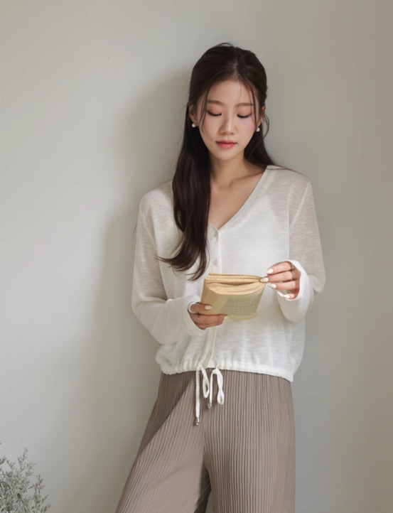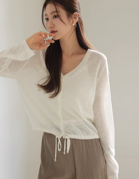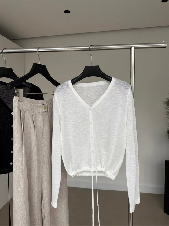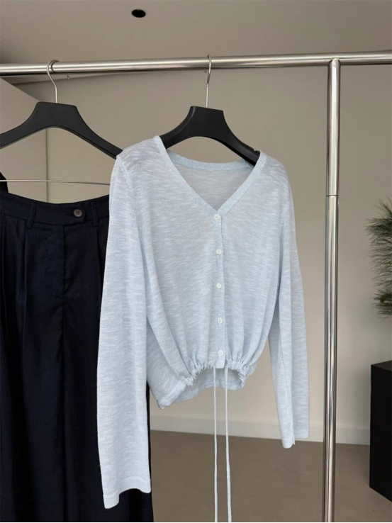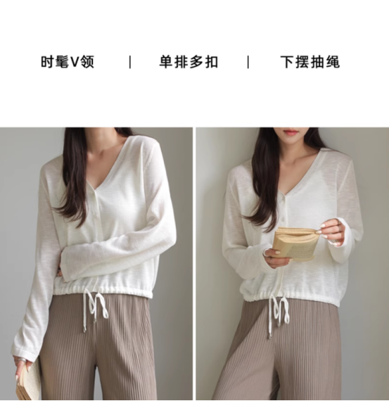 立体V领剪裁|视觉延长颈部线条的魔法 竹节棉吗混纺|干爽触感比纯棉透气50%! 轻薄透气针织开衫 夏日可穿防晒针织开衫,质感爽滑透気