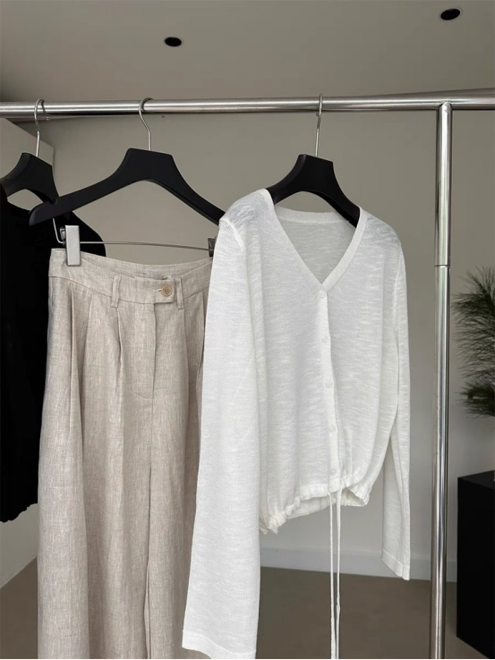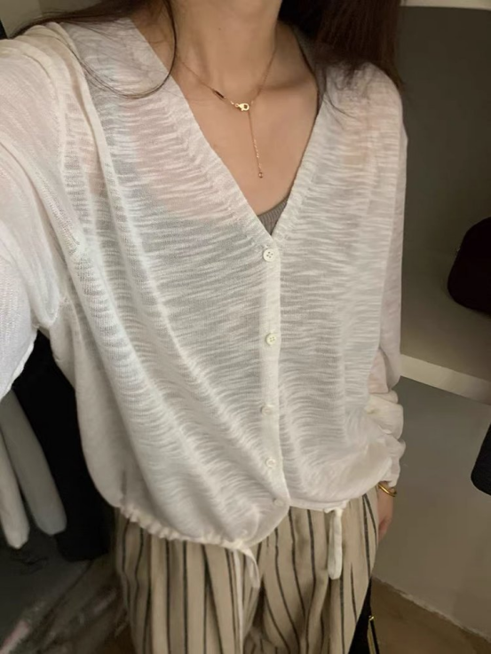 轻薄透气竹节麻V领防晒针织开衫-J1265