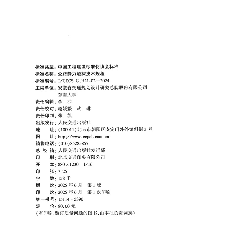 书名:公路静力触探技术规程(T/CECS G:H21-02—2024)