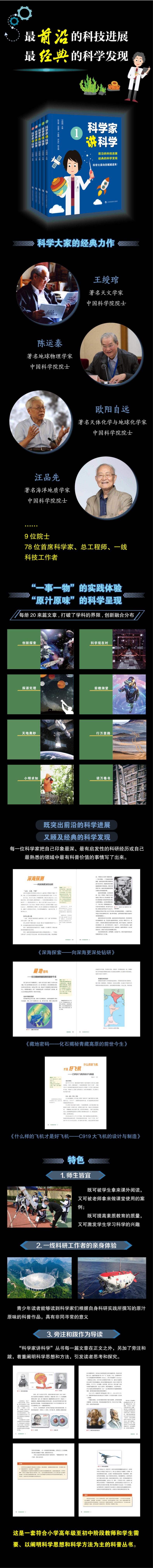 9位院士领衔 78位首席科学家、总工程师、一线科技工作者亲自撰文 110多篇文章,带你体验科学探索的真实过程, 感悟科学精神的深刻内蘊 1000多幅插图,展示科学发现细节 …… 科学家讲科学,引领青少年开启创新发展之路