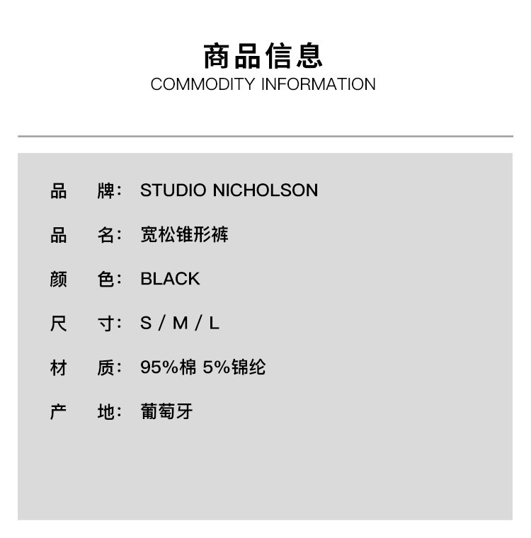 STUDIO NICHOLSON PANTS - CURVED TAPERED PANT 男装宽松锥形裤