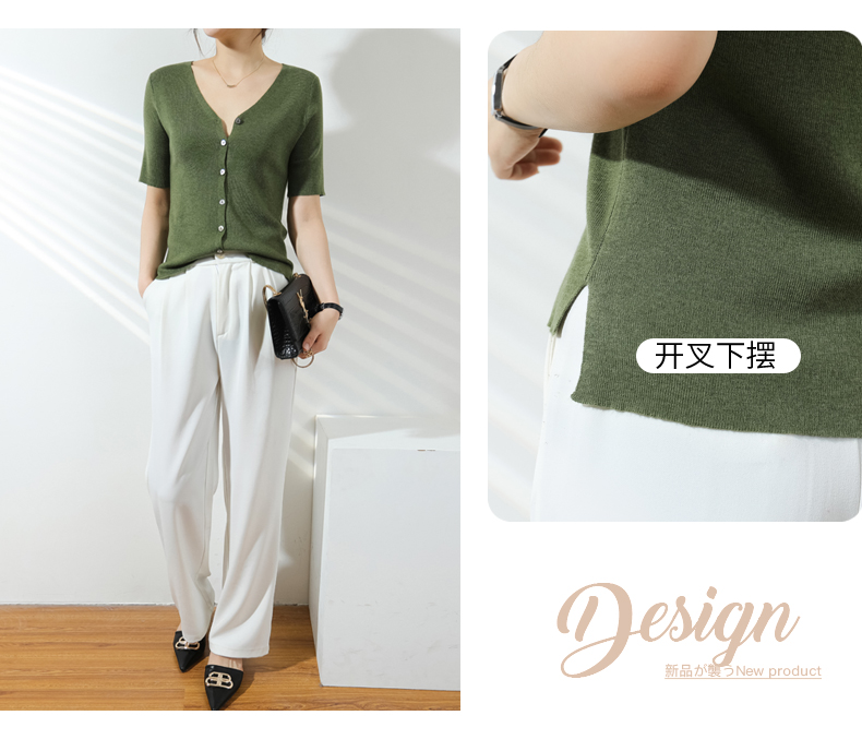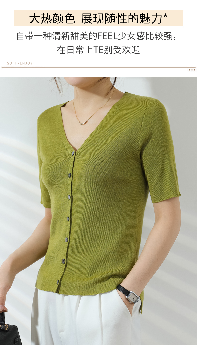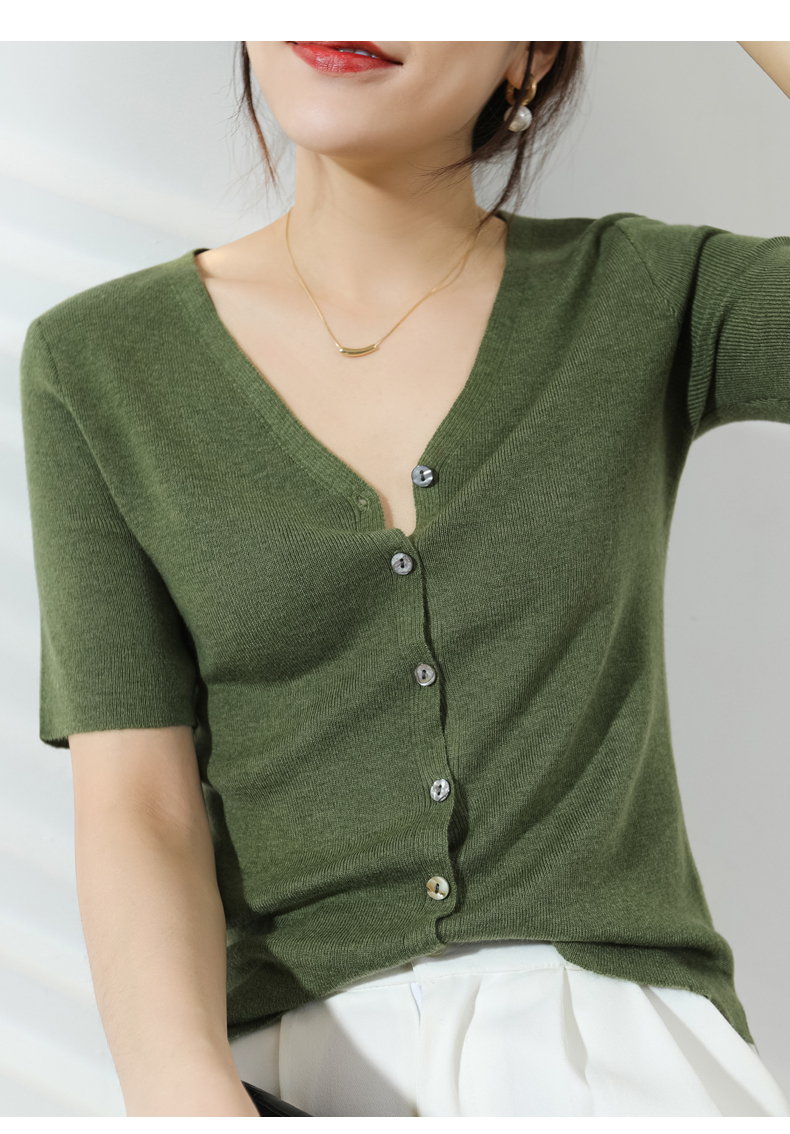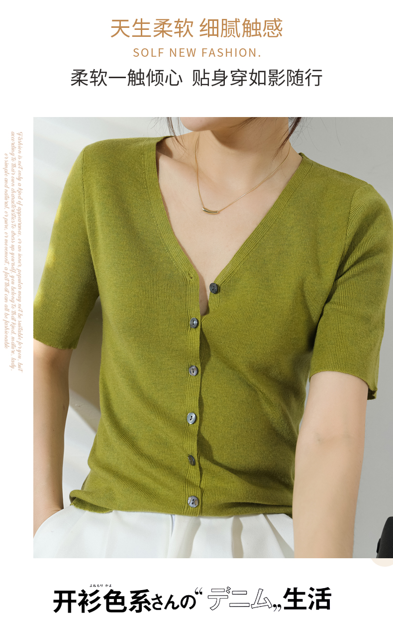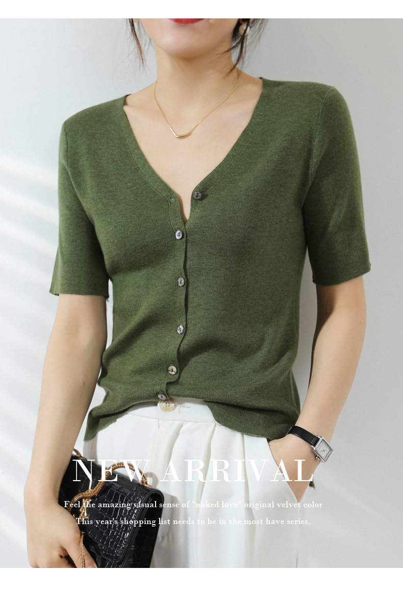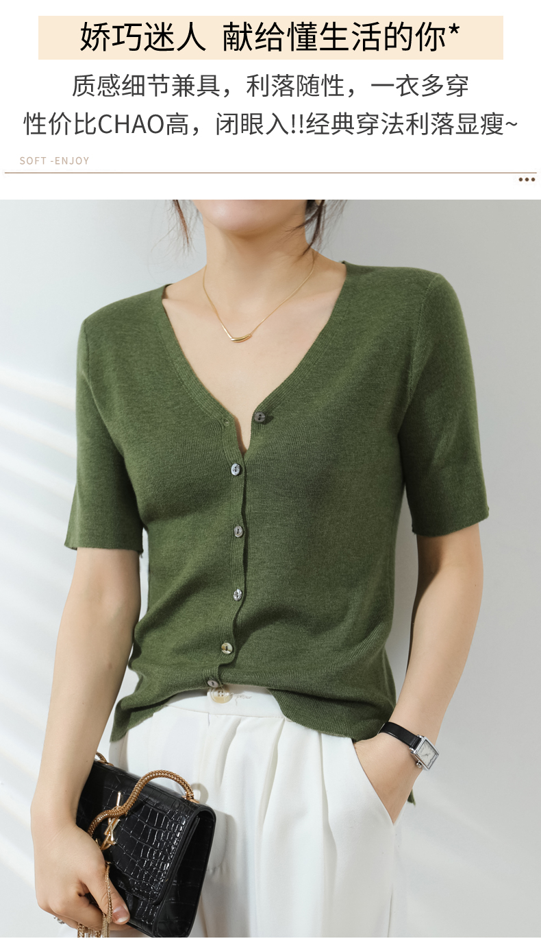 【JANNAH】夏季羊毛V领开衫短袖NJR-2006