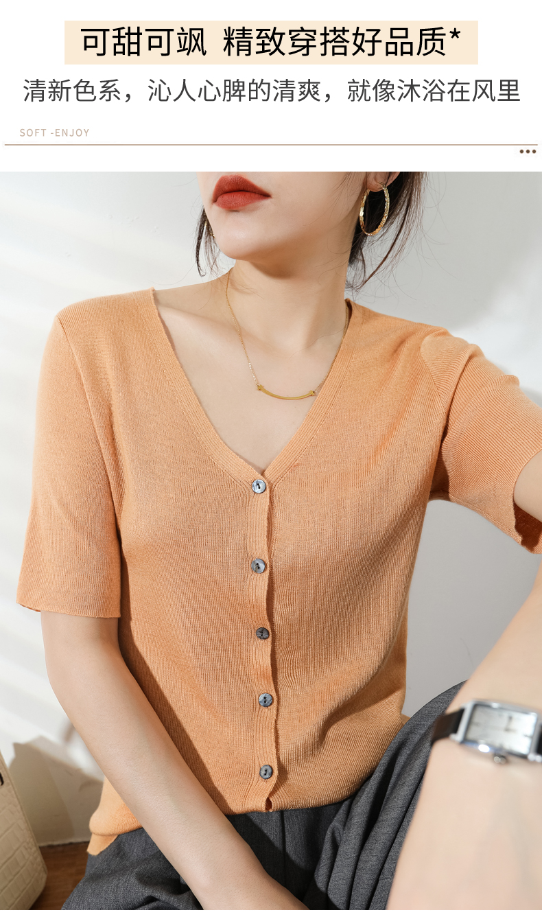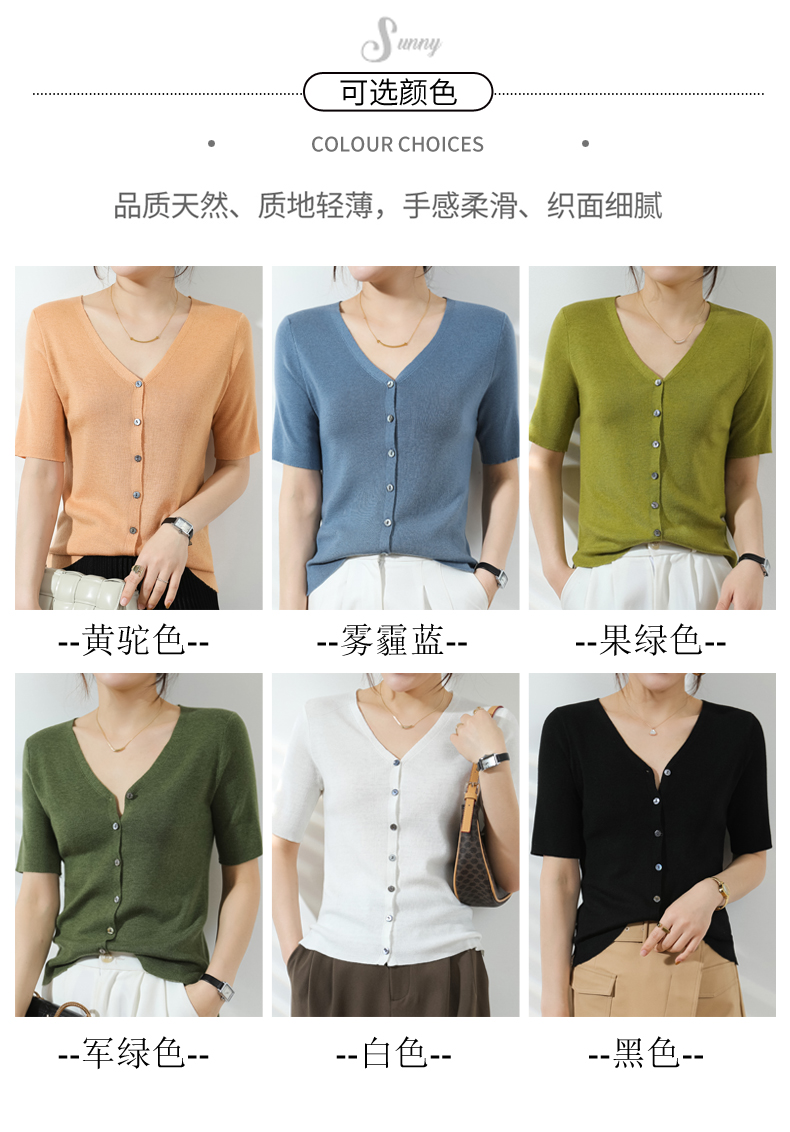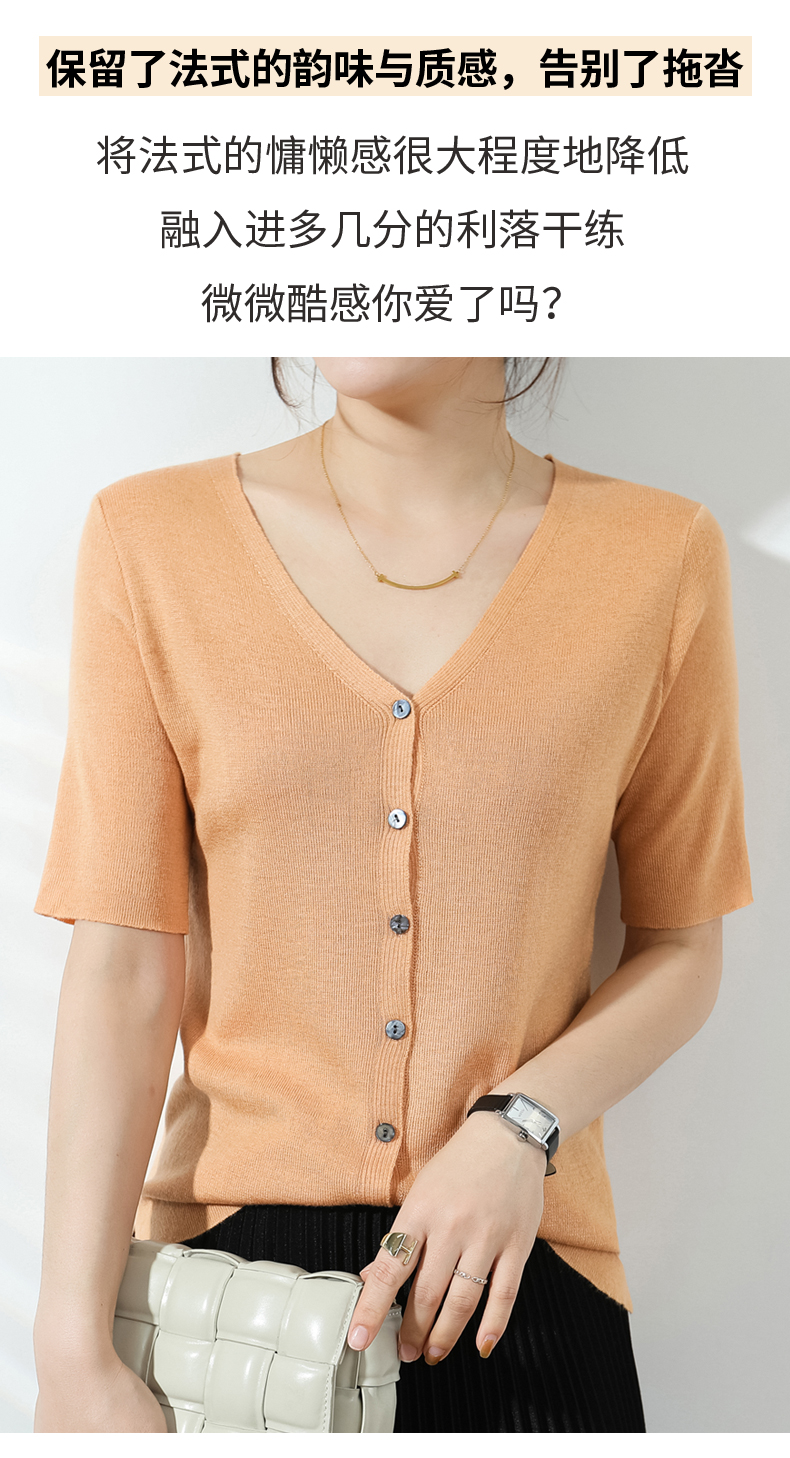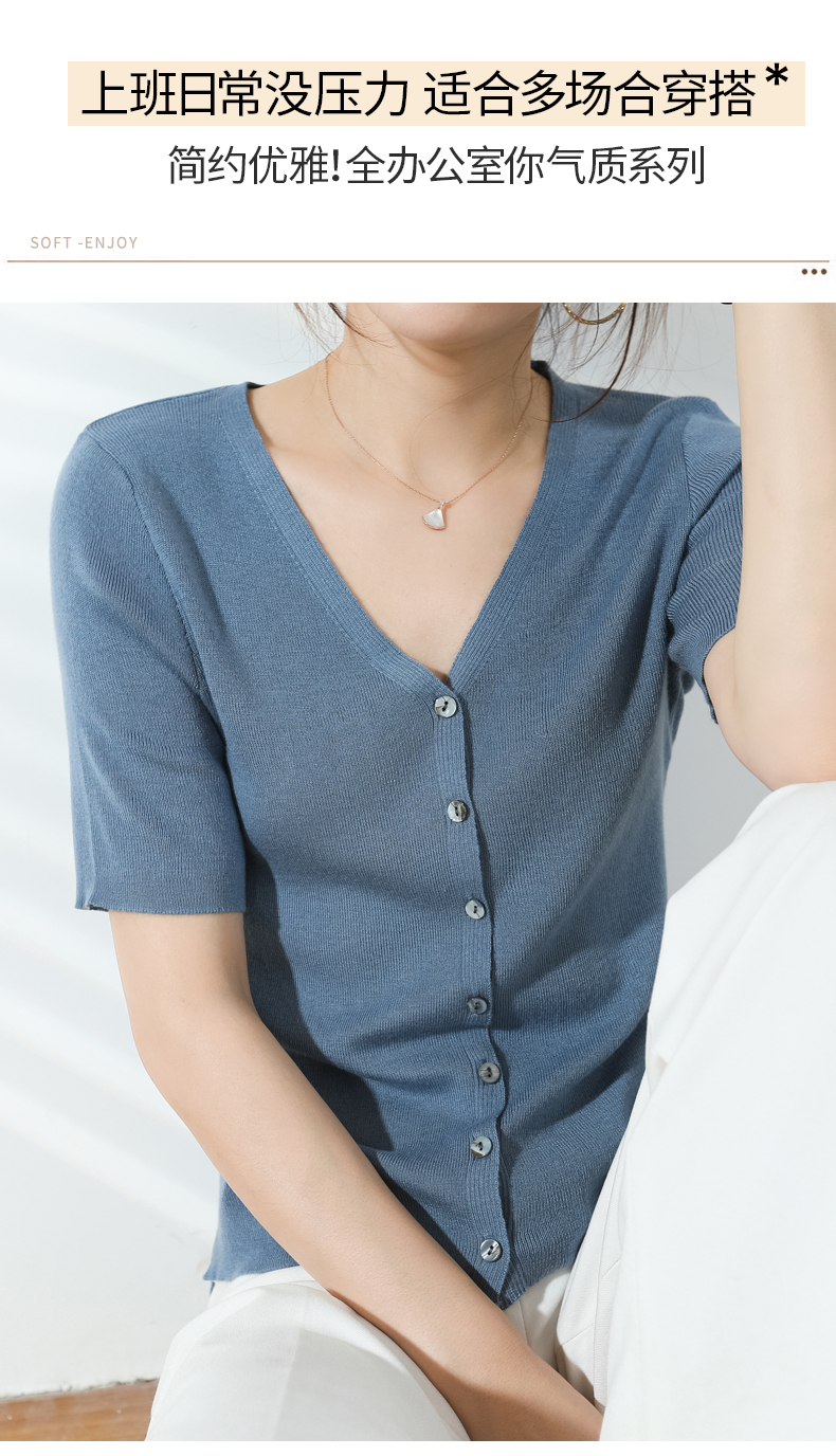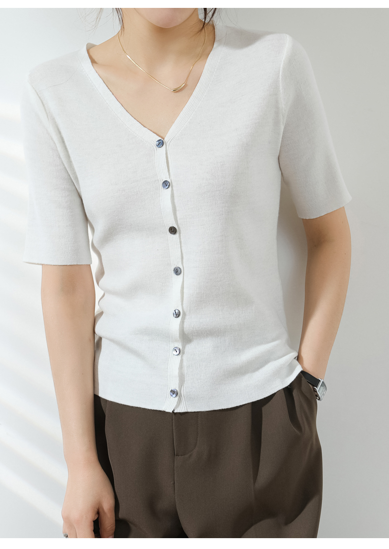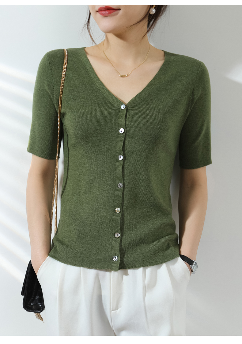 【JANNAH】夏季羊毛V领开衫短袖NJR-2006