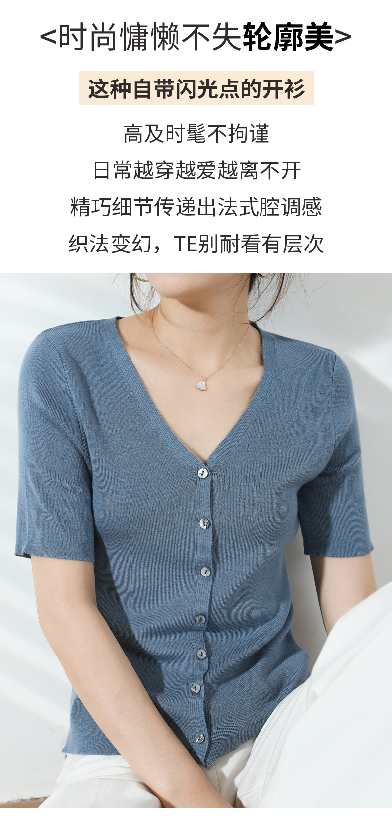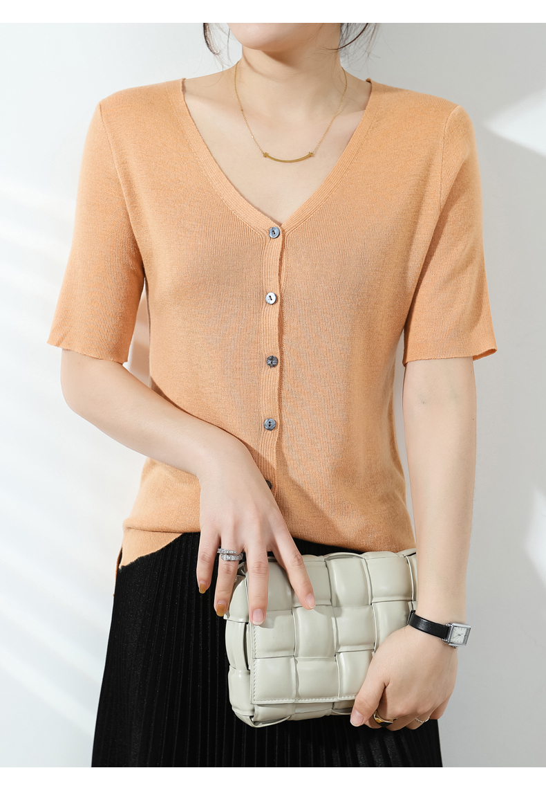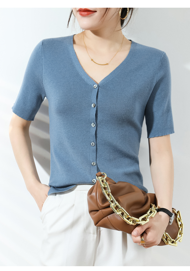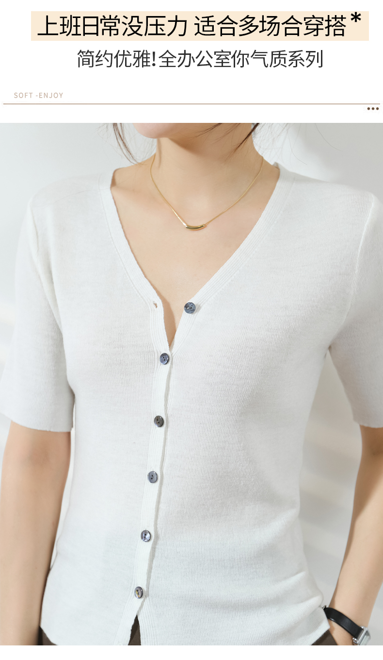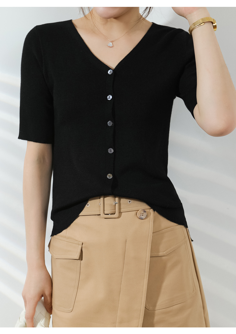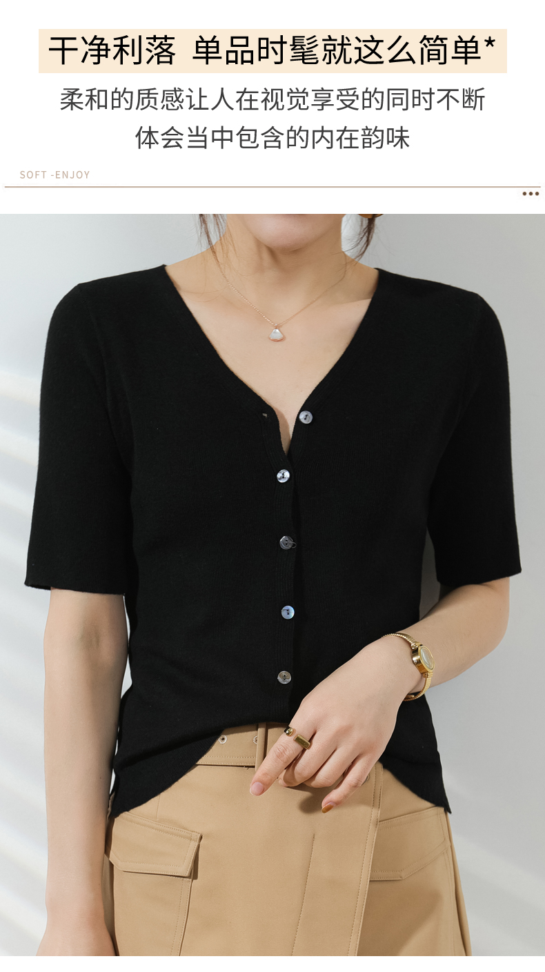 【JANNAH】夏季羊毛V领开衫短袖NJR-2006