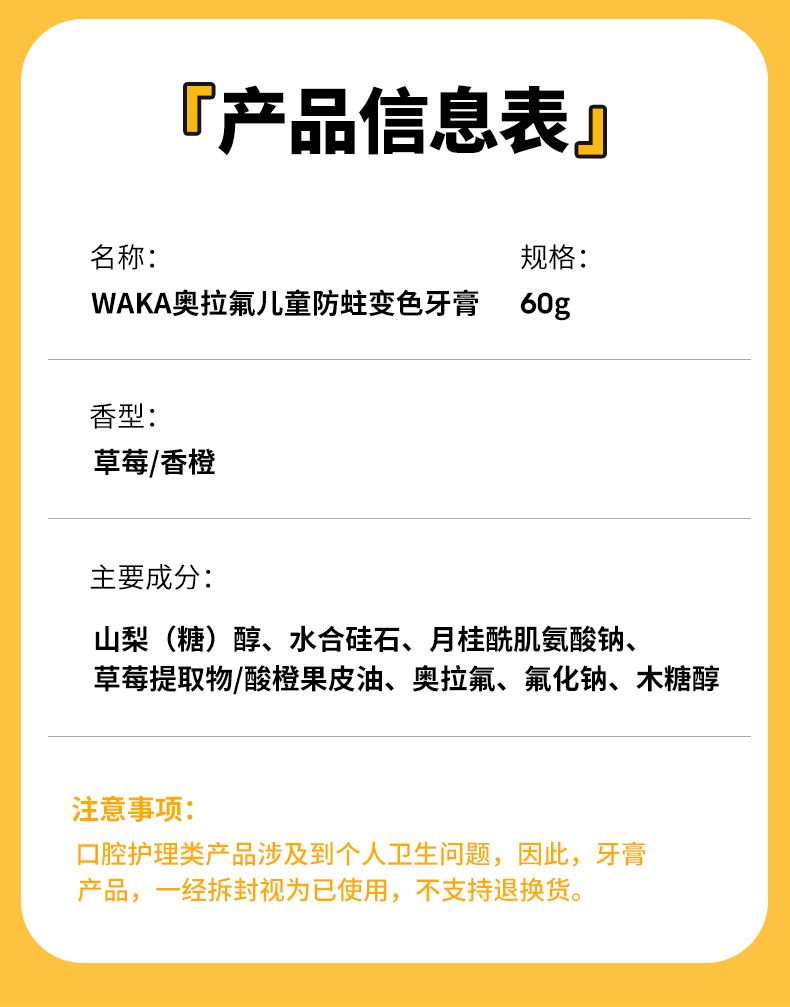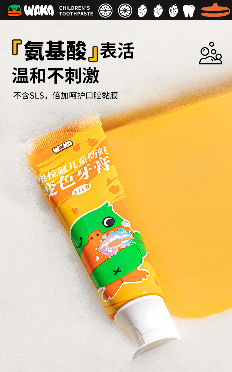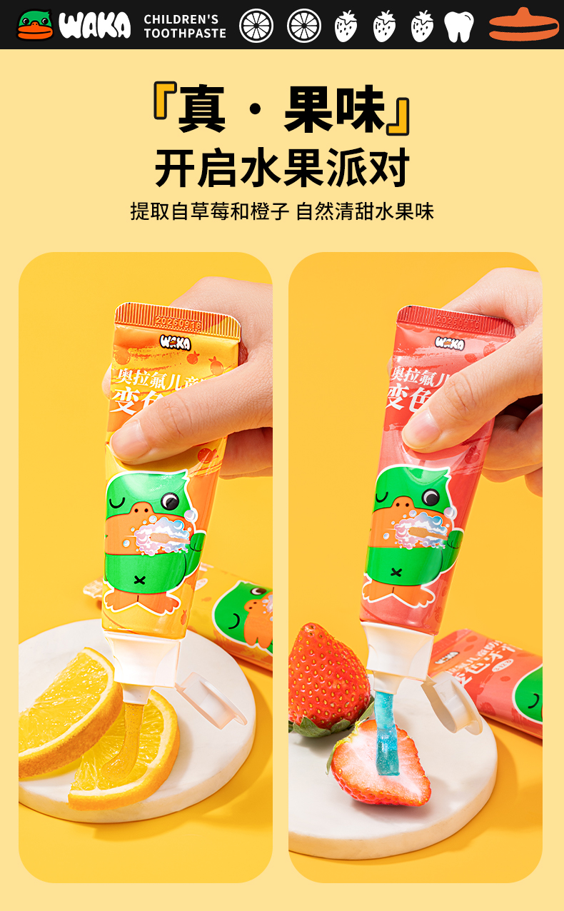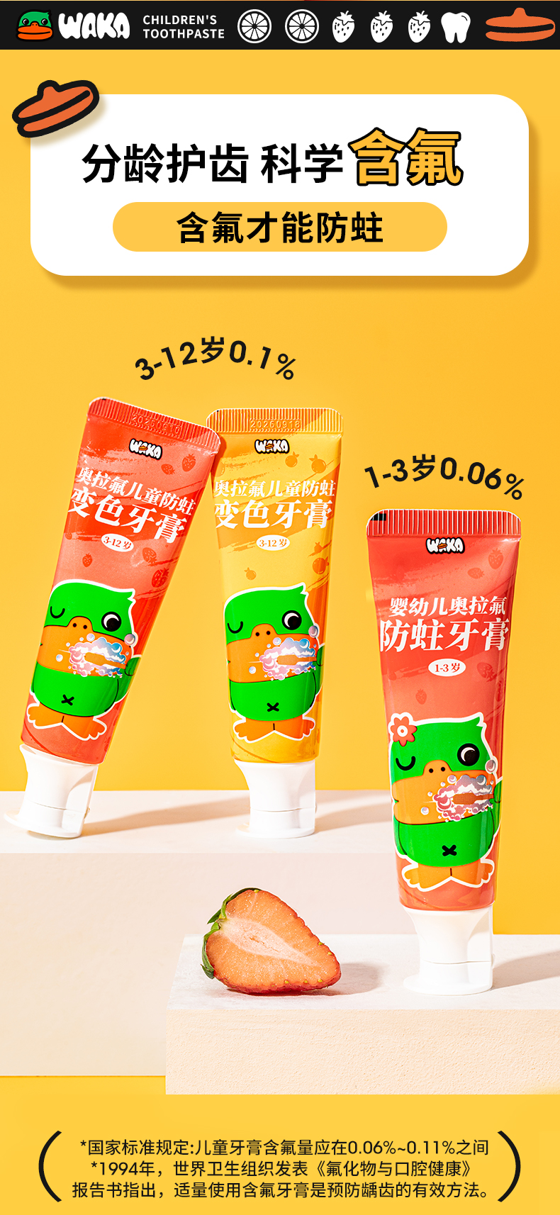 WAKA奥拉氟儿童牙膏3-12岁乳牙期宝宝含氟草莓味10058