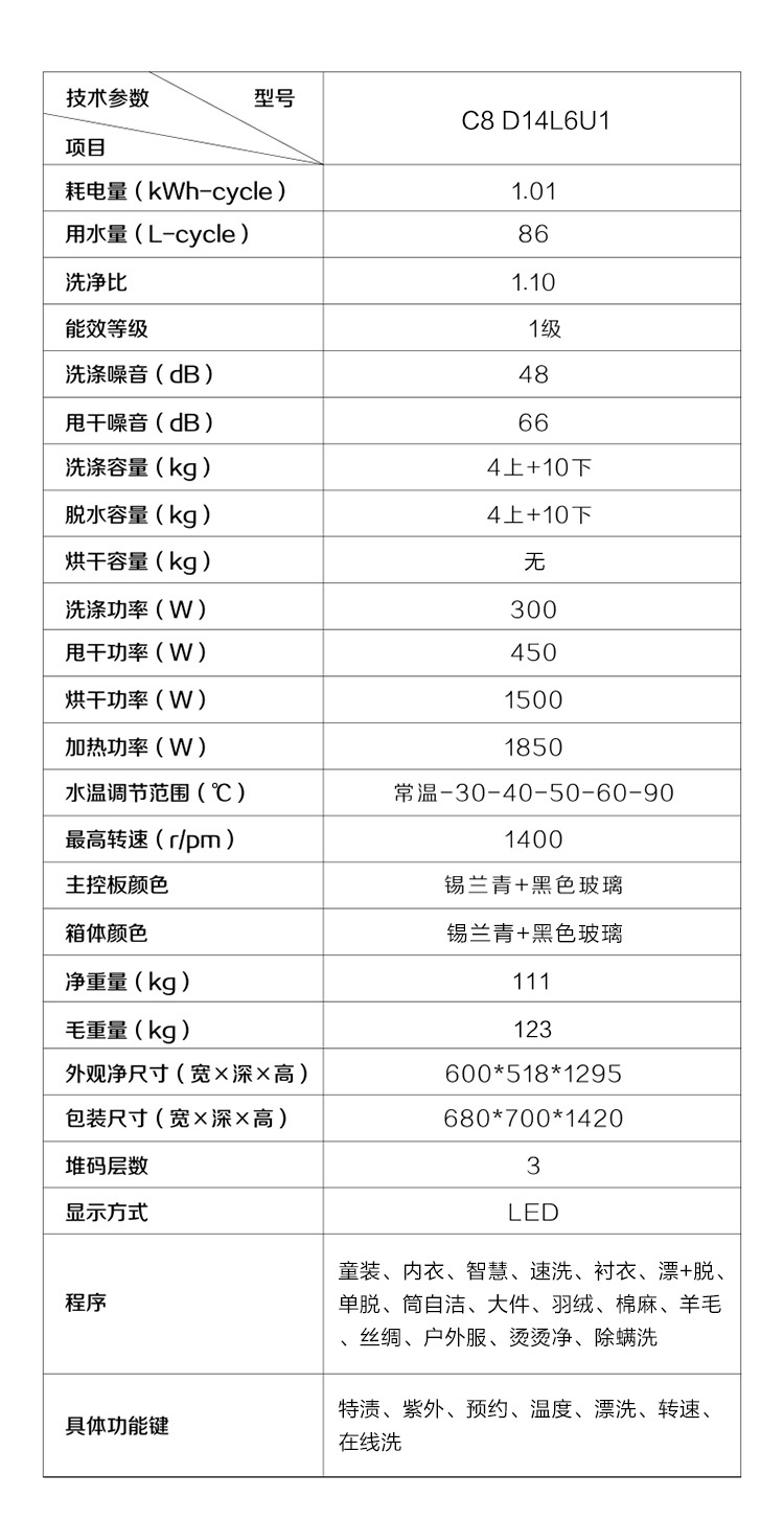 卡萨帝(Casarte)洗衣机 C8 D14L6U1