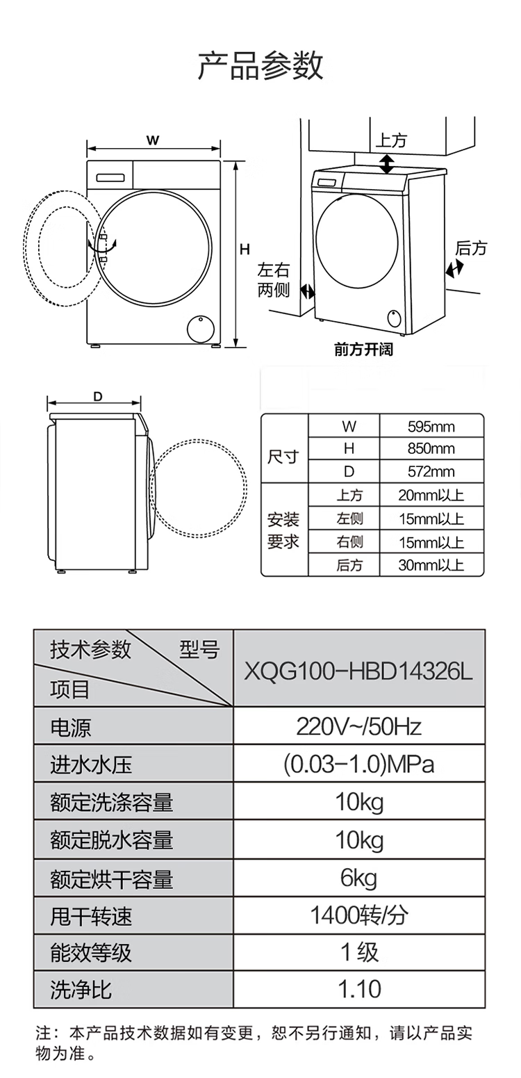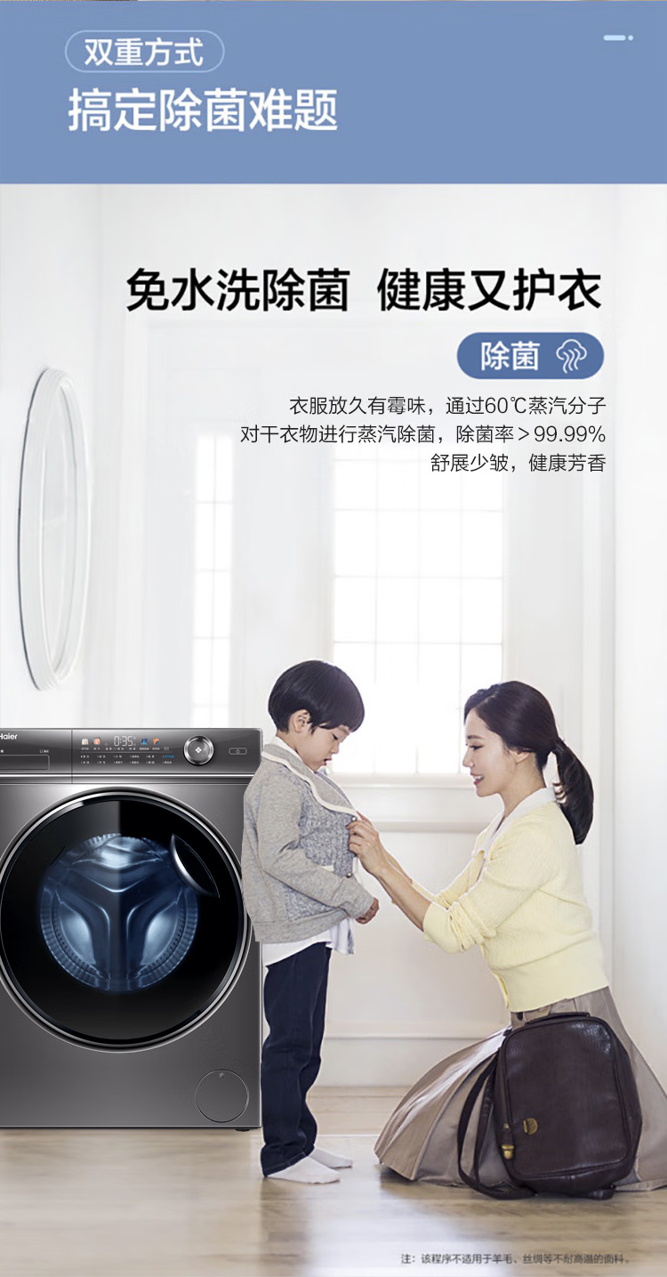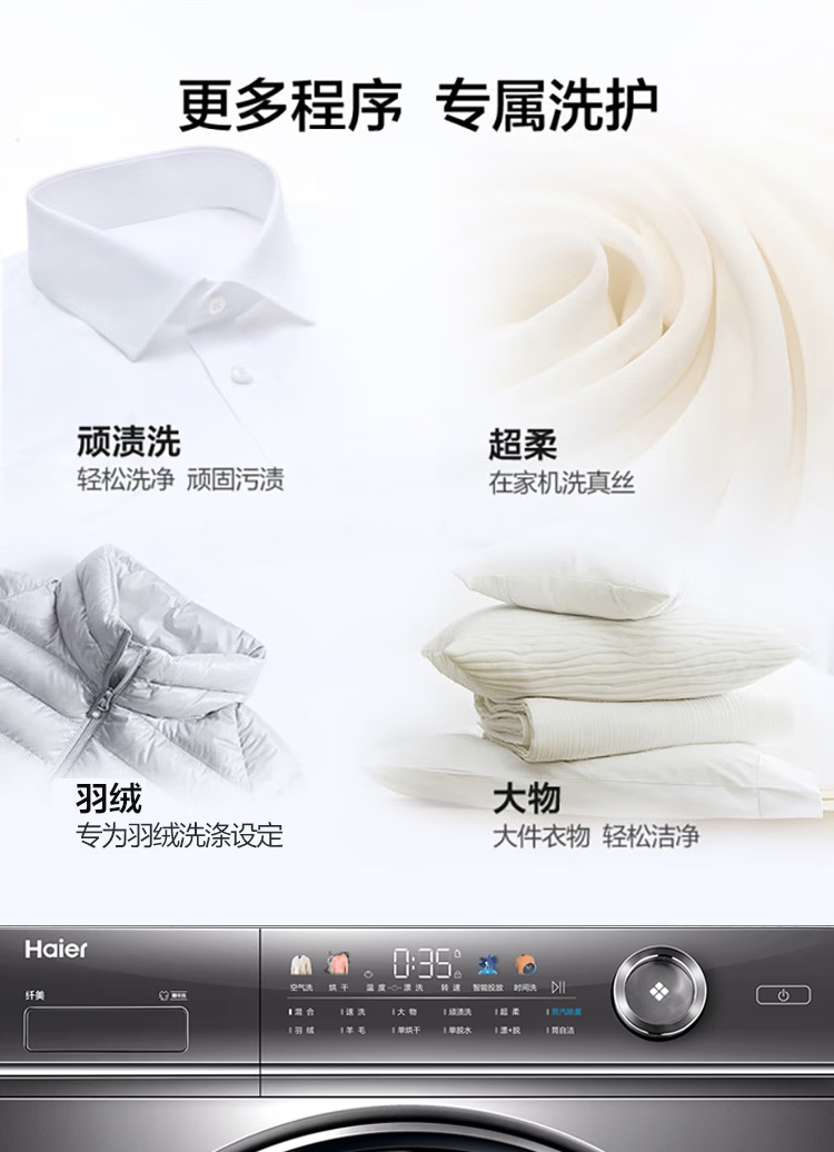 【精华洗】海尔10KG全自动变频滚筒洗衣机家用大容量525mm筒径精华洗智能投放除菌空气洗烘一体XQG100-HBD14326L