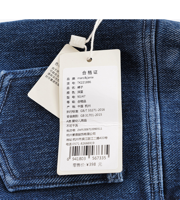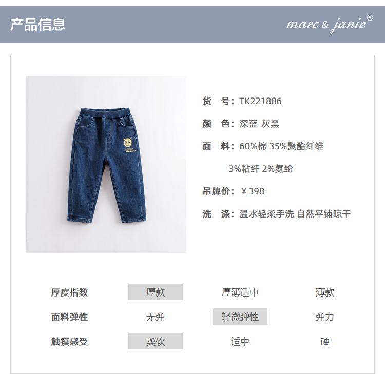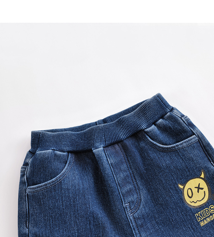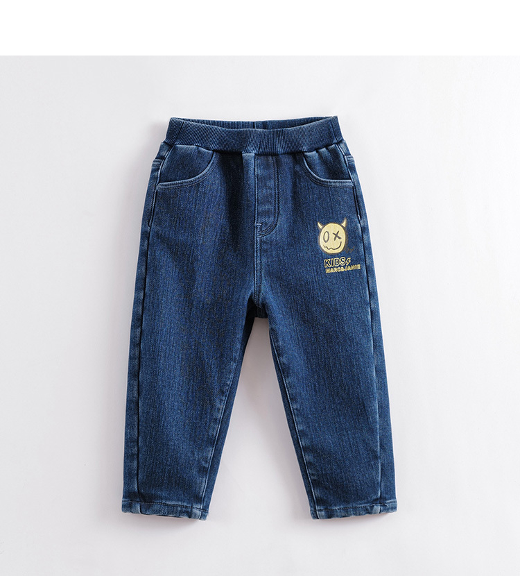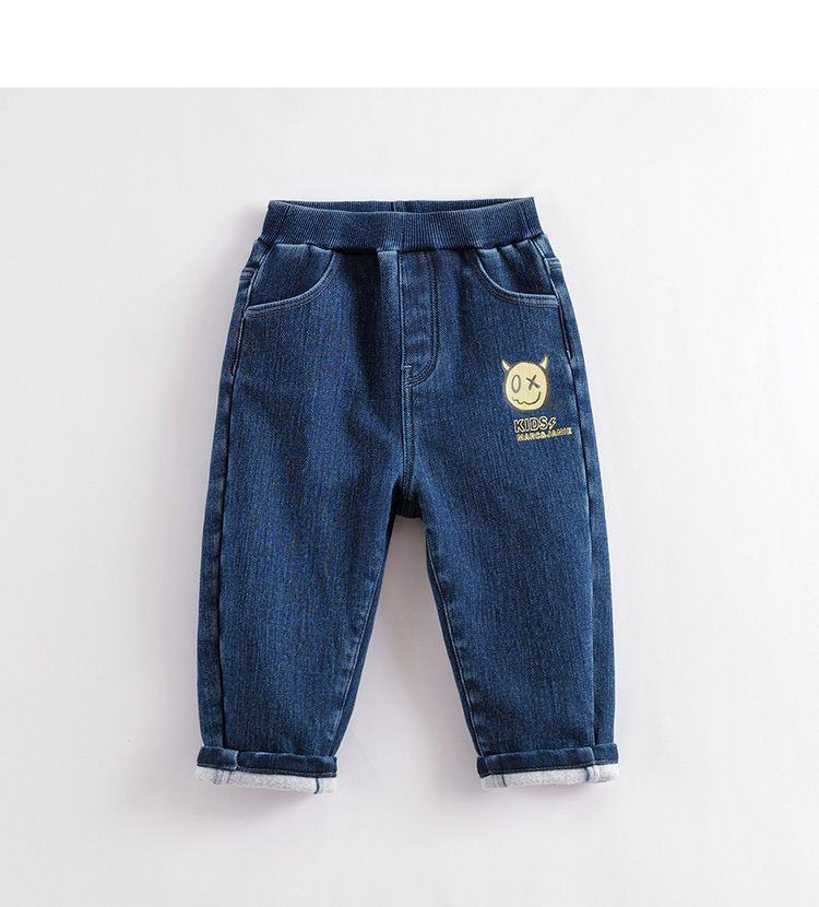 马克珍妮秋冬新款 男童小恶魔加绒直筒牛仔裤221886