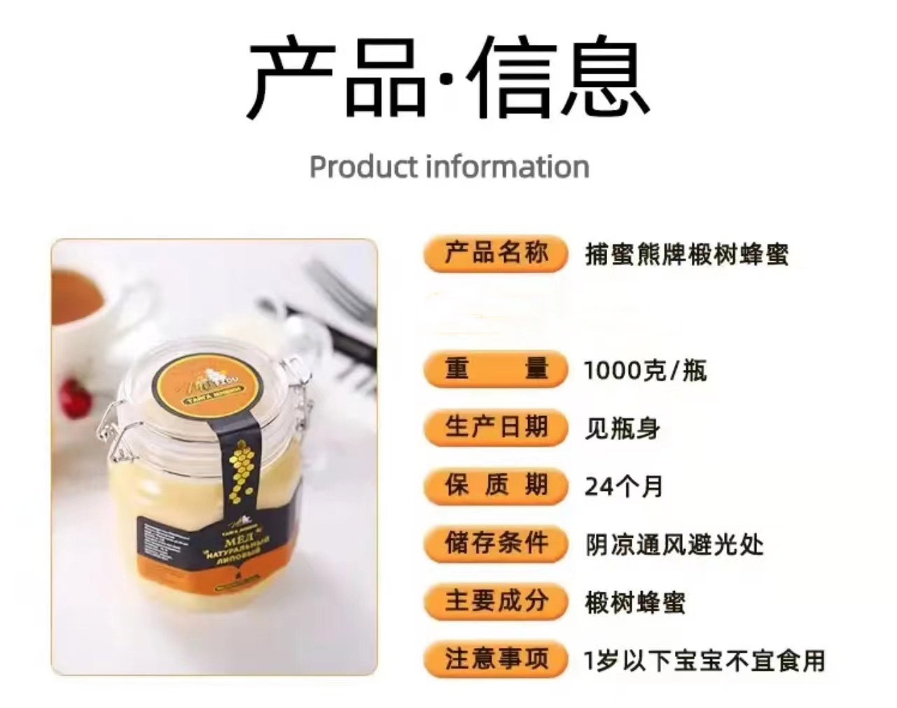 俄罗斯捕蜜熊椴树蜜500g/1000g