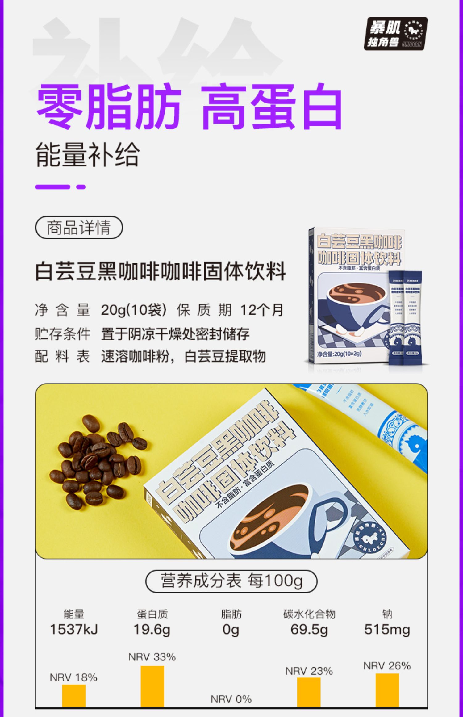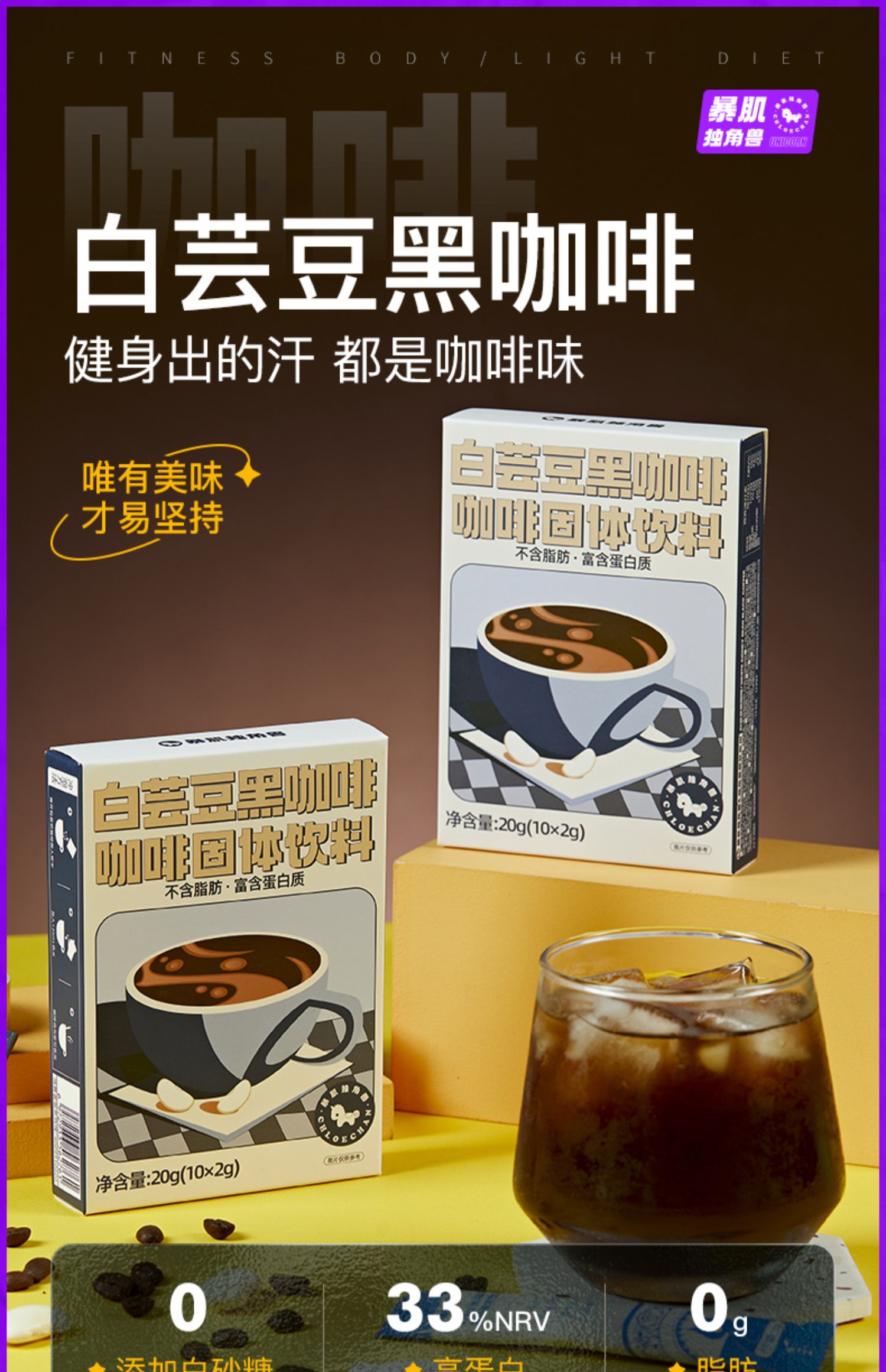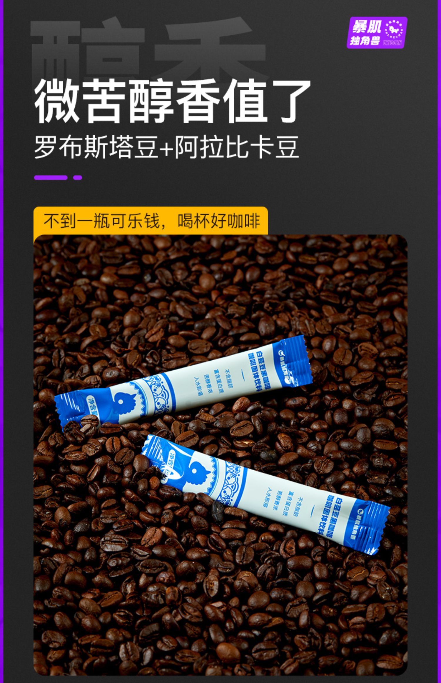 暴肌独角兽丨白芸豆黑咖啡0脂高蛋白中度烘焙冷热双泡独立包装