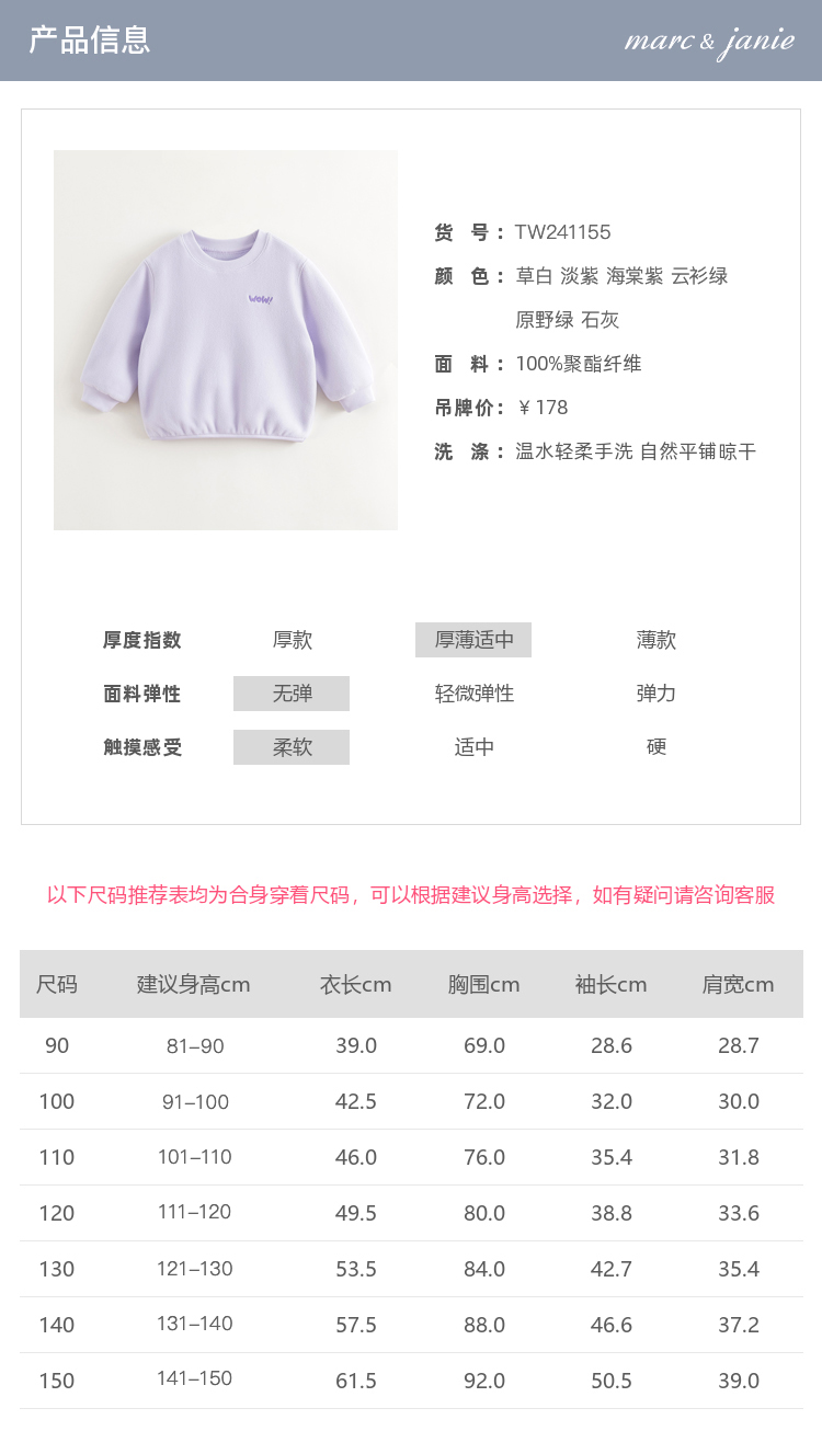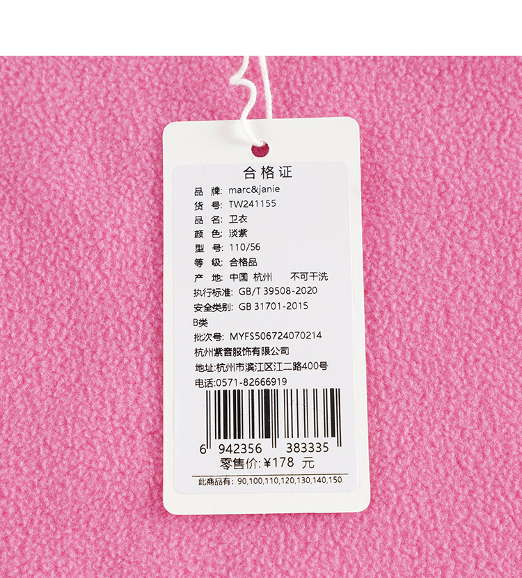 【抗静电】马克珍妮男女童柔软摇粒绒卫衣 儿童上衣春秋款241155