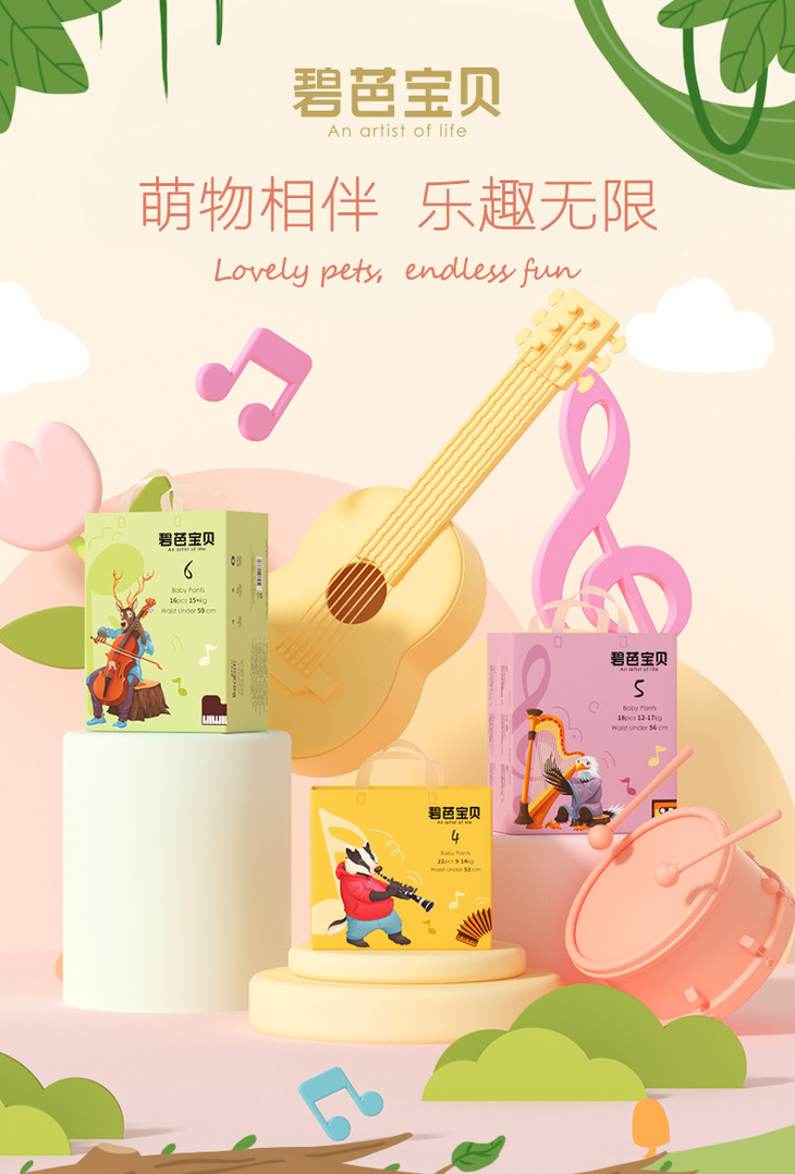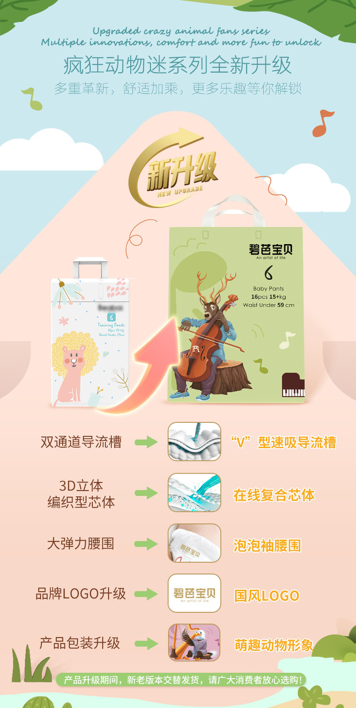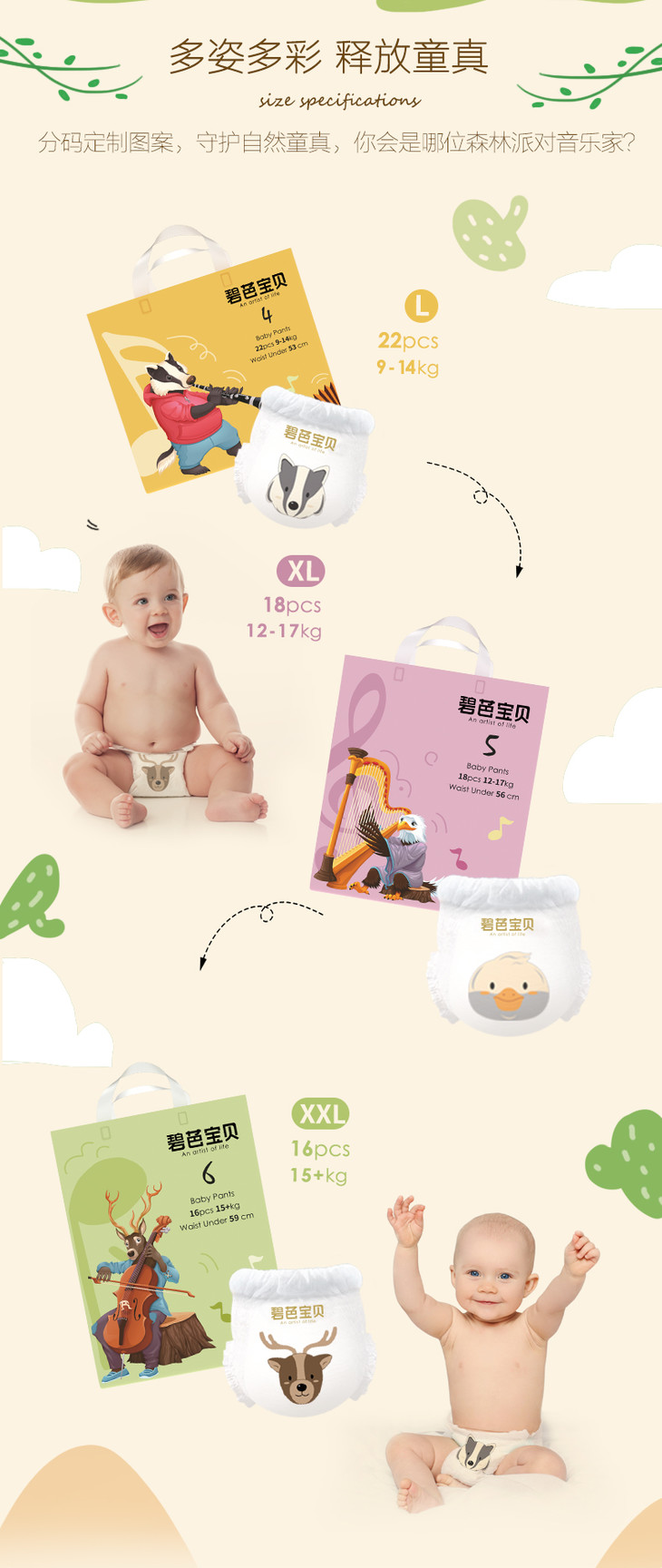【89元4包】碧芭宝贝疯狂动物迷系列纸尿裤拉拉裤2包装,尺码图中为2包片数之和