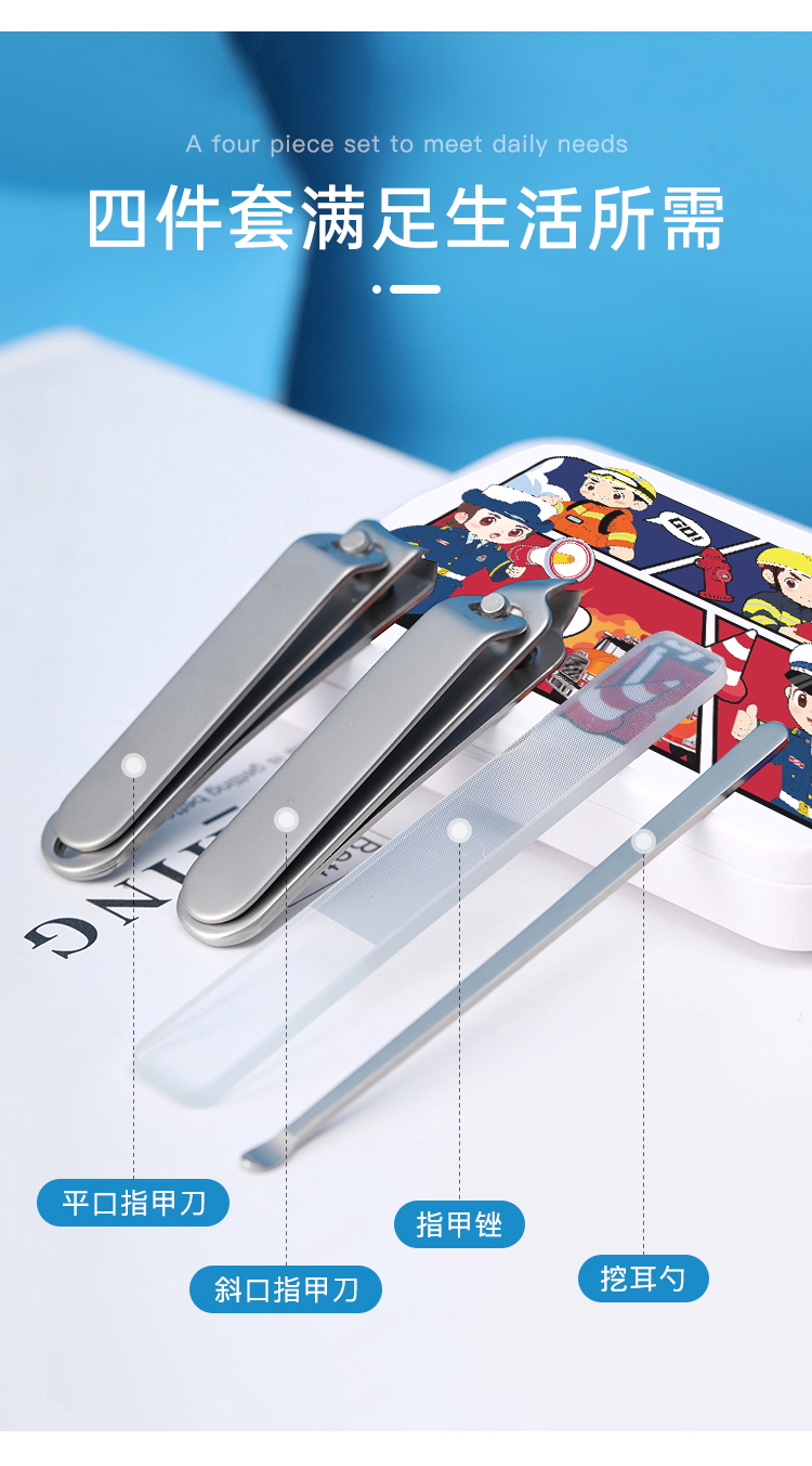 【消防指甲钳四件套】家用指甲修剪工具 日用挖耳勺美容剪修甲套装
