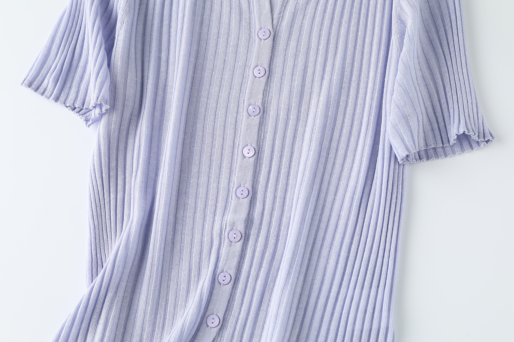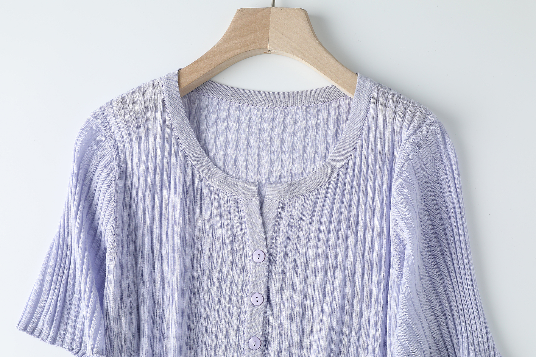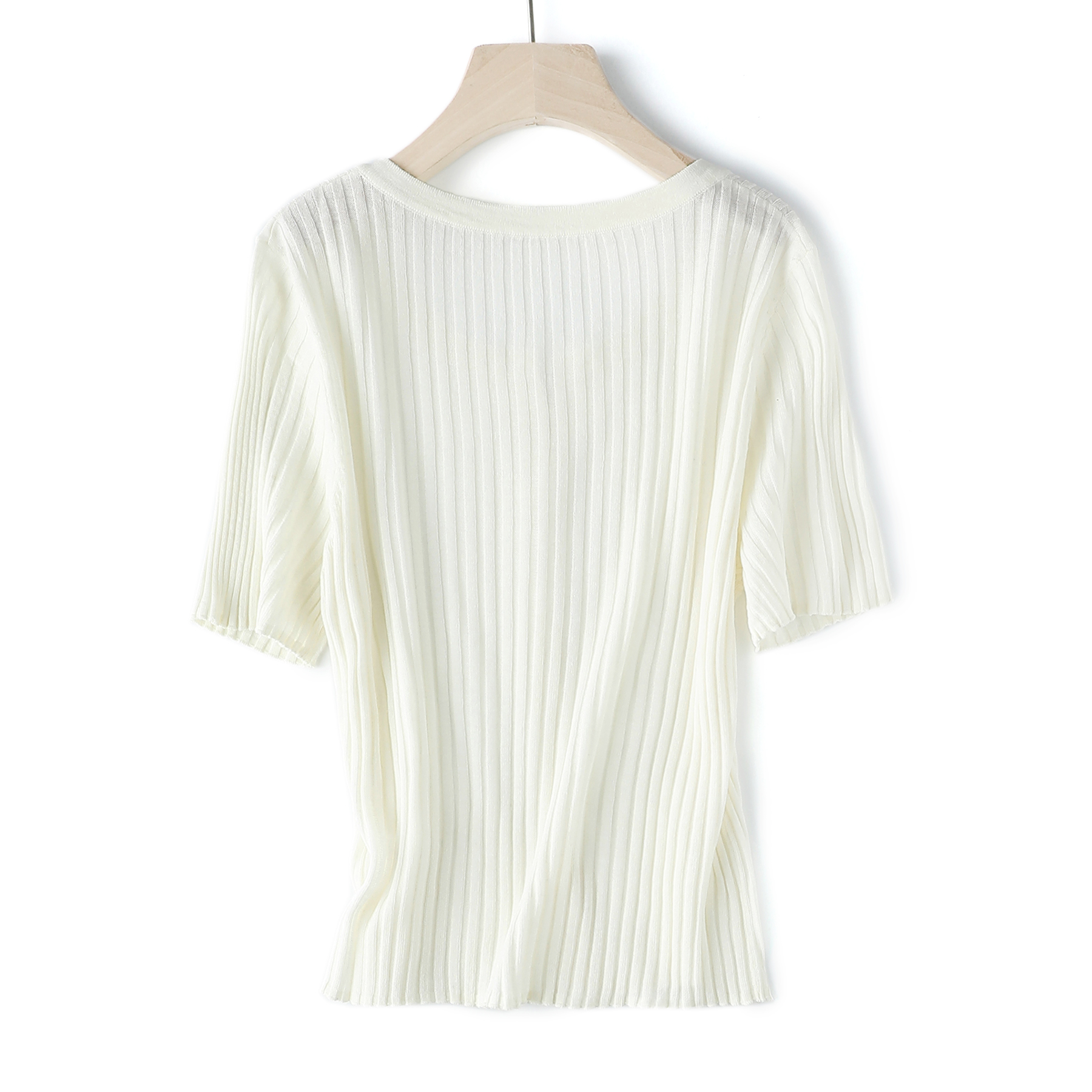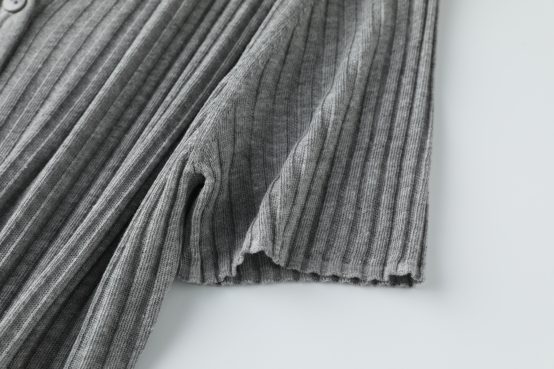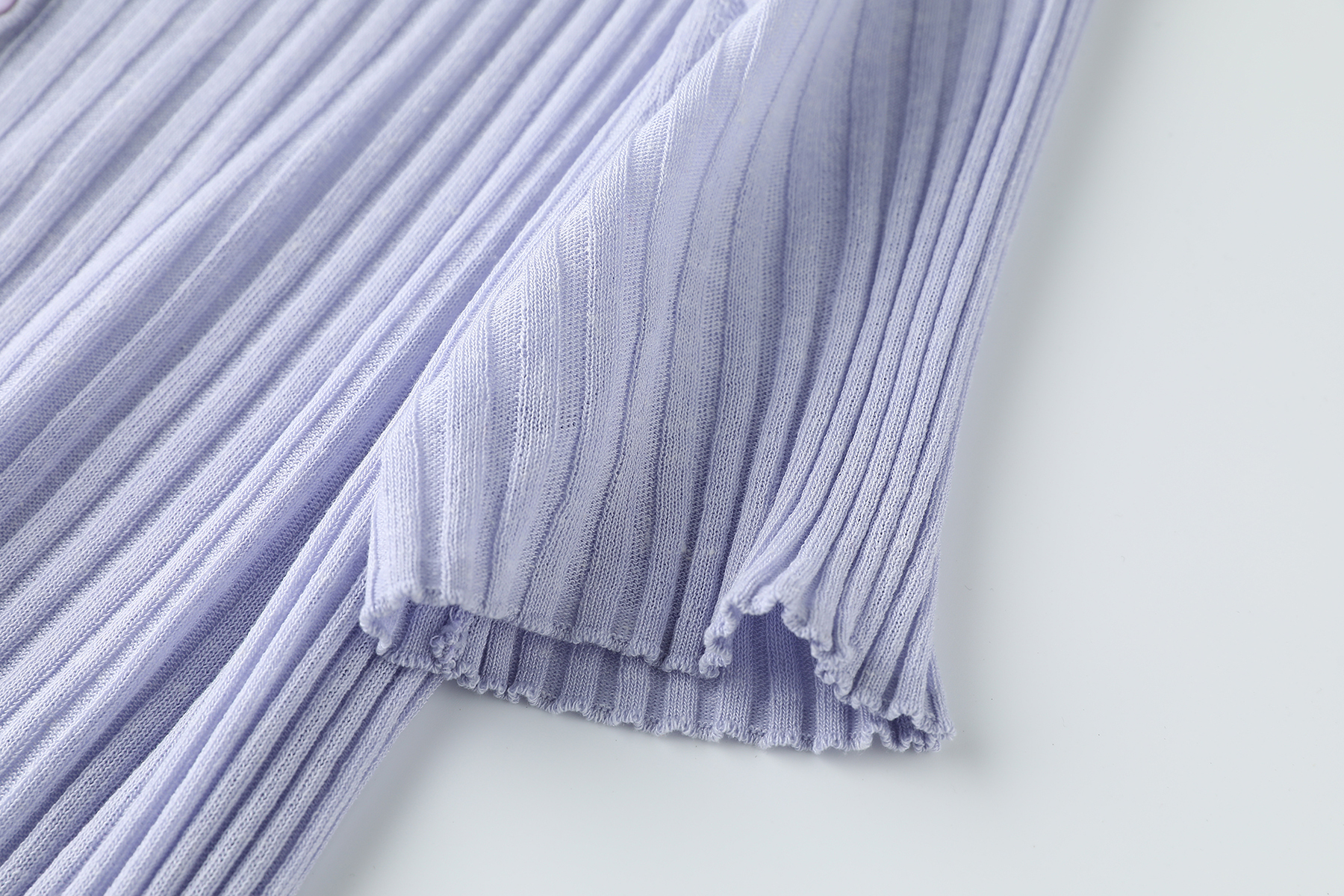 适合春日氛围的圆领短袖坑条针织衫,选色清新减龄,不挑人穿选用优质针织面料,手感柔软细腻,色泽柔和