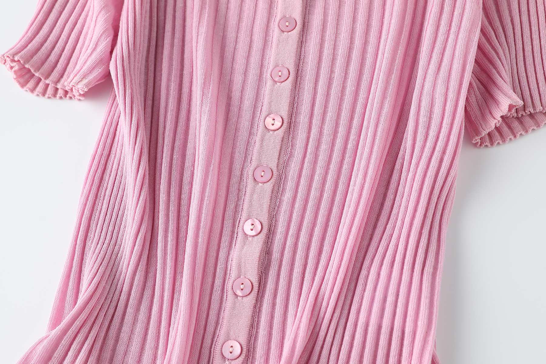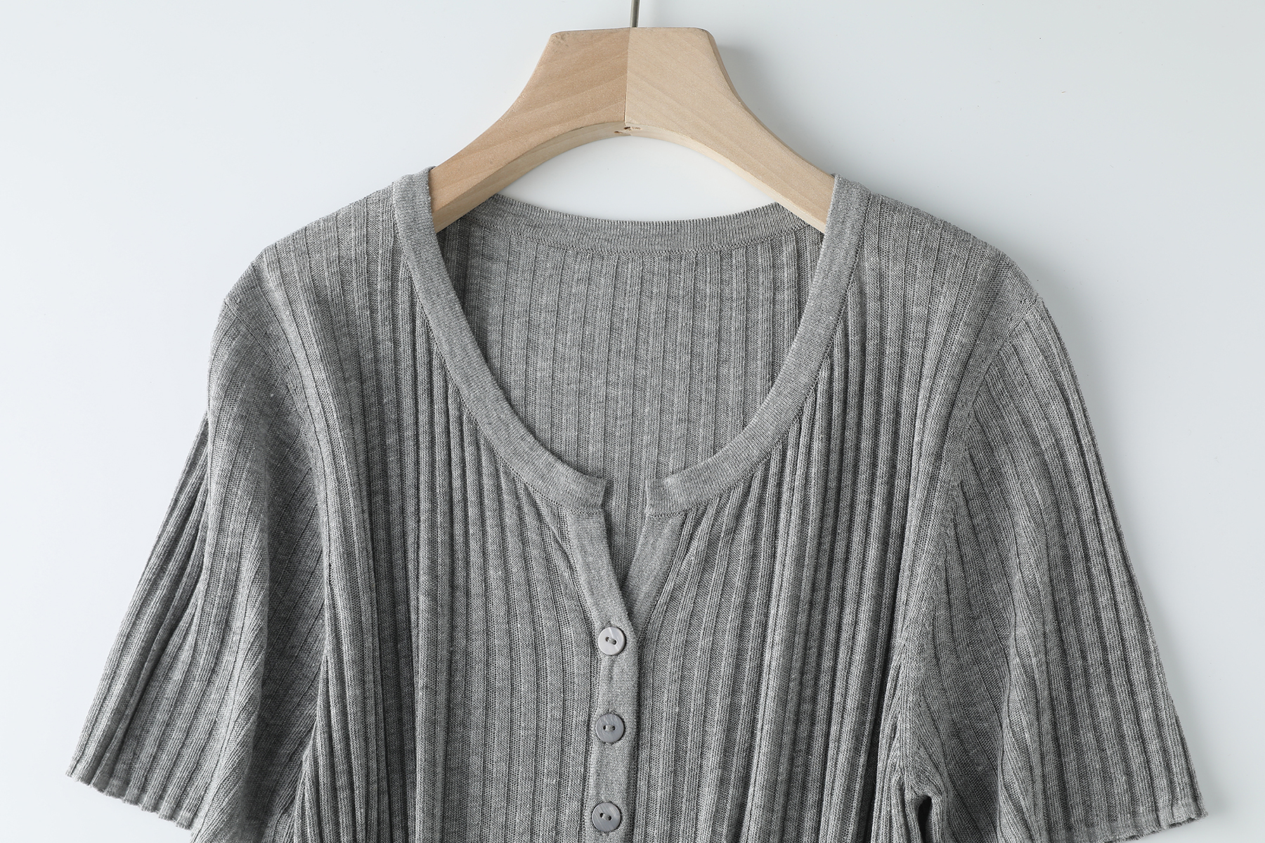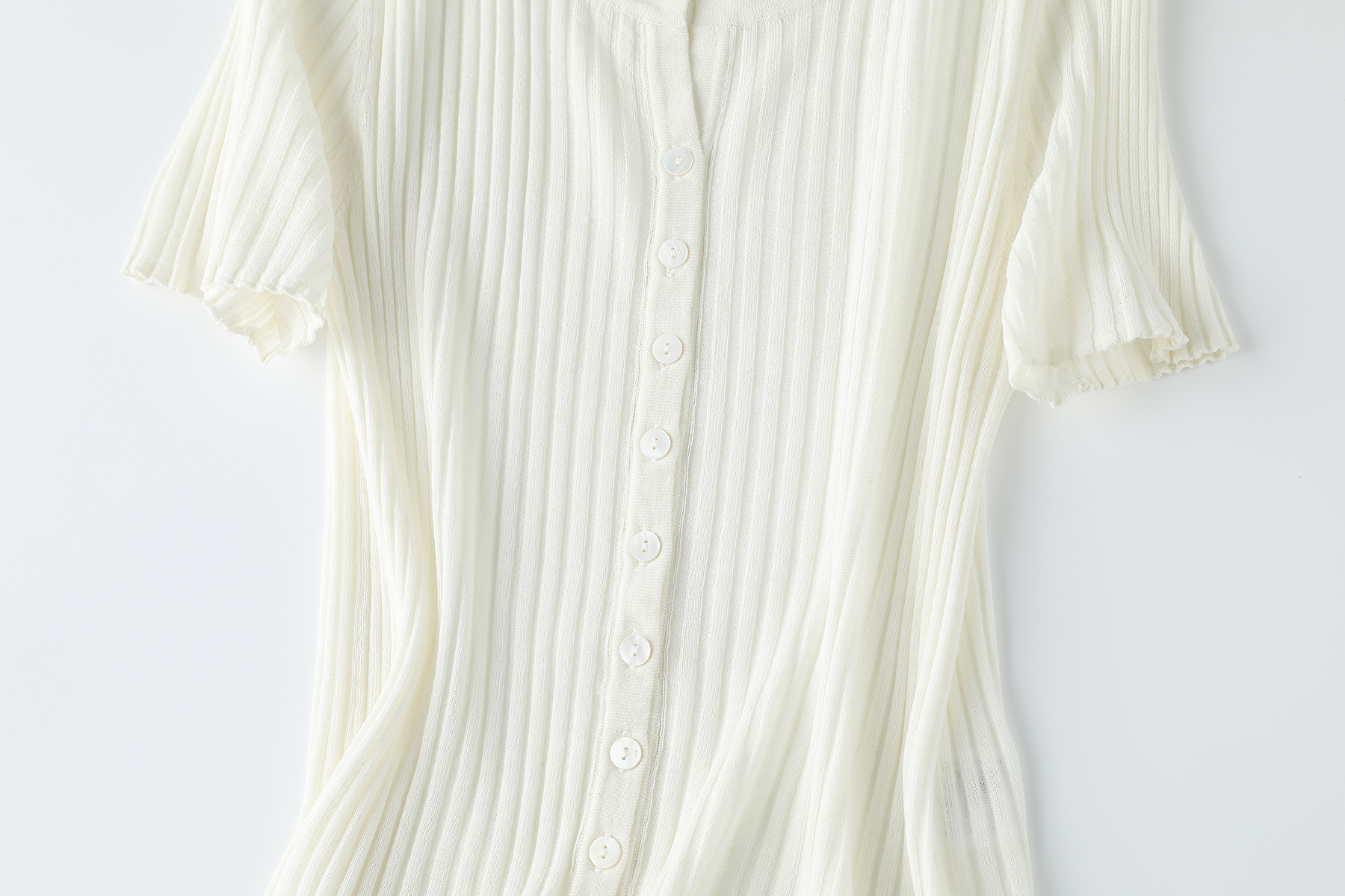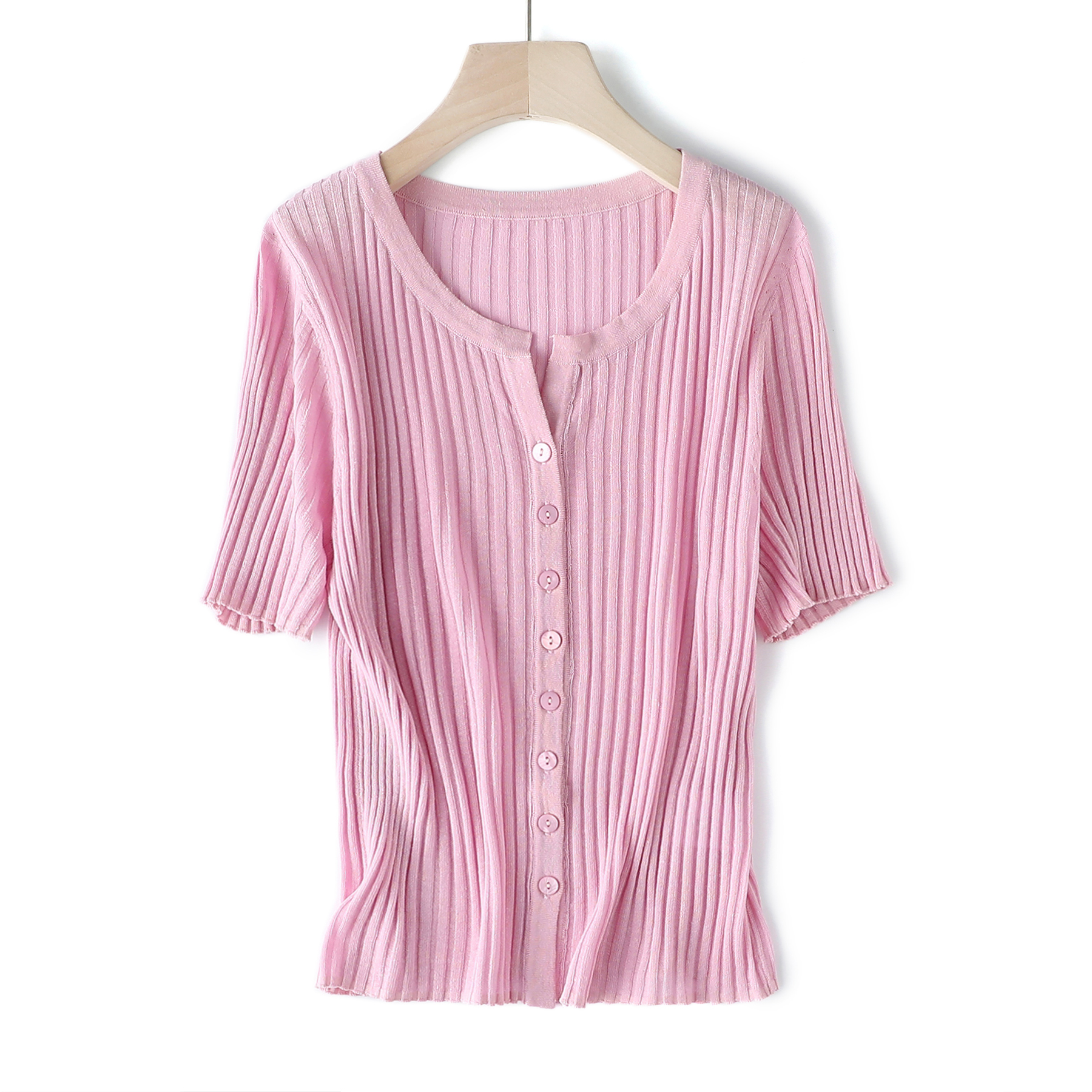适合春日氛围的圆领短袖坑条针织衫,选色清新减龄,不挑人穿选用优质针织面料,手感柔软细腻,色泽柔和
