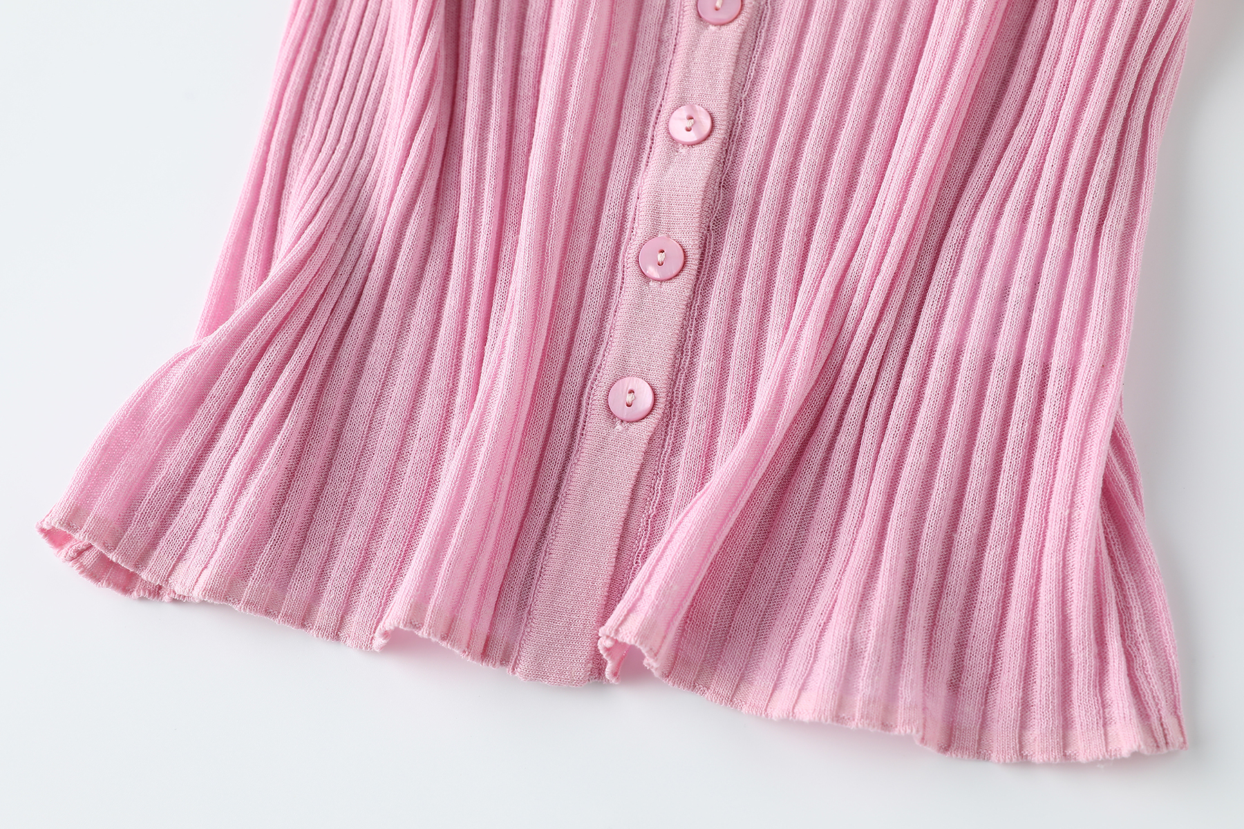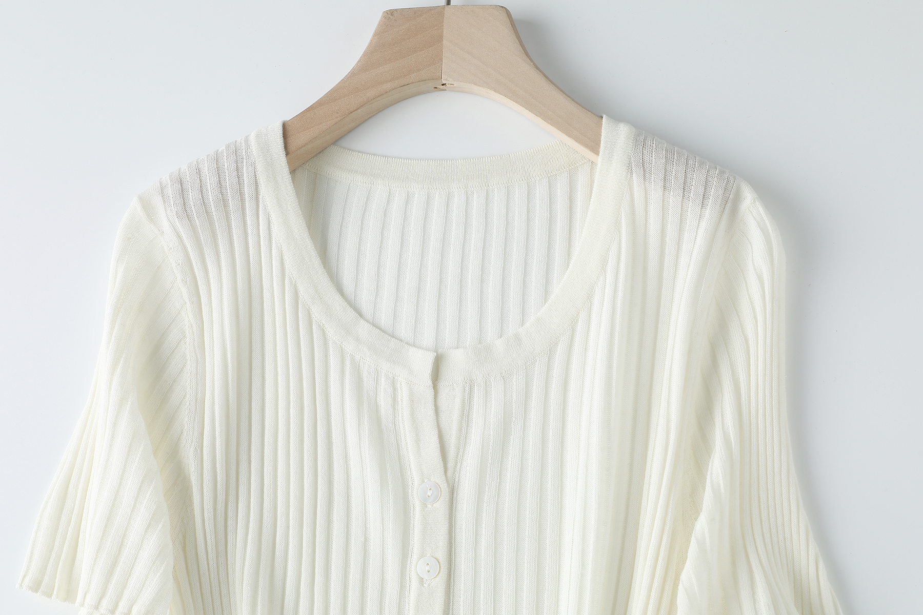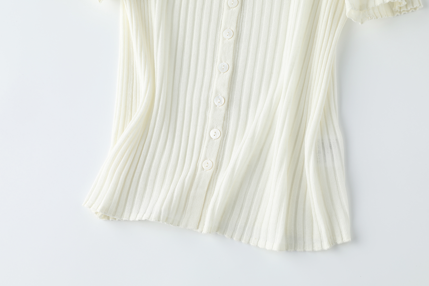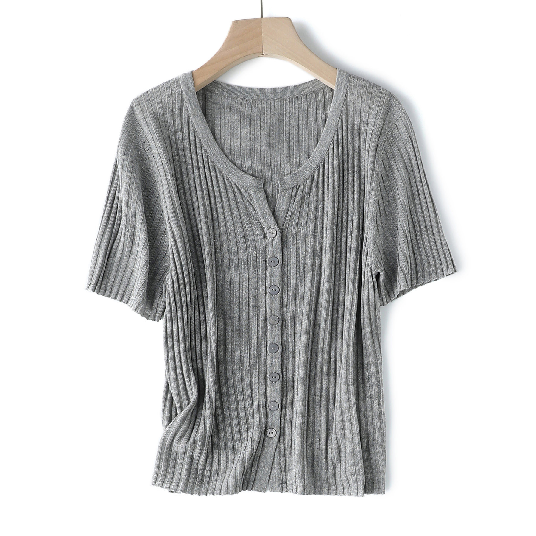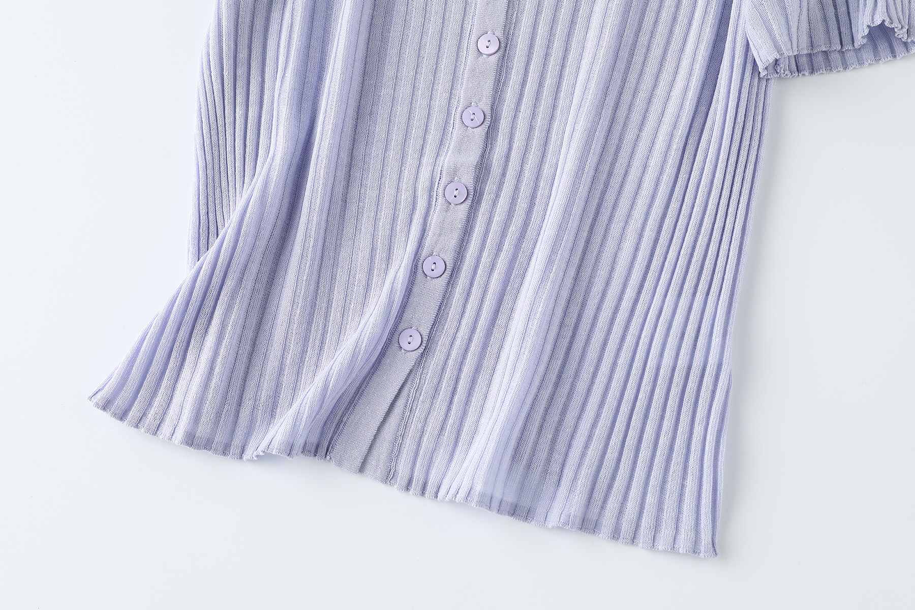 适合春日氛围的圆领短袖坑条针织衫,选色清新减龄,不挑人穿选用优质针织面料,手感柔软细腻,色泽柔和
