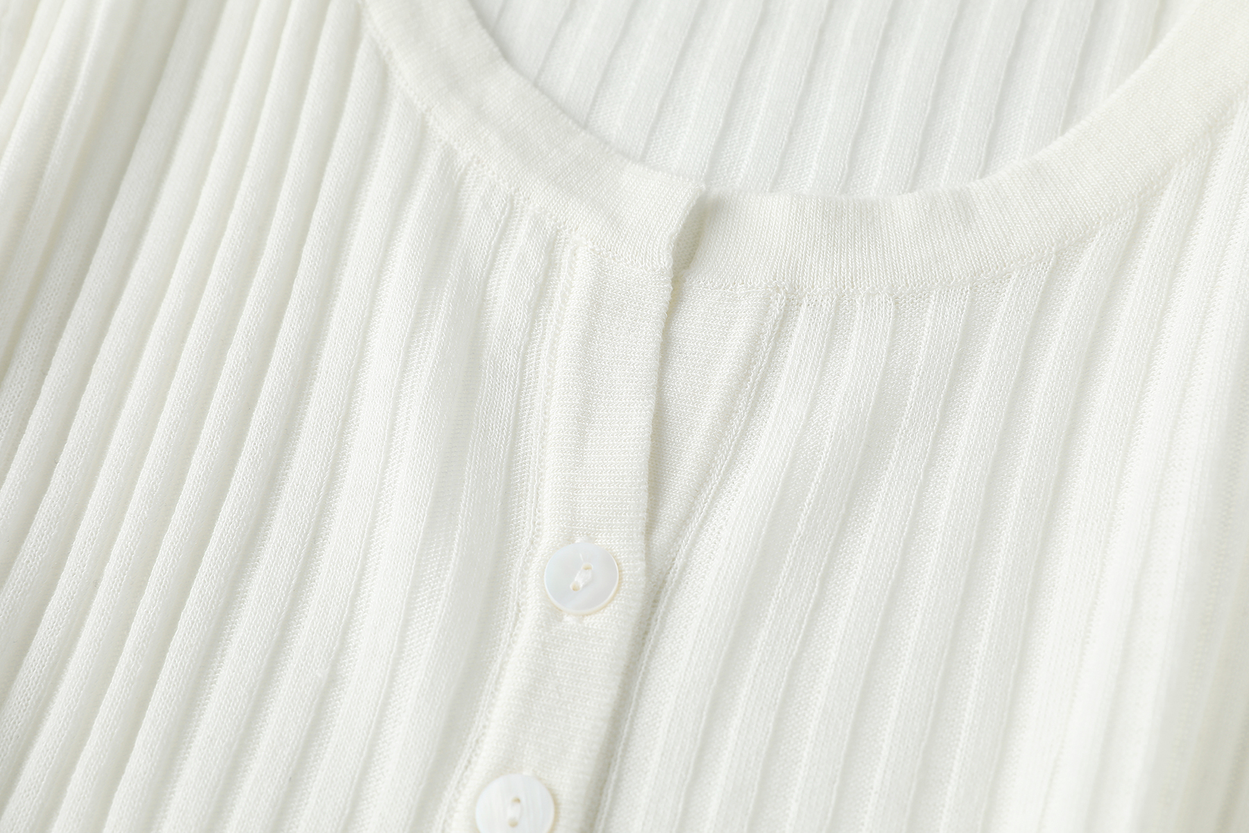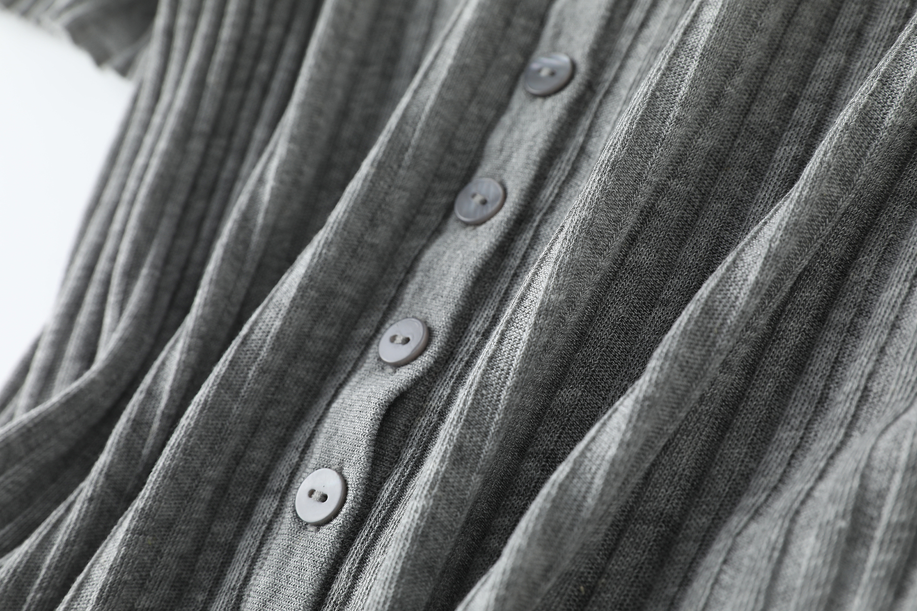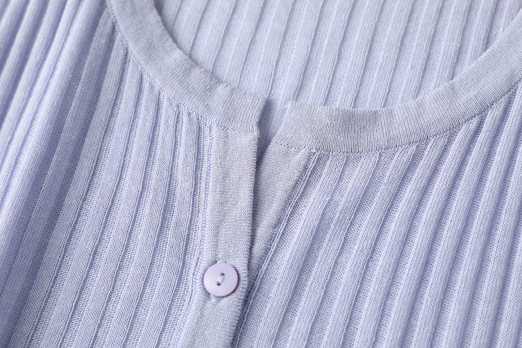 简约圆领领口,门襟处点缀同色系纽扣;经典正肩设计,上身挺拔气质修身版型体感包裹而不紧绷,纵向坑条肌理,视觉上更加显瘦,基础易搭