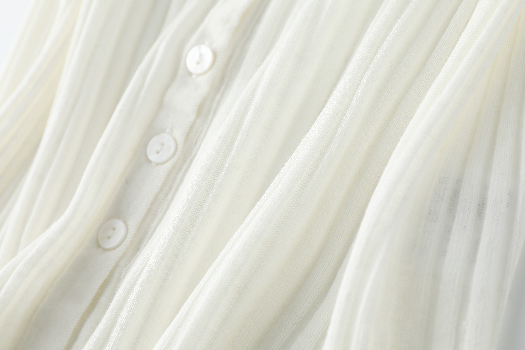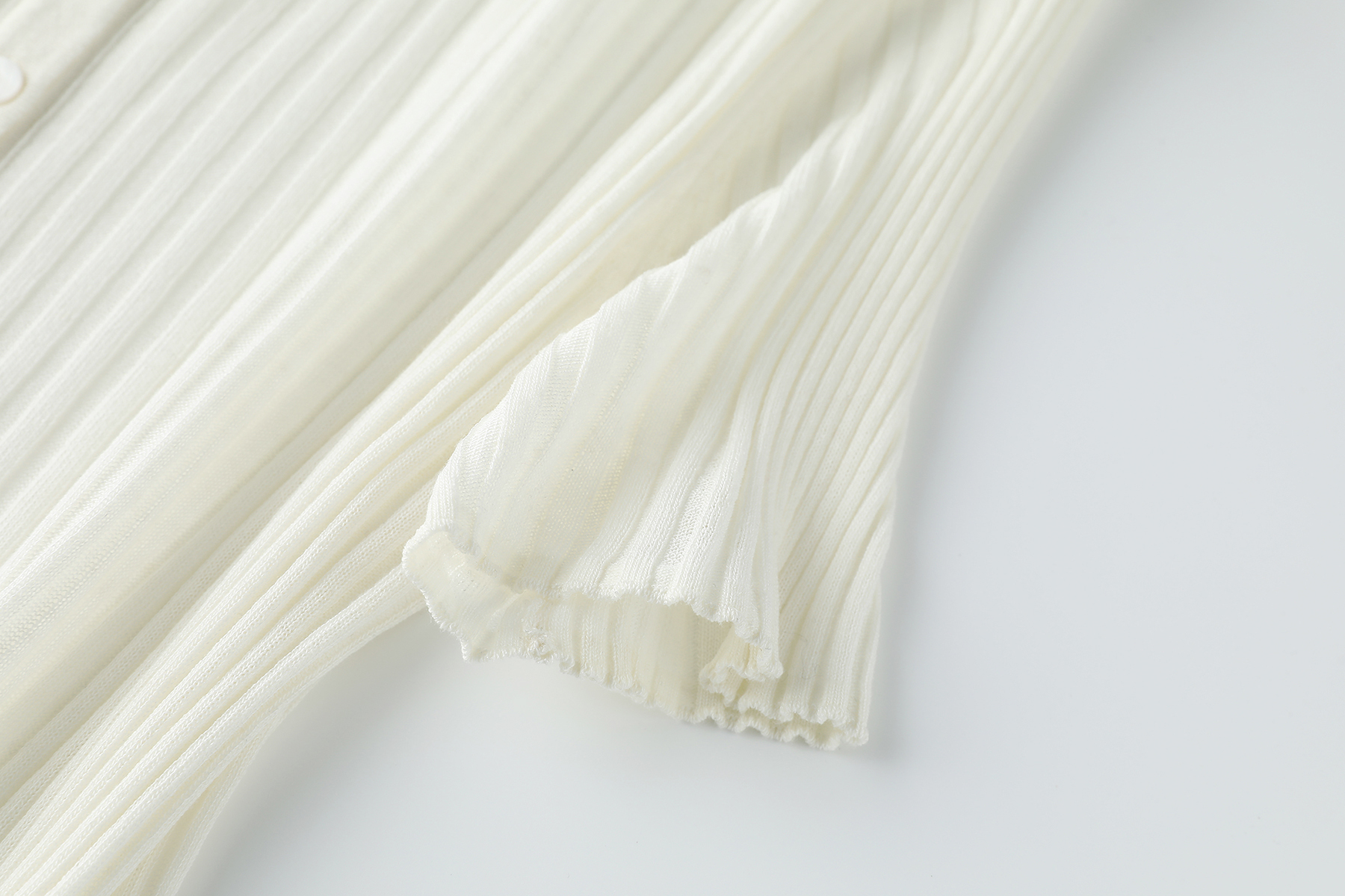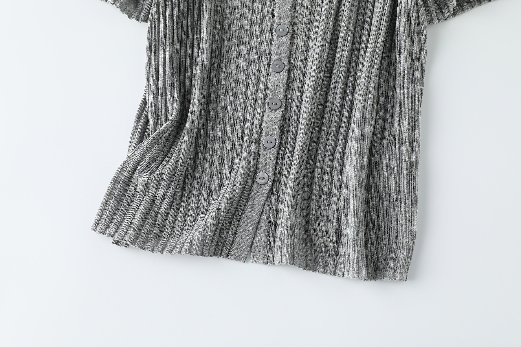简约圆领领口,门襟处点缀同色系纽扣;经典正肩设计,上身挺拔气质修身版型体感包裹而不紧绷,纵向坑条肌理,视觉上更加显瘦,基础易搭