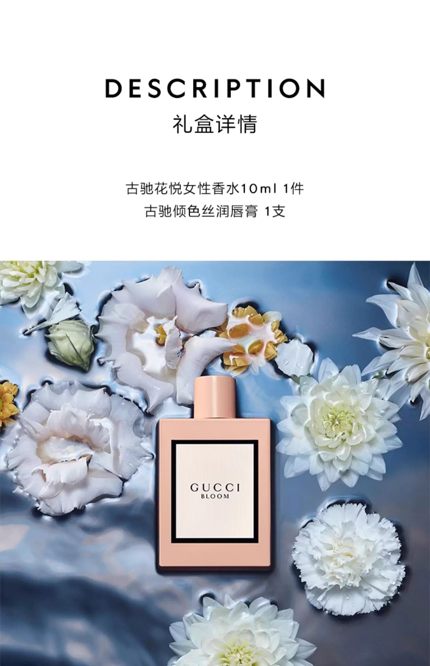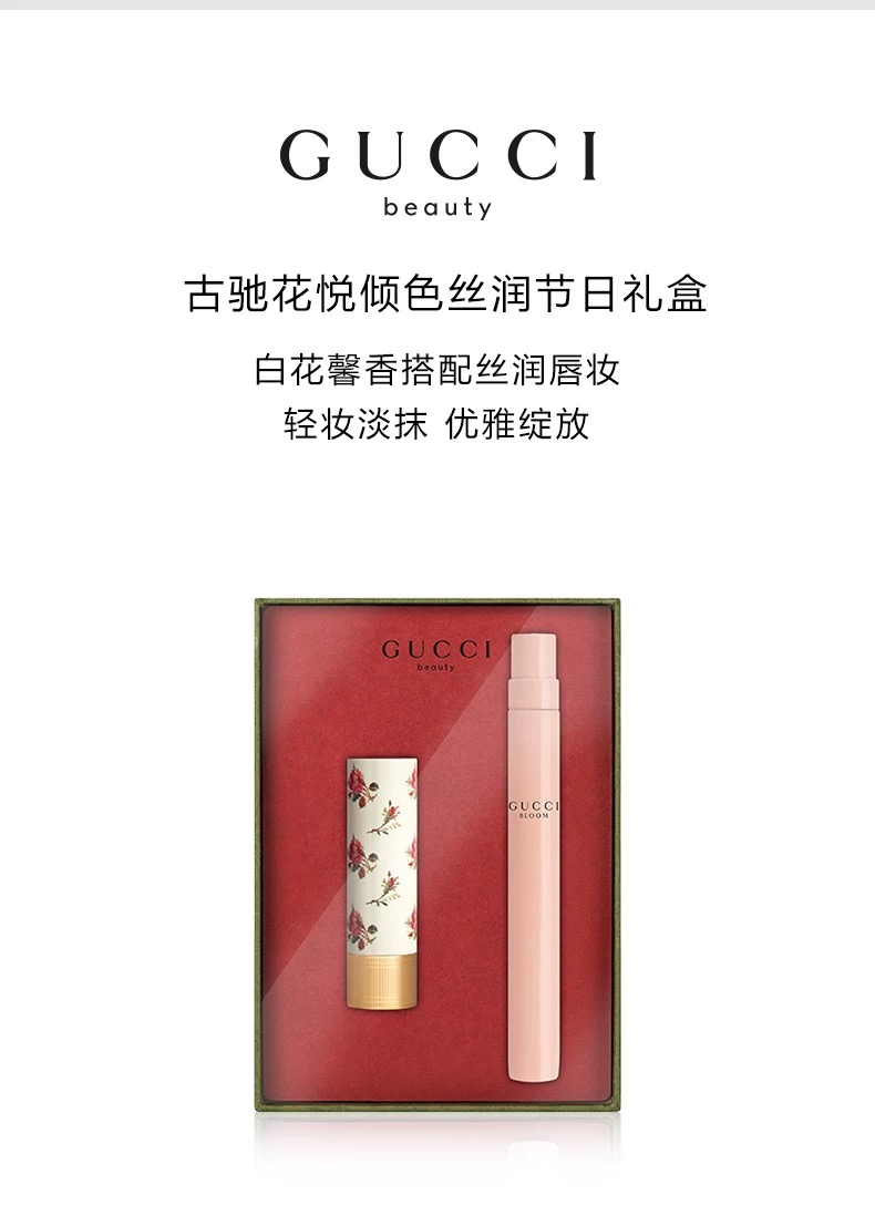 GUCCI古驰倾色花悦丝润节日礼盒香水口红套装 丝润碎花口红25色号+花悦女士香水10ml礼盒