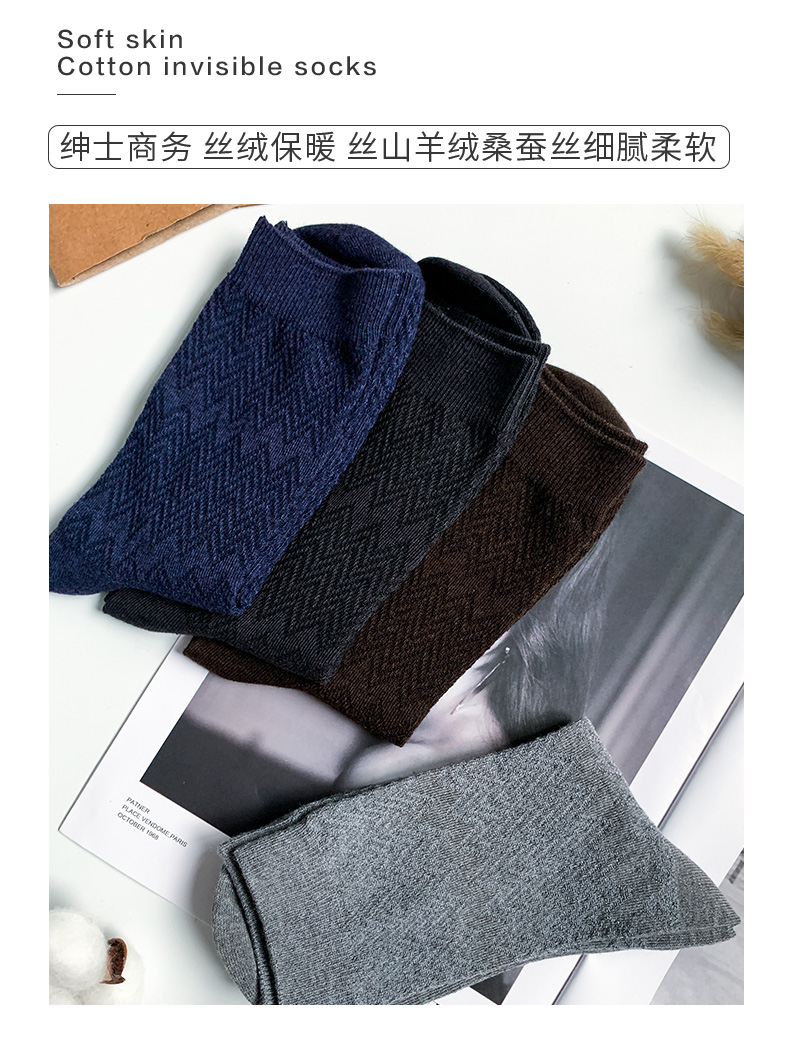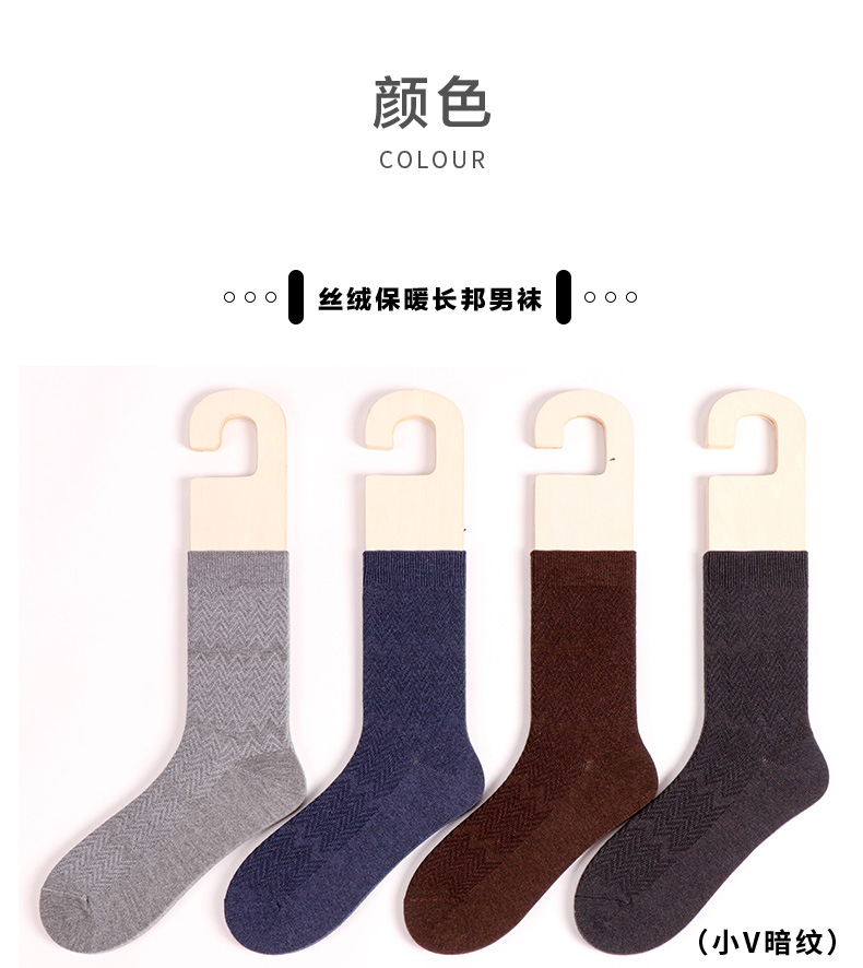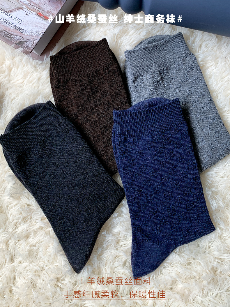 23秋冬新品男士长筒袜保暖纯色百搭商务山羊绒桑蚕丝男袜