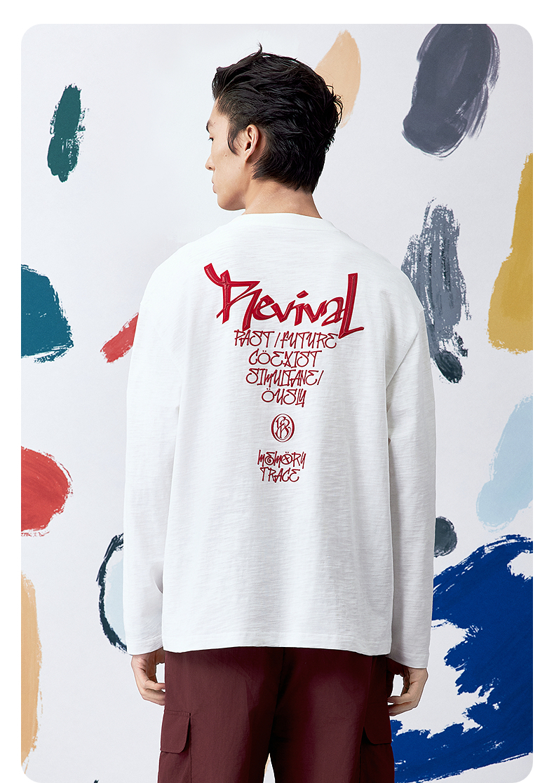 GXG男装圆领T恤背后印花长袖针织25夏季热卖G25X342008