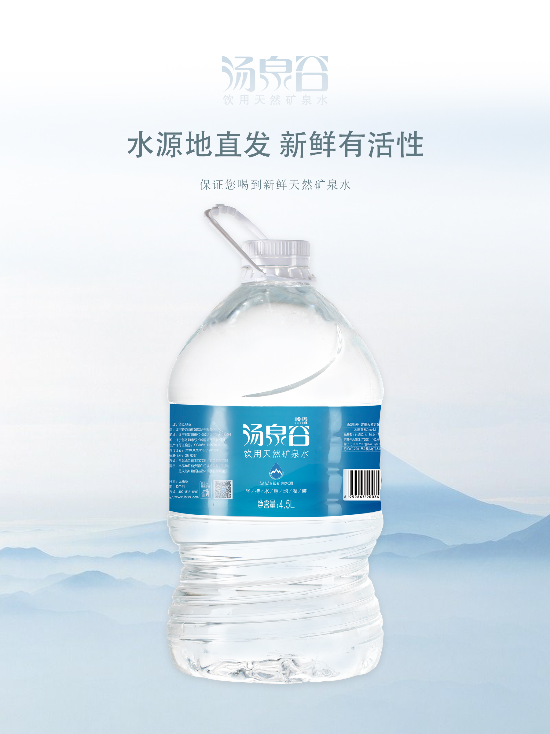 4.5L桶装水采用食品级PET材料,超轻环保一次性包装,传统工艺与现代科技相结合。汤泉谷一次性桶装水迎合消费者诉求,专注产品品质,不再重复使用循环桶,让您的生活更有品质!