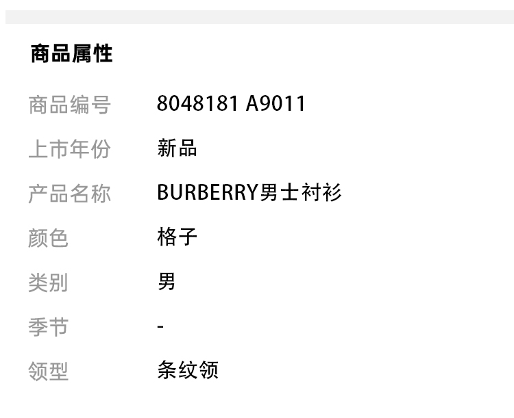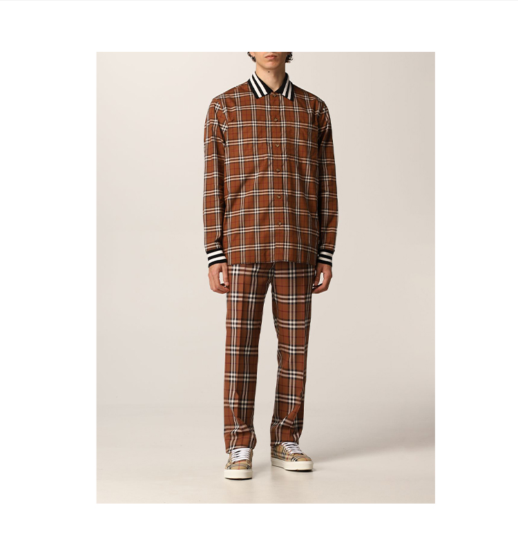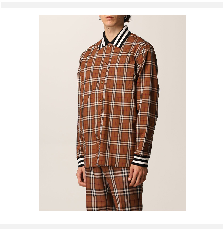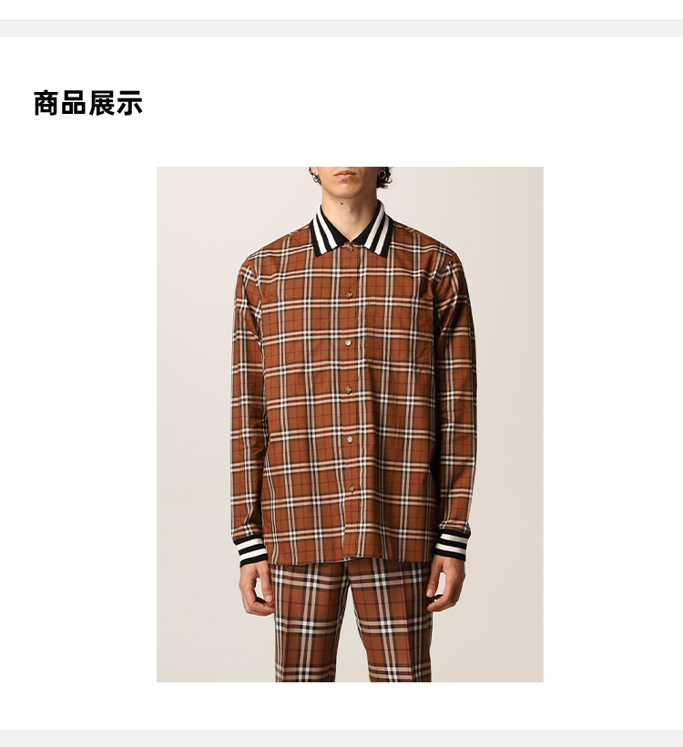 BURBERRY 博柏利 格纹棉府绸衬衫 男士长袖衬衫 深桦木棕 8048181 A9011