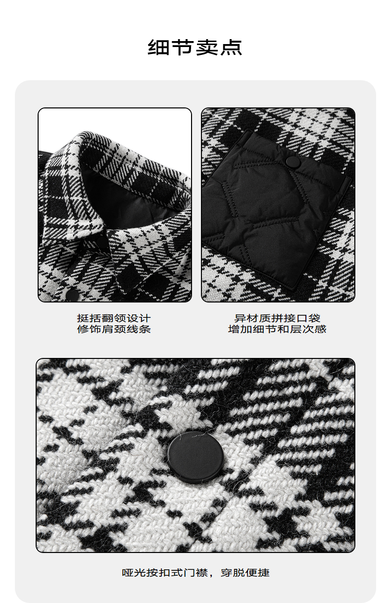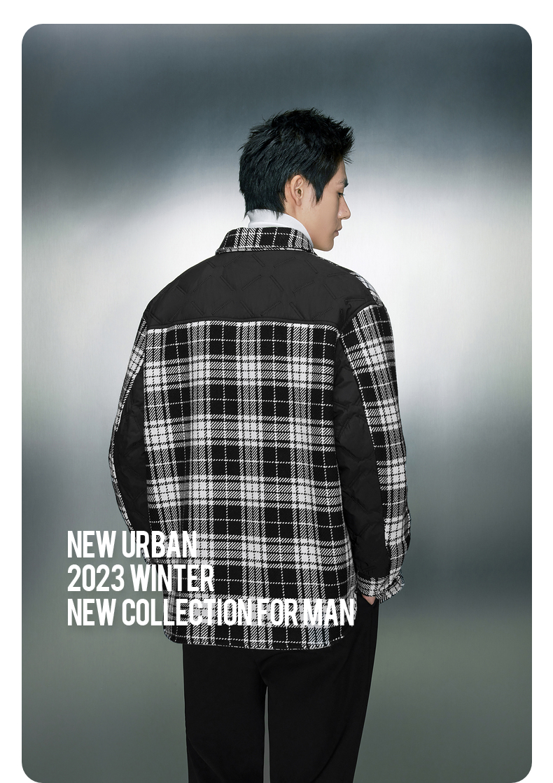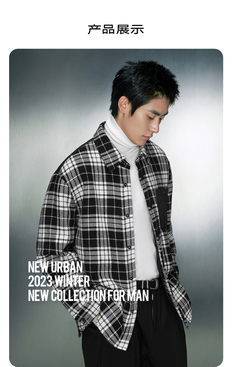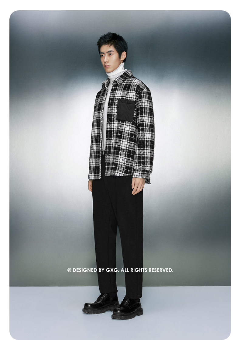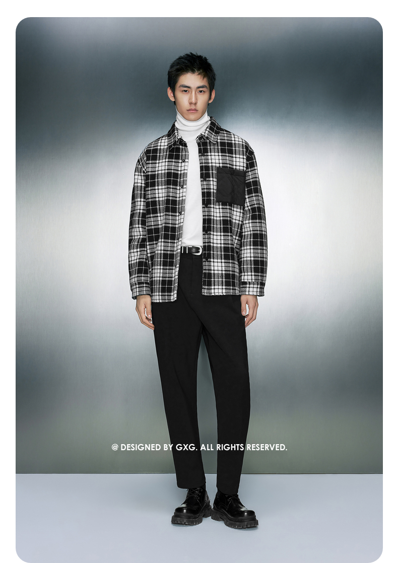 GXG男装 经典黑白格纹毛呢加棉衬衫式夹克外套 冬季热卖夹克