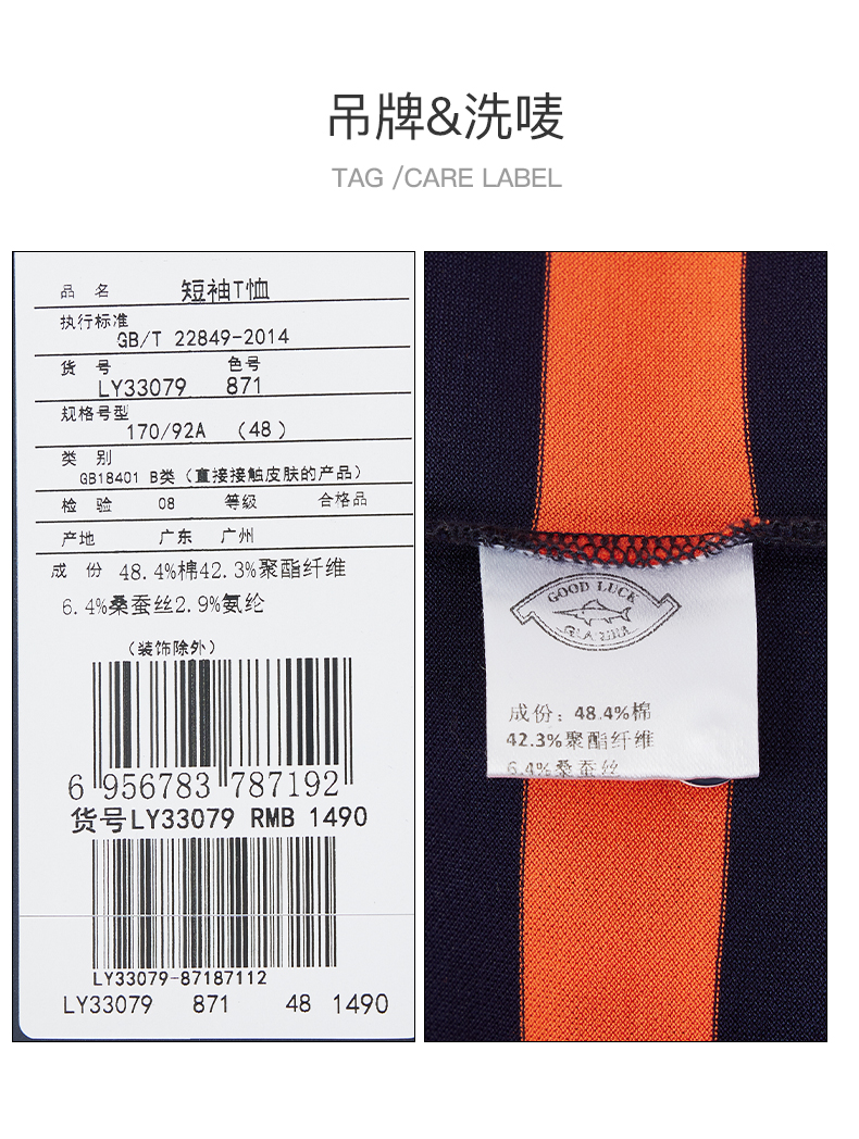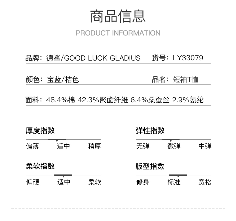 GOOD LUCK/德鲨弹力棉质舒适柔软印花时尚圆领短袖T恤LY13557
