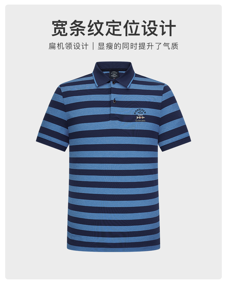 【桑蚕丝】德鲨男装条纹短袖POLO衫夏新款休闲打底翻领T恤