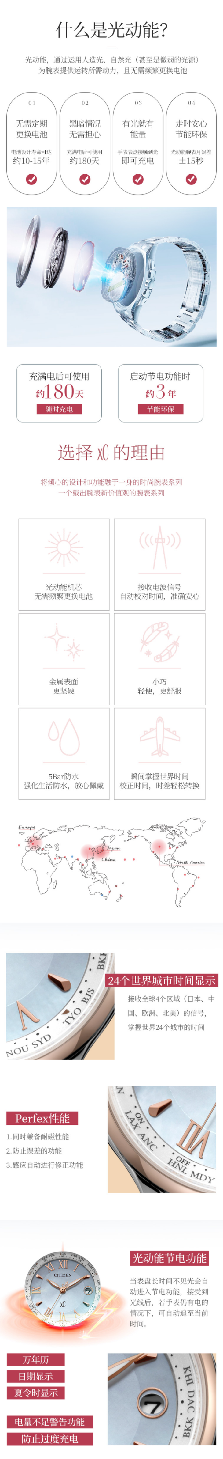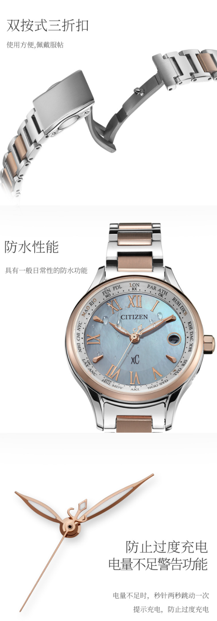 西铁城日本正品舒博钛™间粉金色万年历多局电波女表EC1169-50W