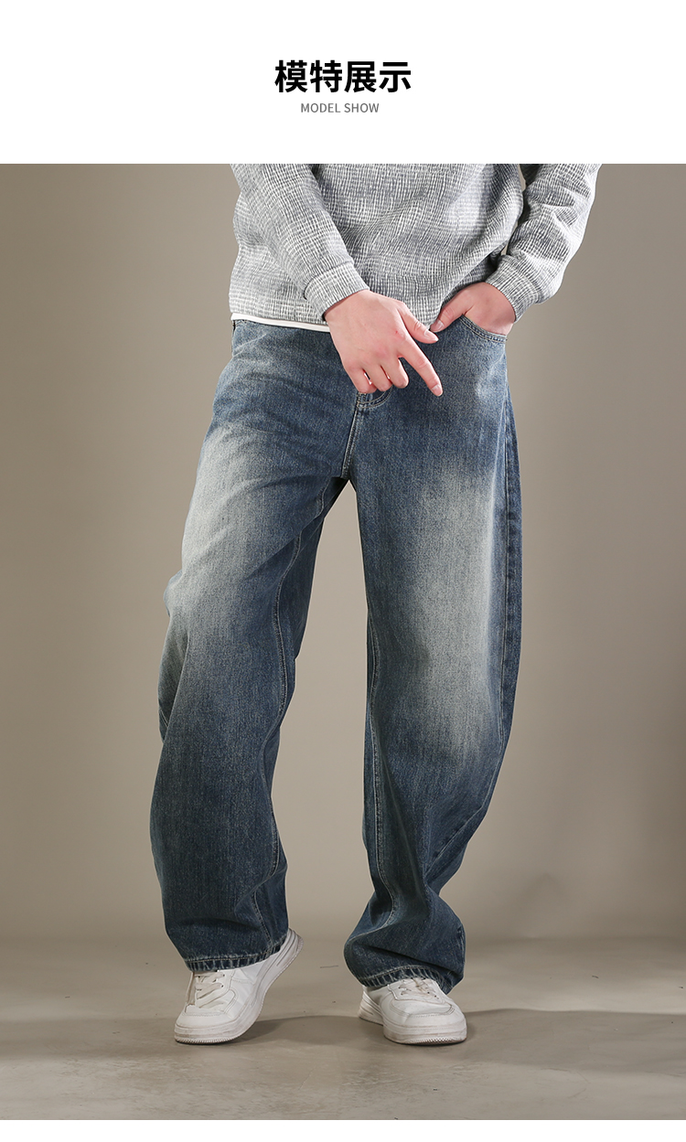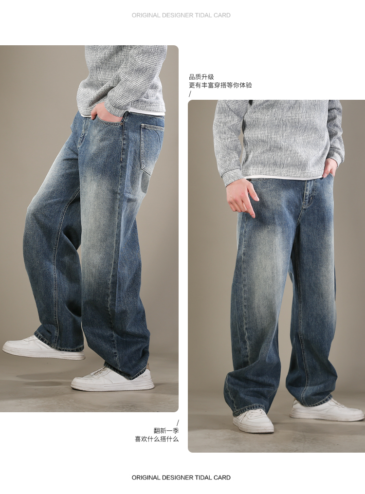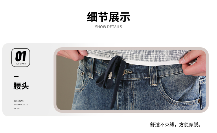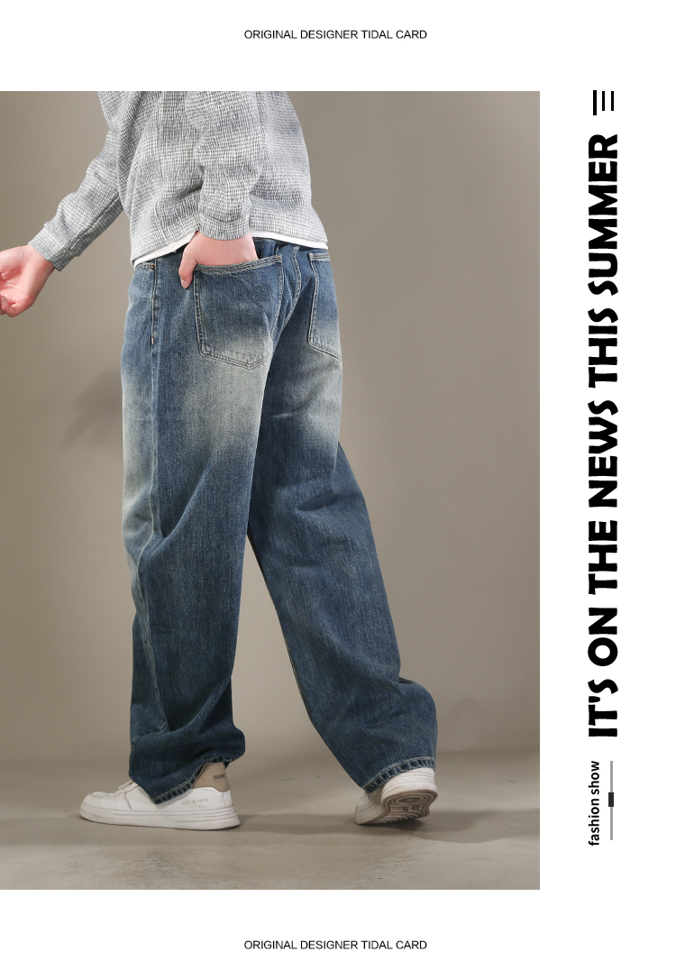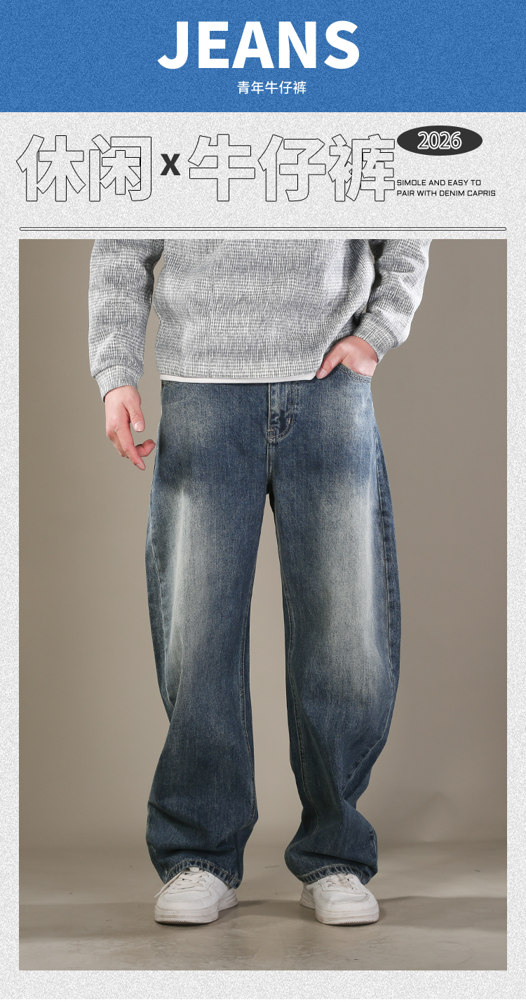 DRONKOO 2026 内蓝色抽绳金属夹标半松紧复古洗水中厚牛仔长裤