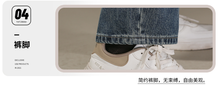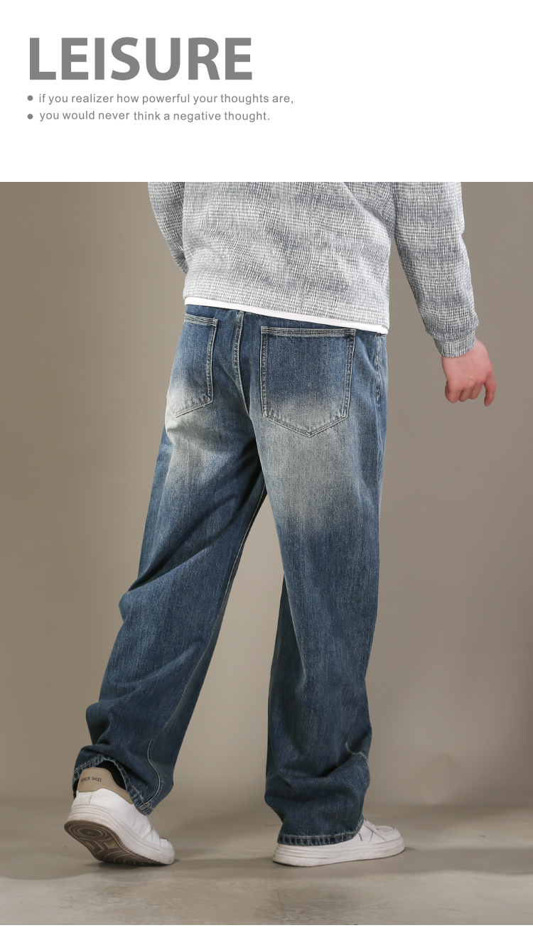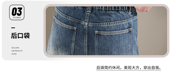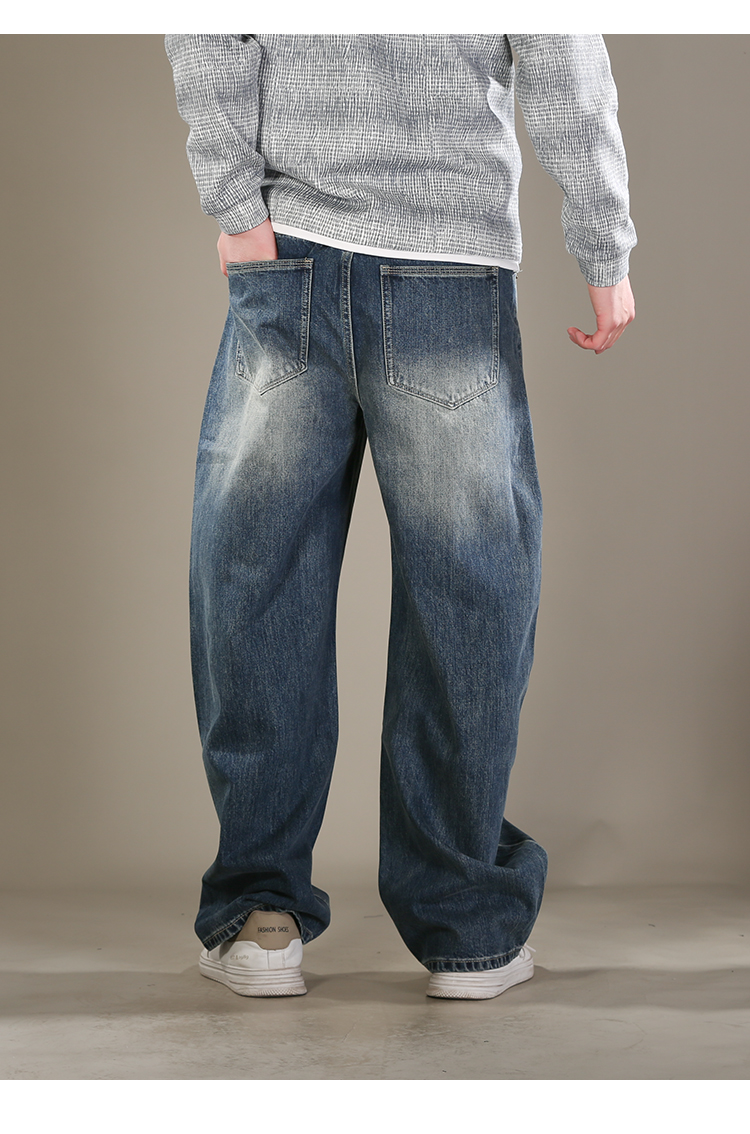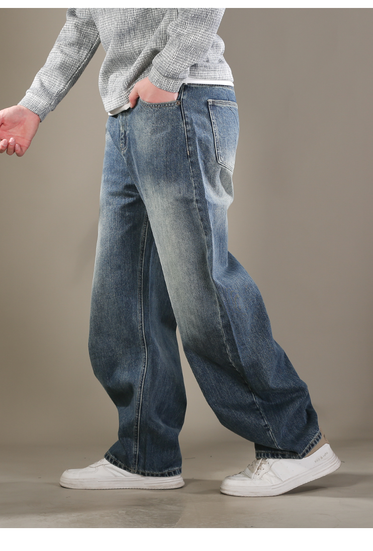 DRONKOO 2026 内蓝色抽绳金属夹标半松紧复古洗水中厚牛仔长裤