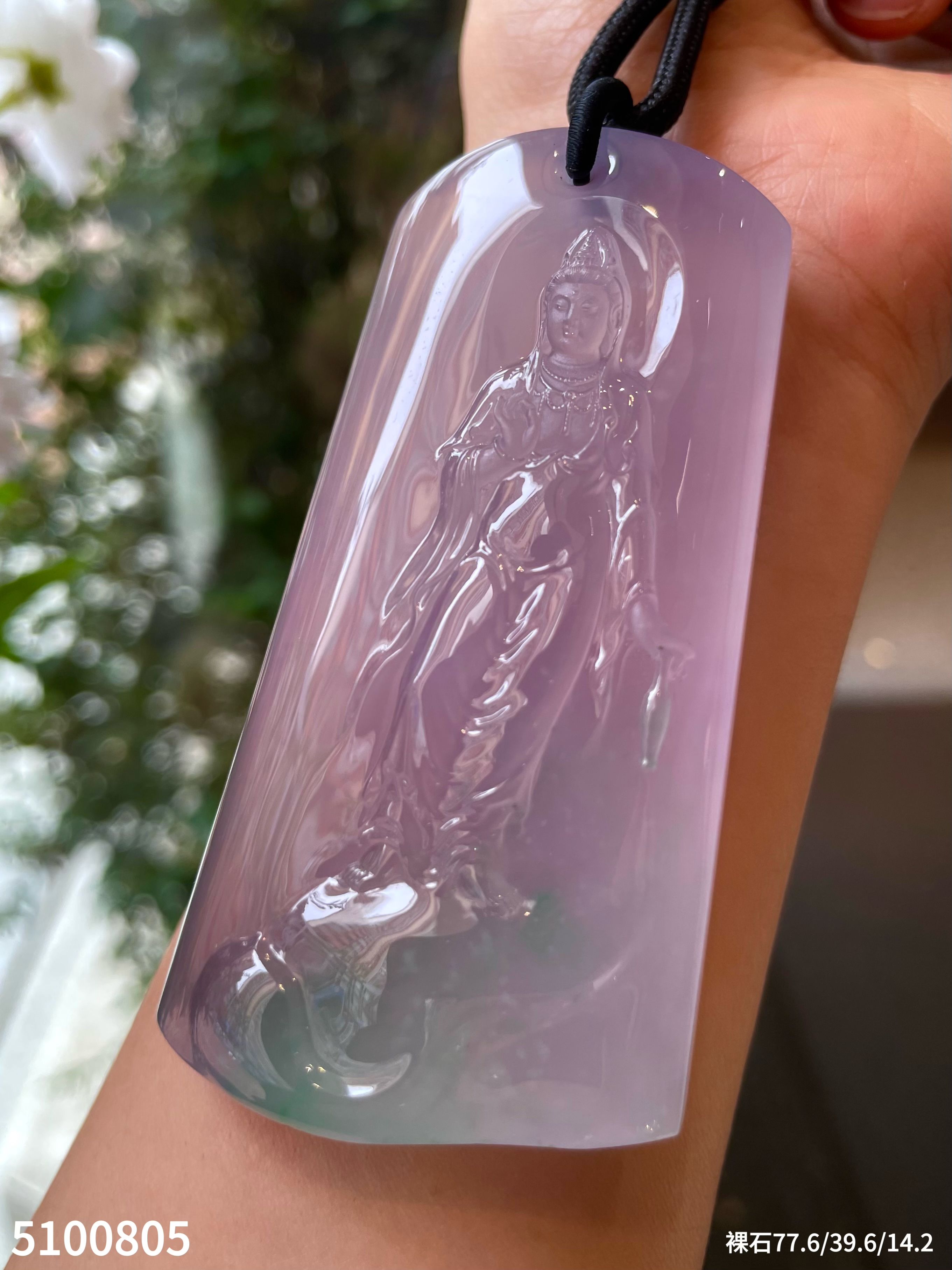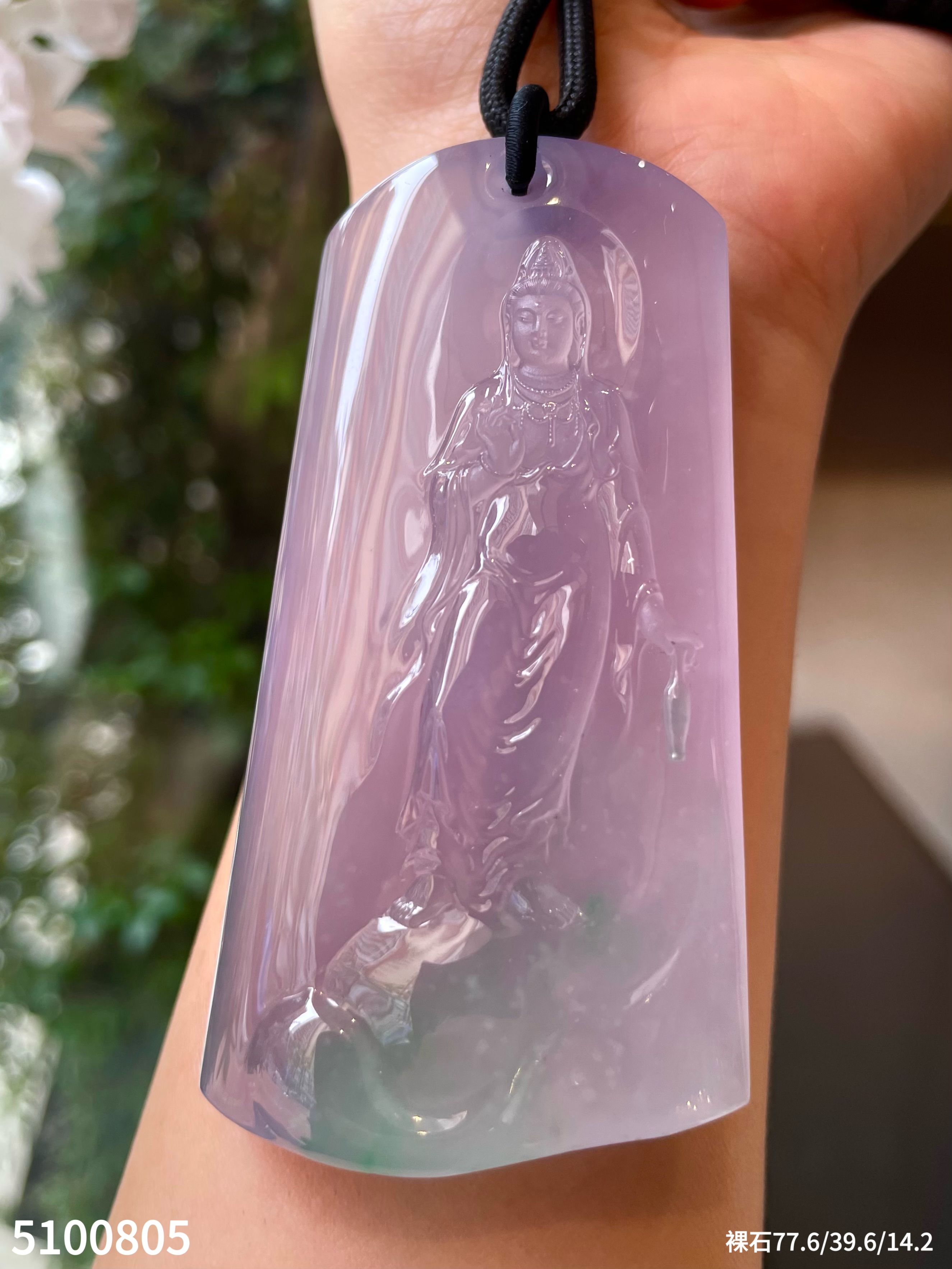 玻璃种春带彩观音牌素件【5100805】具体价格微信咨询
