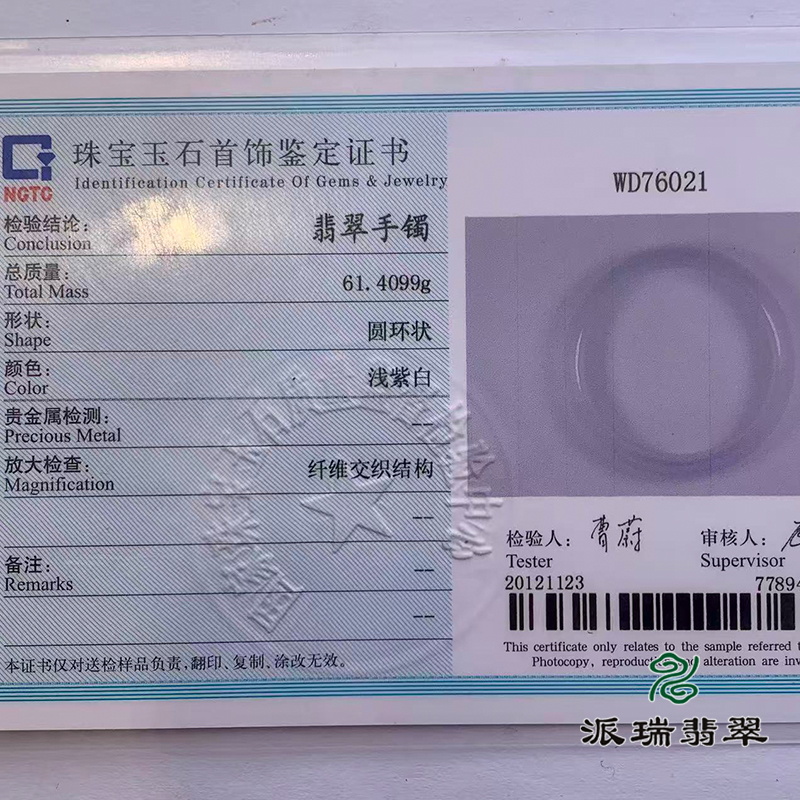 派瑞翡翠 翡翠手镯 糯种 浅紫色
