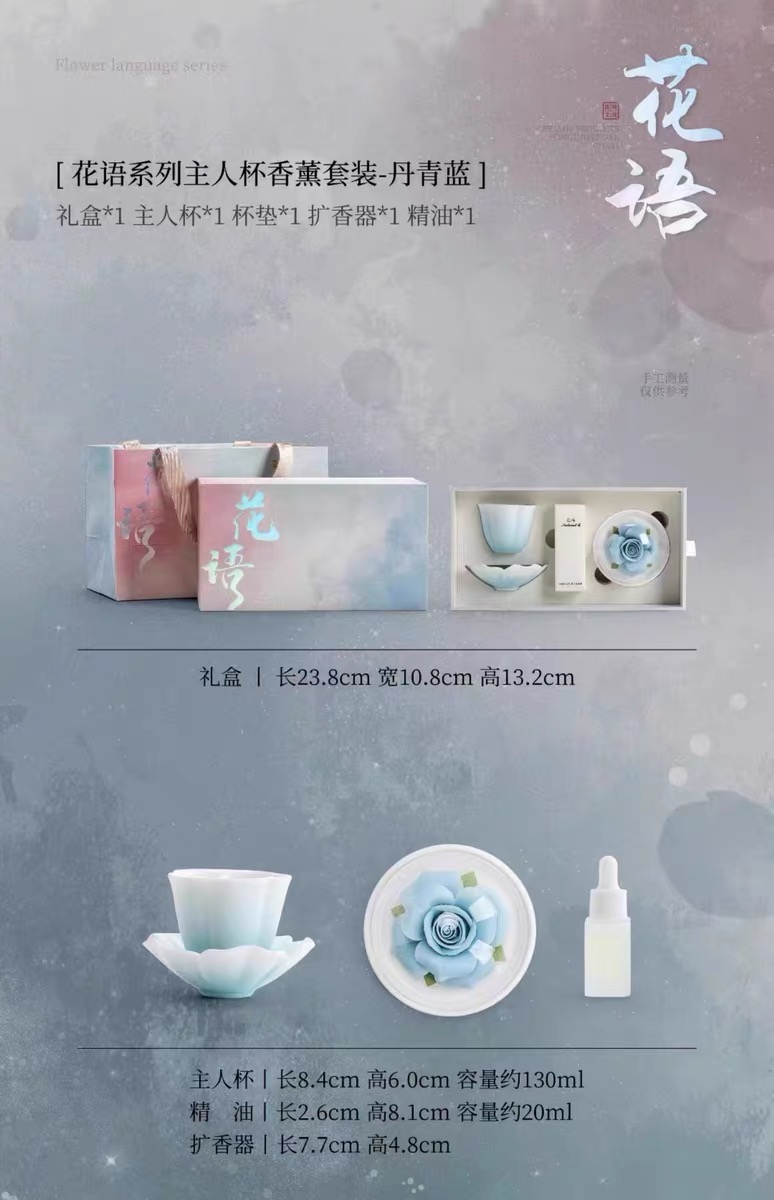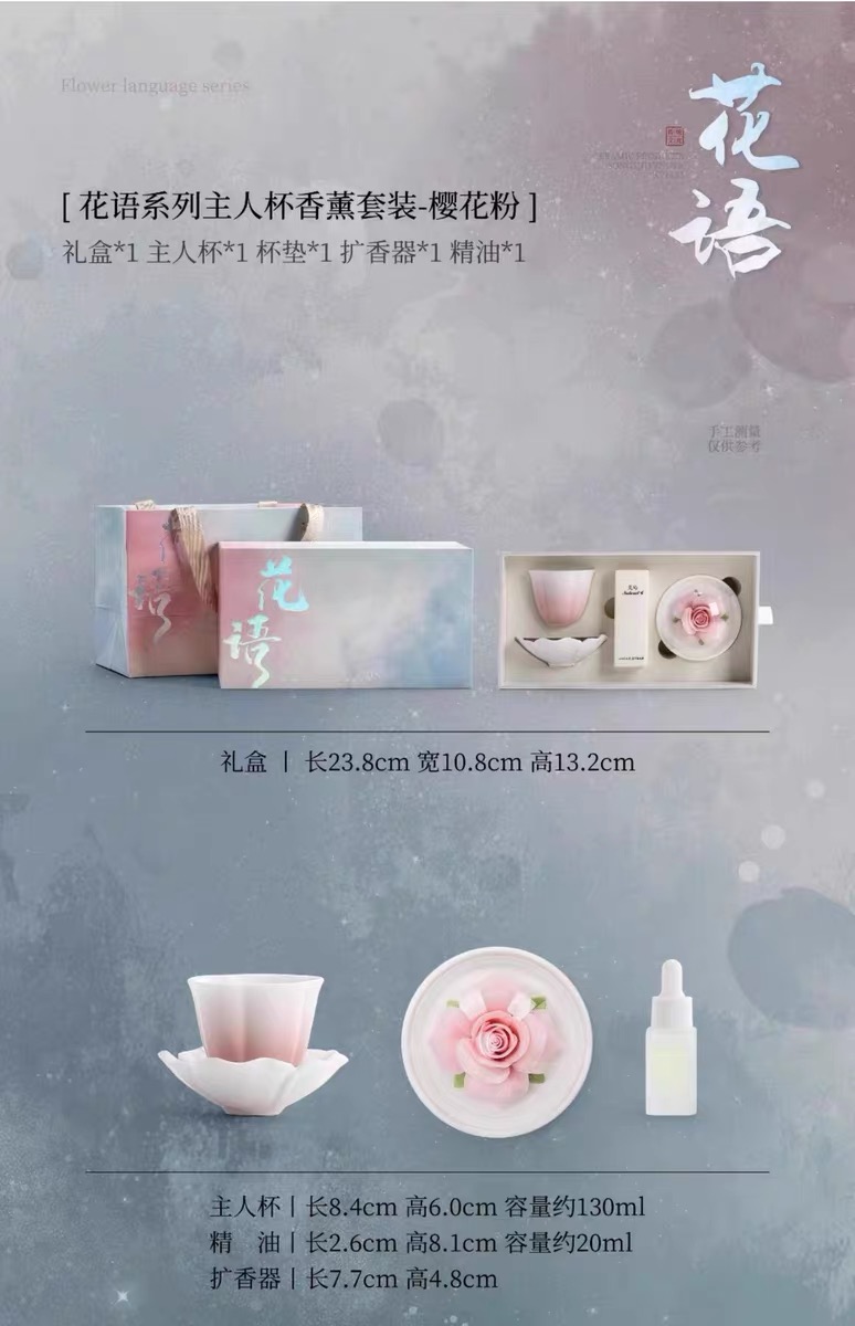 新君/花语香熏套组 非遗手捏花陶瓷香熏主人杯高级礼盒送女性送闺蜜