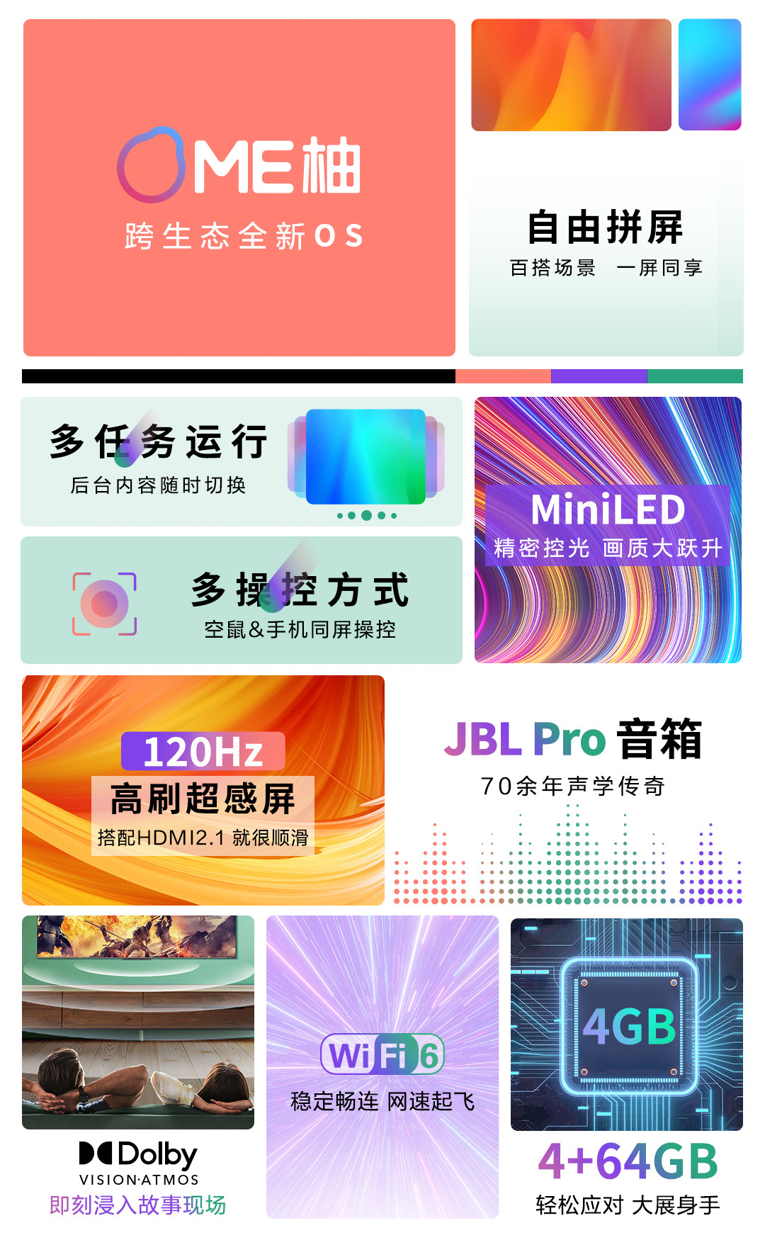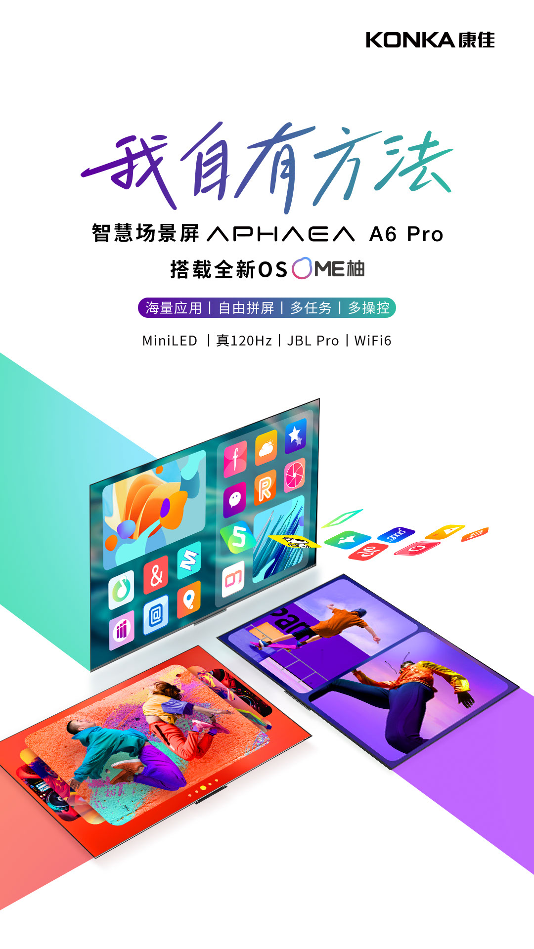 康佳电视 75A6 PRO 75英寸 Mini LED 真120Hz高刷 WIfi6 4+64GB 4K全面屏 智能网络 液晶平板游戏电视机