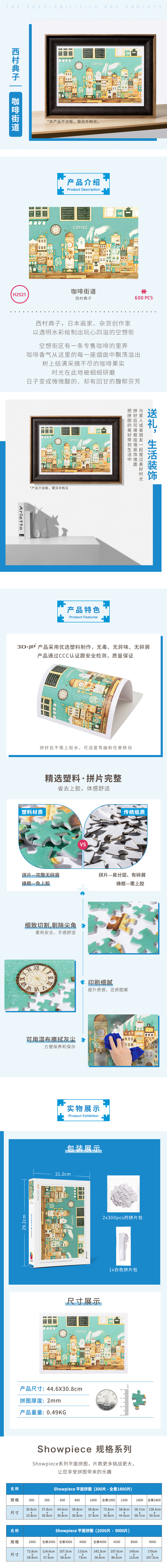 600片 平面拼图 塑料拼图 H2521 西村典子-咖啡街道