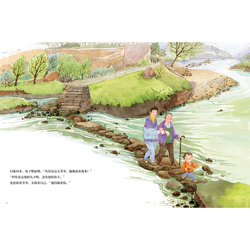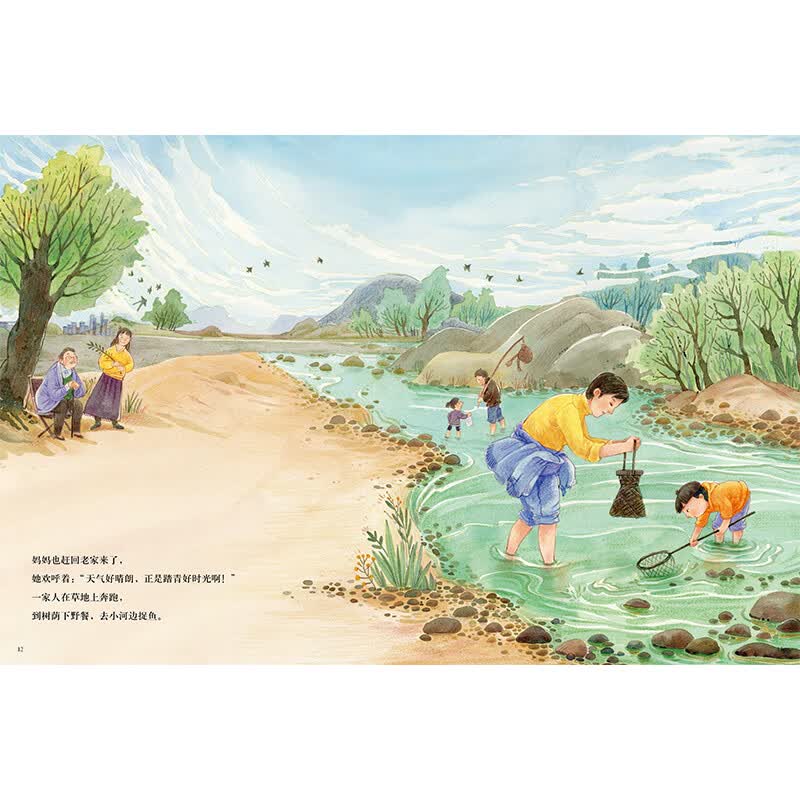 都说“清明时节雨纷纷,路上行人欲断魂”,清明并非是悲伤的,对于虎子尤其如此。可以在春光里回到爷爷和爸爸的故乡,一家人在春光里踏青、插柳、放风筝、打秋千……哪一样孩子不喜欢!唯独祭祖,虎子好奇,一家人在故地说起了“远和近”的话题。“太爷爷”离虎子有多远?又有多近?远到从来也没有见过,远到“在天上”;近到他是“爸爸的爷爷”“爷爷的爸爸”,近到一直陪伴着自己。故事用清明的杨柳和风筝为寓,让孩子们正确看待“逝去的祖先”,感悟血脉的传承。