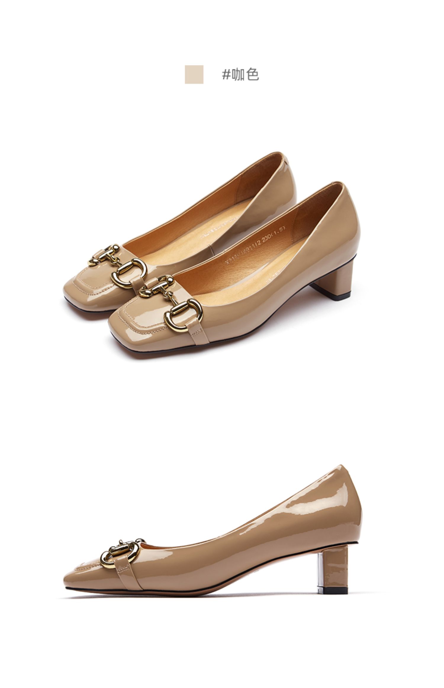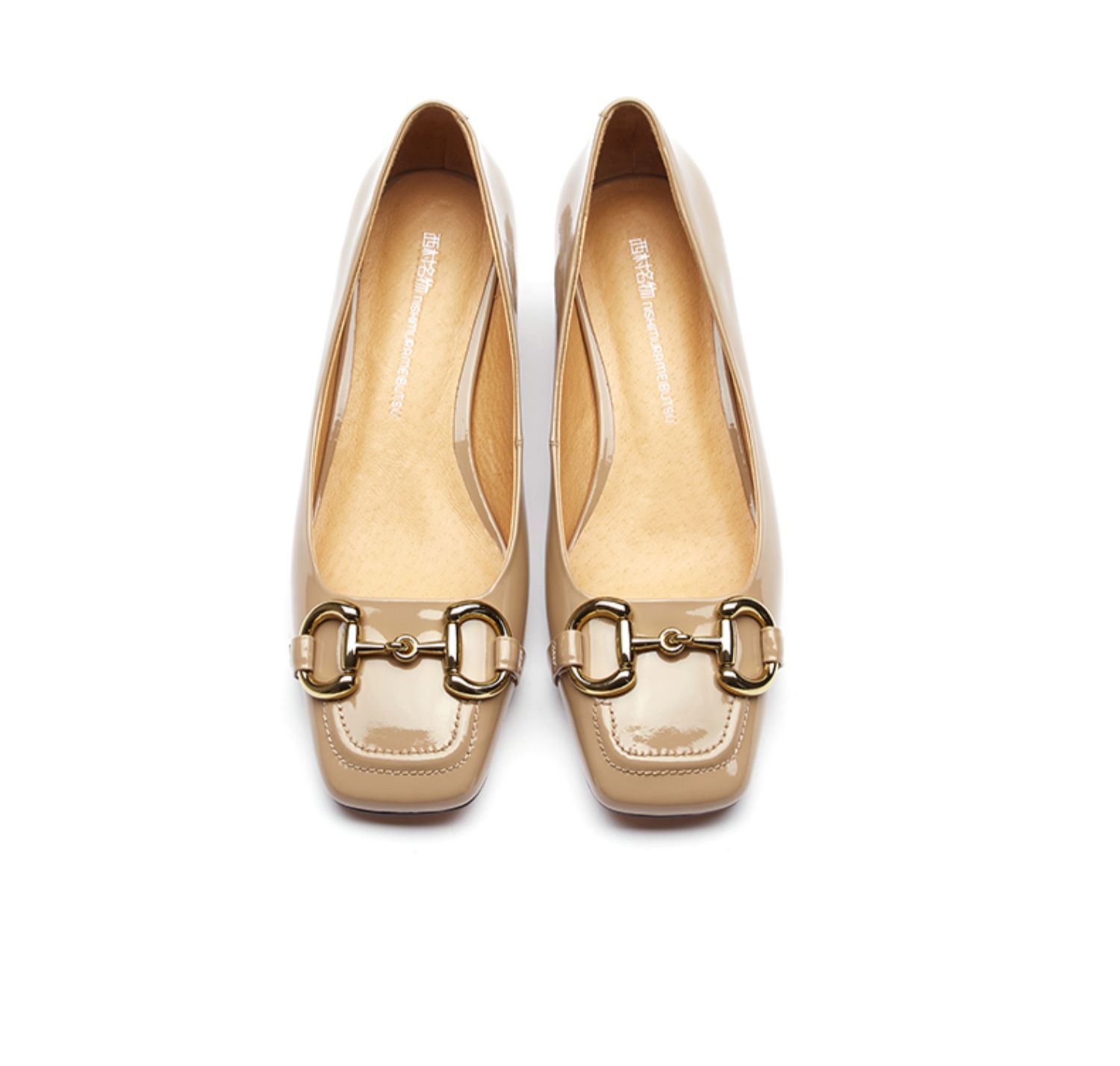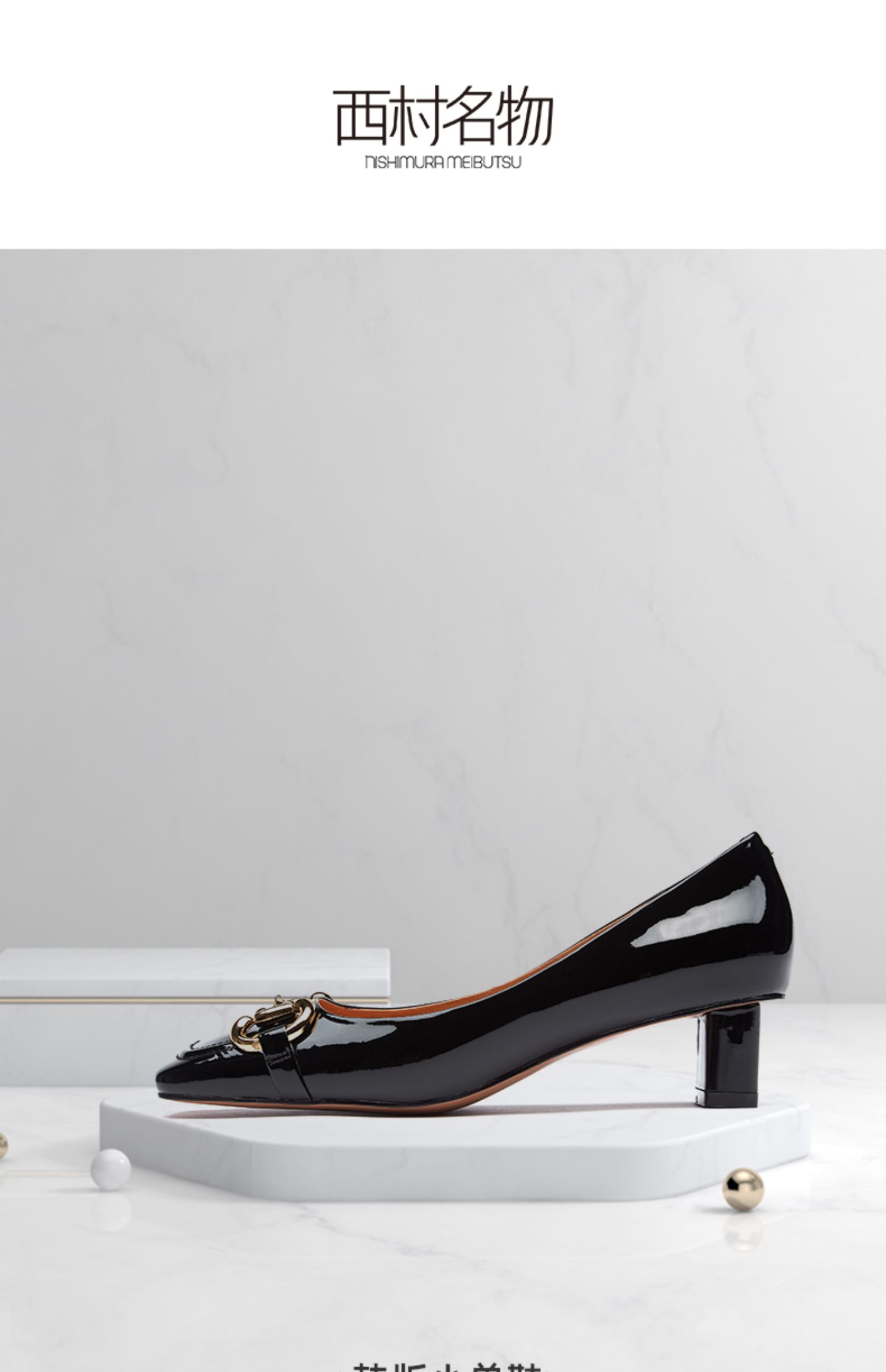 西村名物2021春季新款粗跟单鞋女中跟浅口百搭法式方头女鞋X21AE14911
