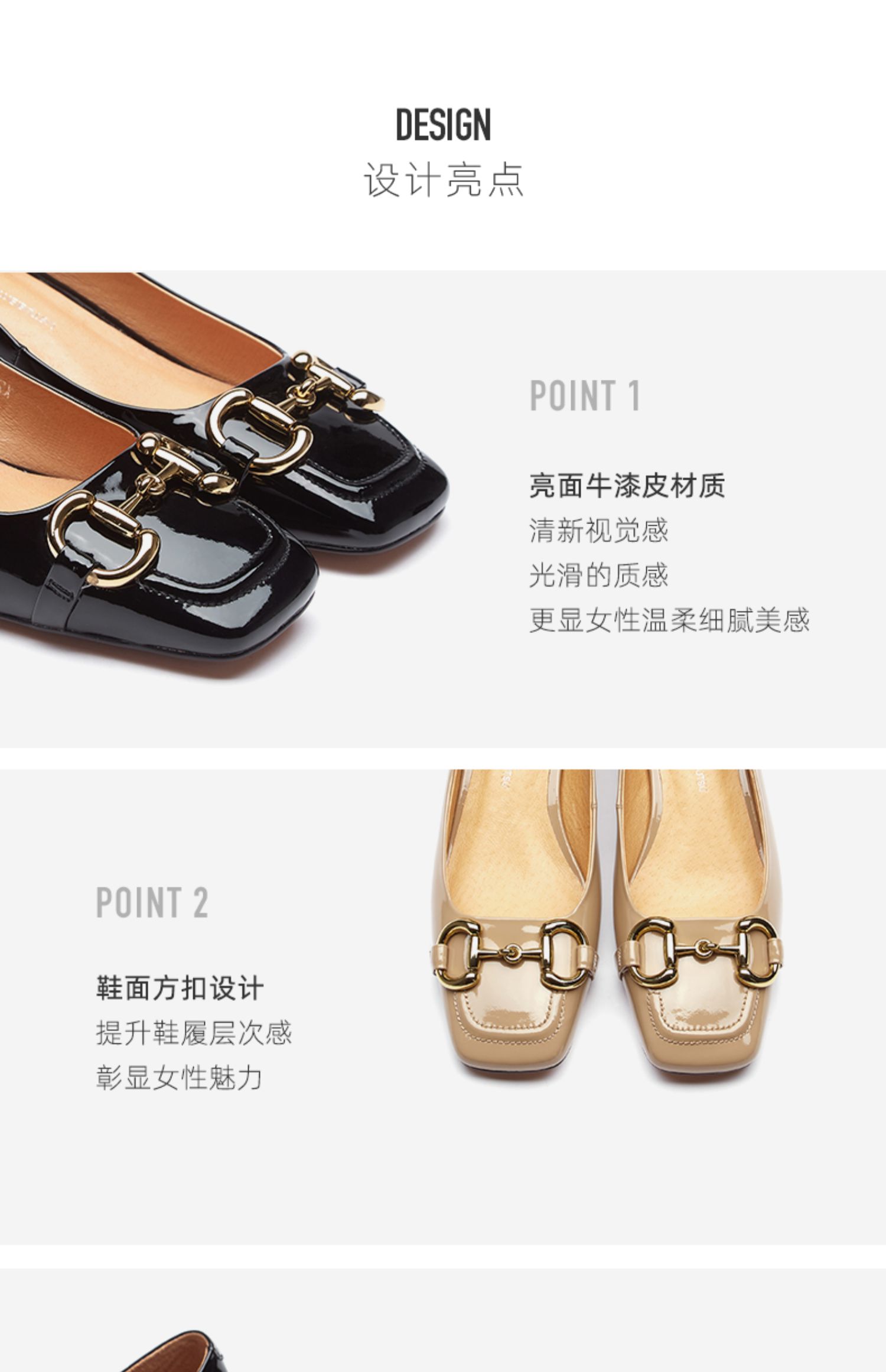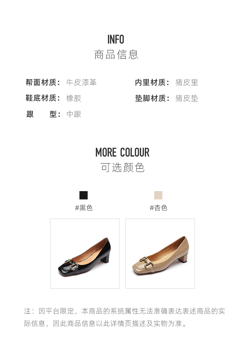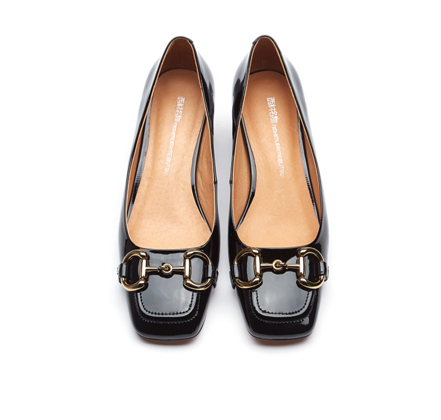 西村名物2021春季新款粗跟单鞋女中跟浅口百搭法式方头女鞋X21AE14911