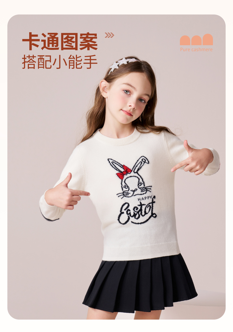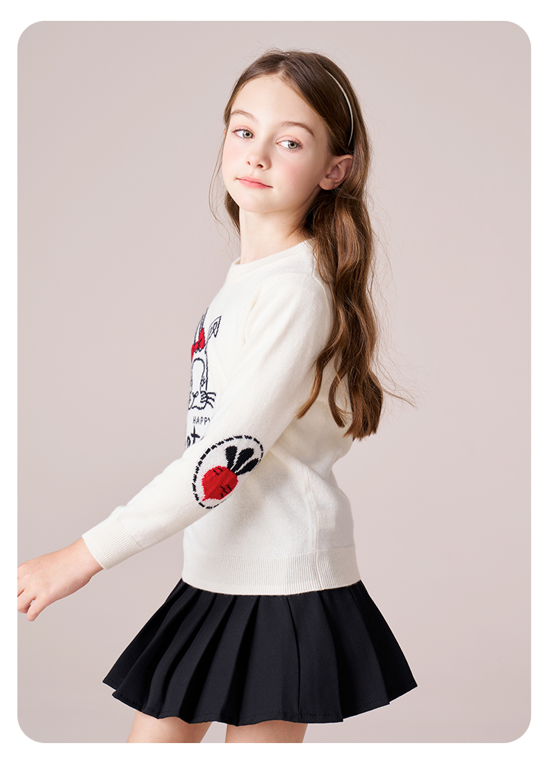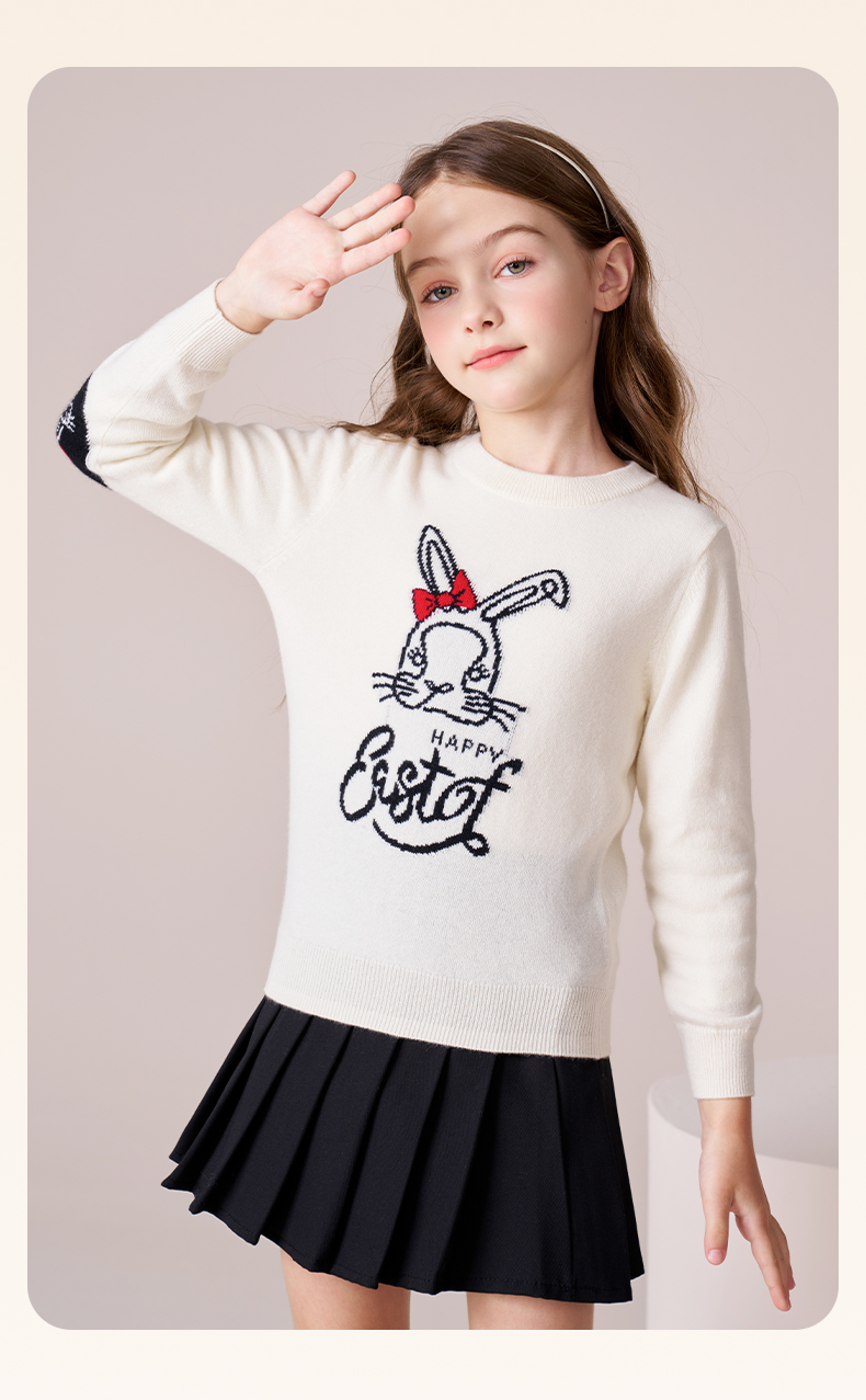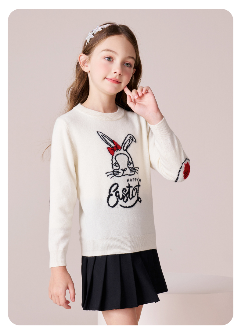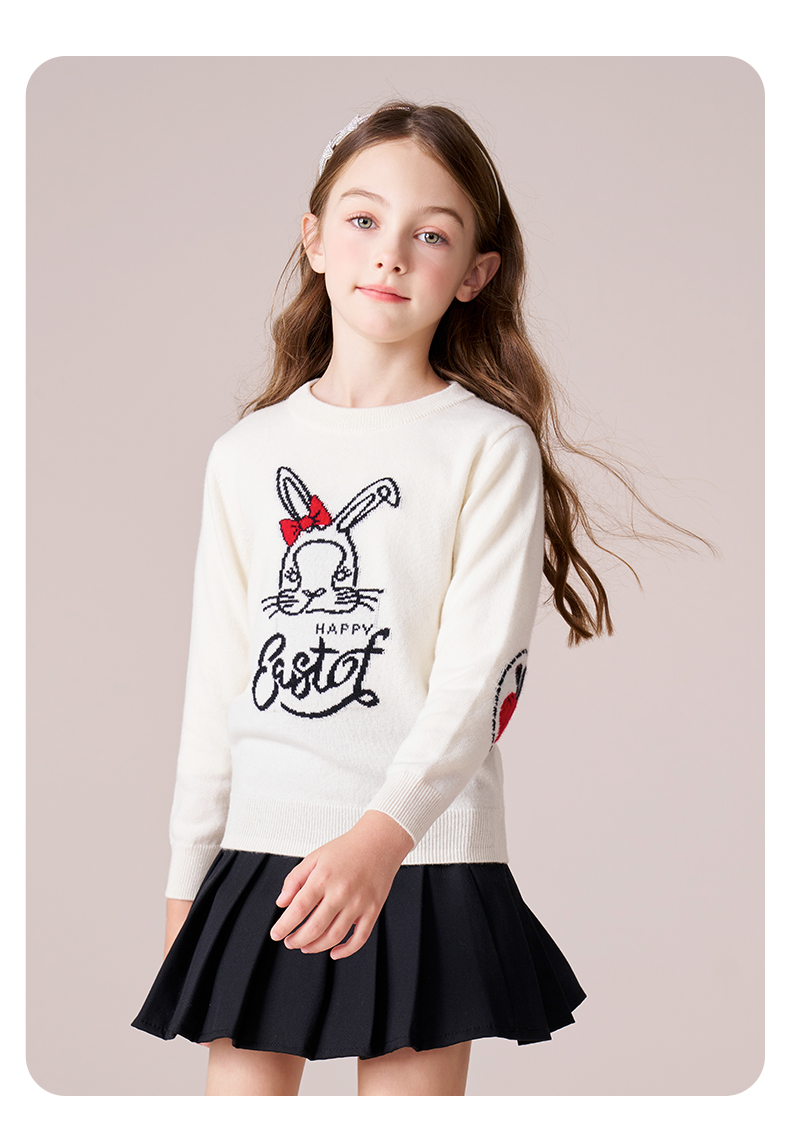 mettekids女童羊绒衫2023秋冬新款卡通打底针织衫儿童圆领毛衣