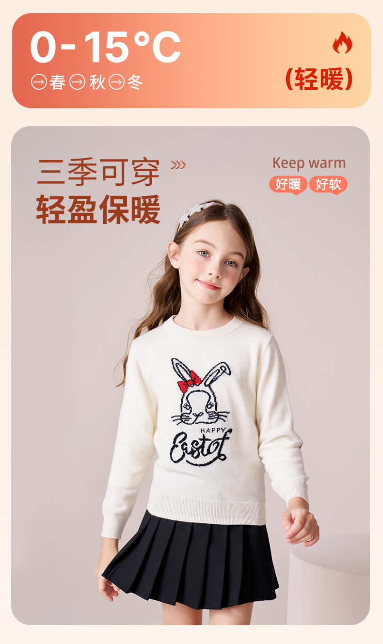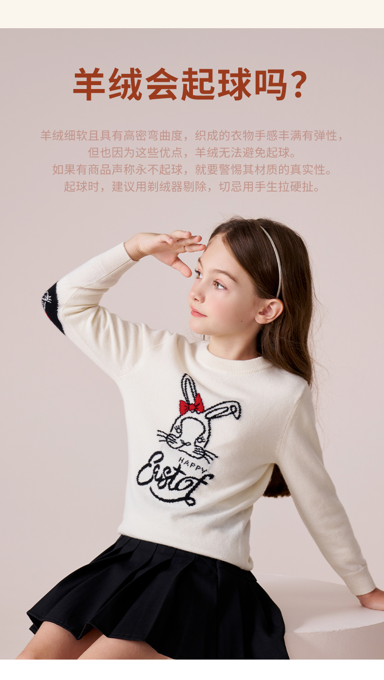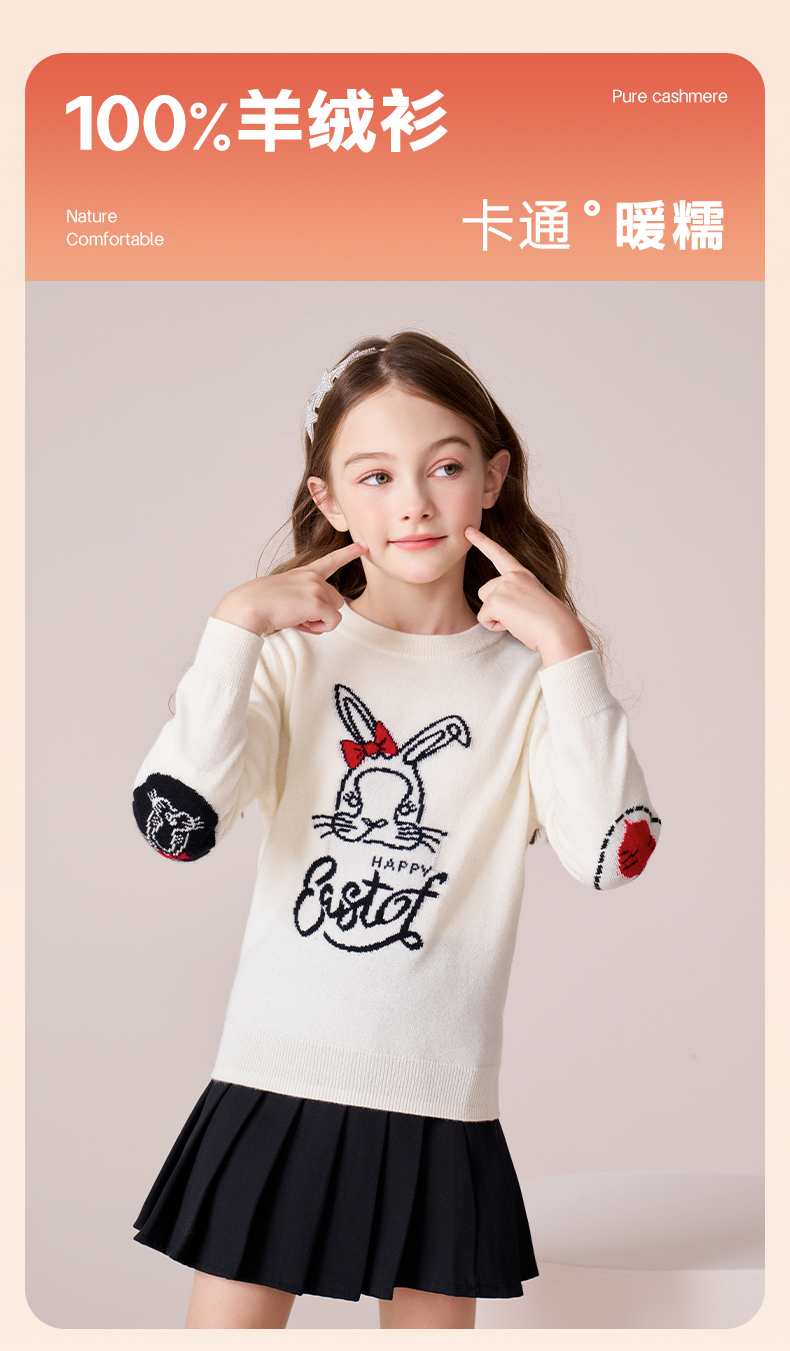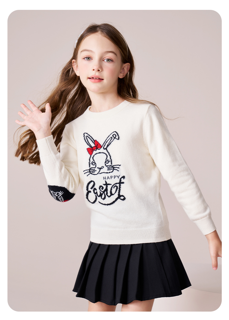 mettekids女童羊绒衫2023秋冬新款卡通打底针织衫儿童圆领毛衣