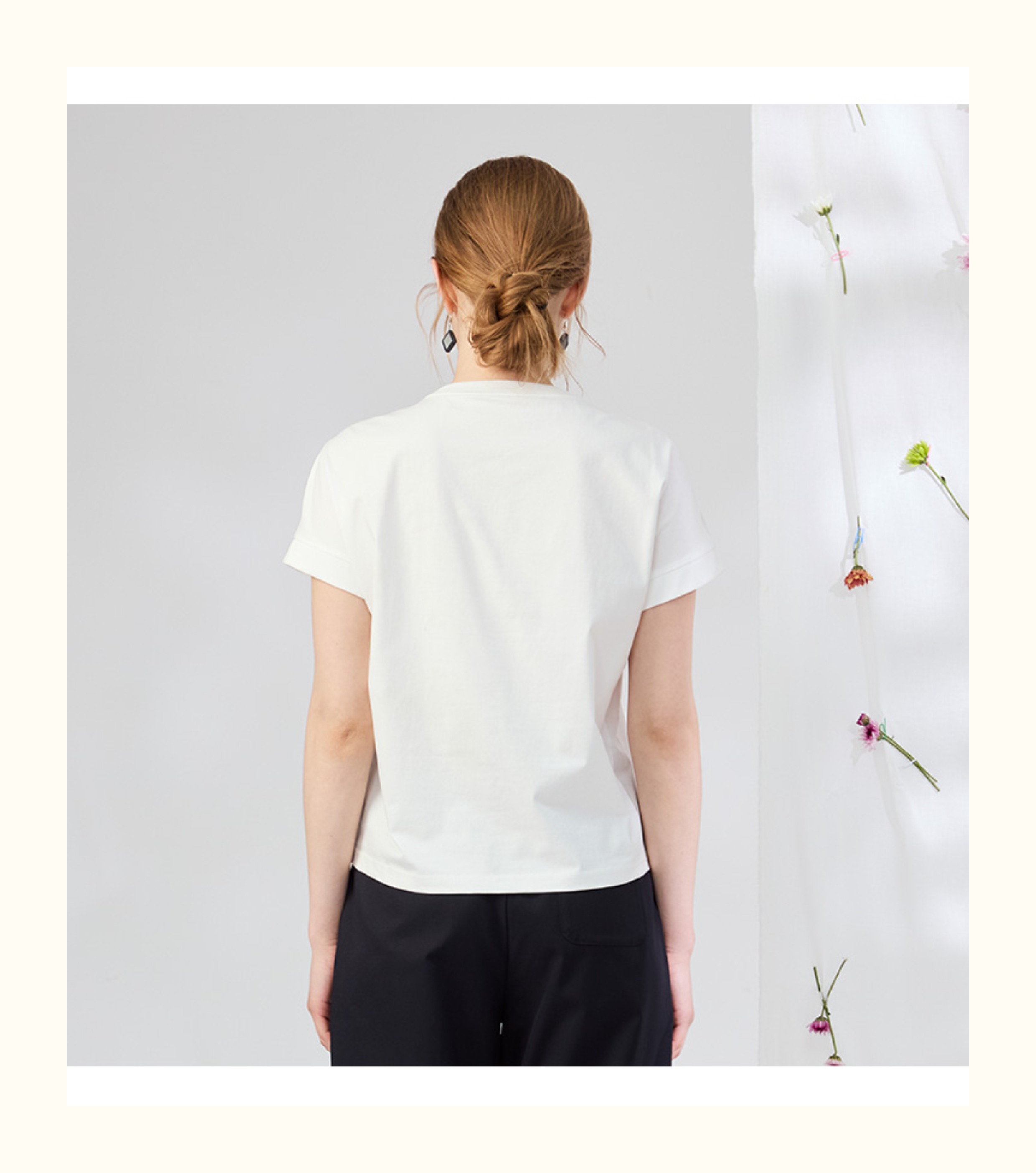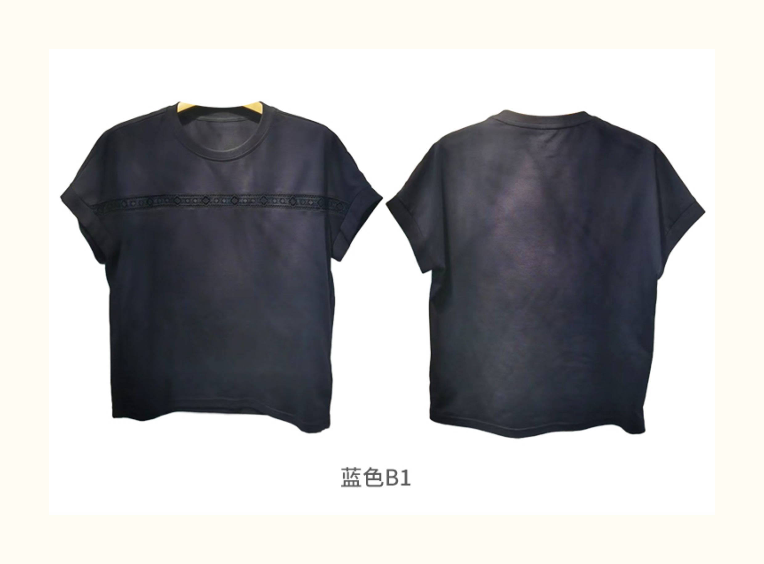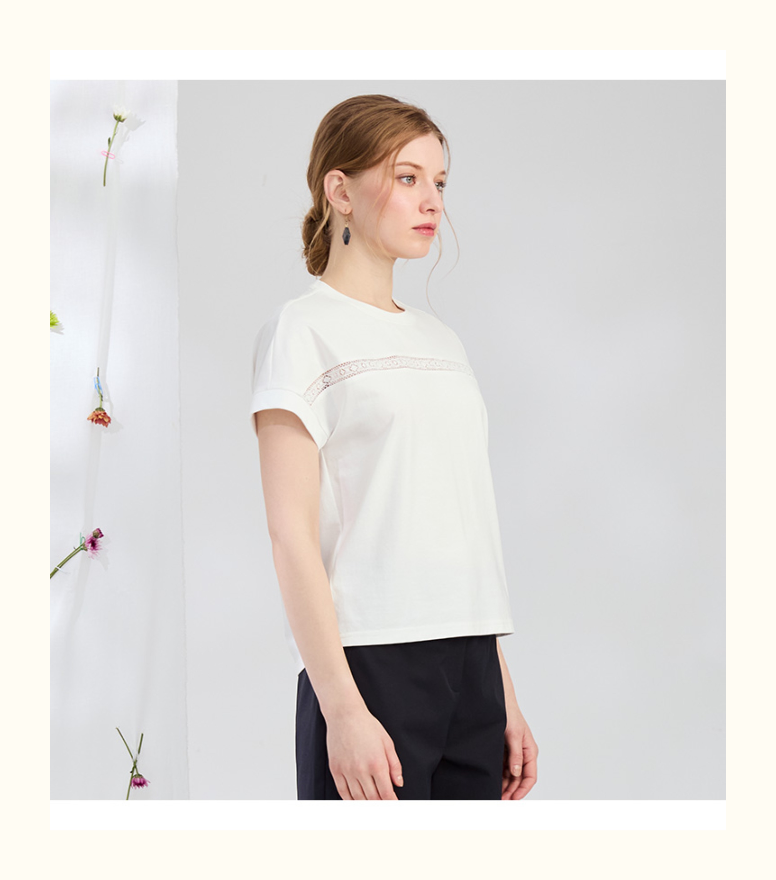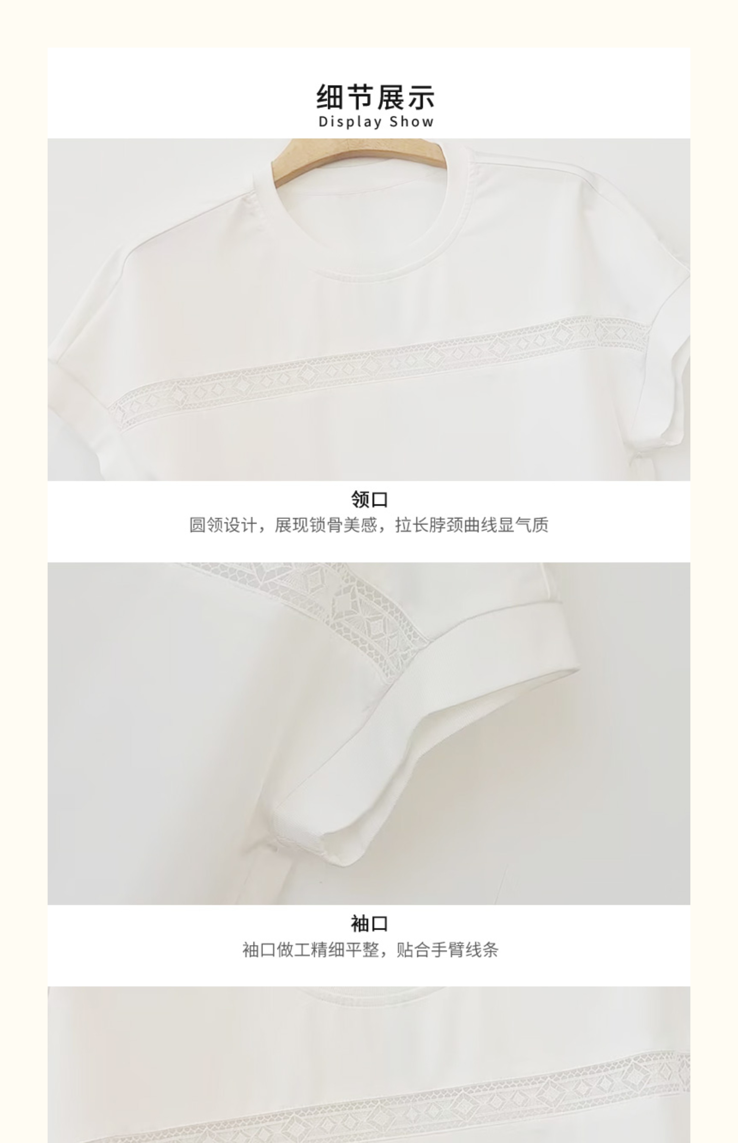 VIVIAN LIU V2537306 夏季新款圆领前胸拼花边宽松休闲短袖T恤