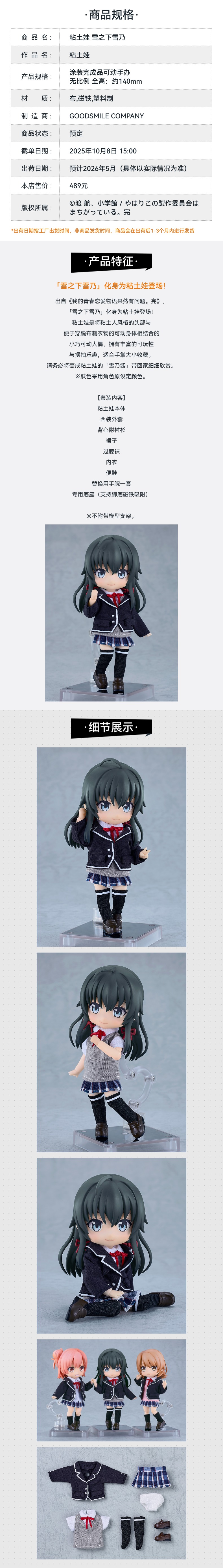【GSC预售定金】粘土娃 雪之下雪乃 我的青春恋爱物语果然有问题。完